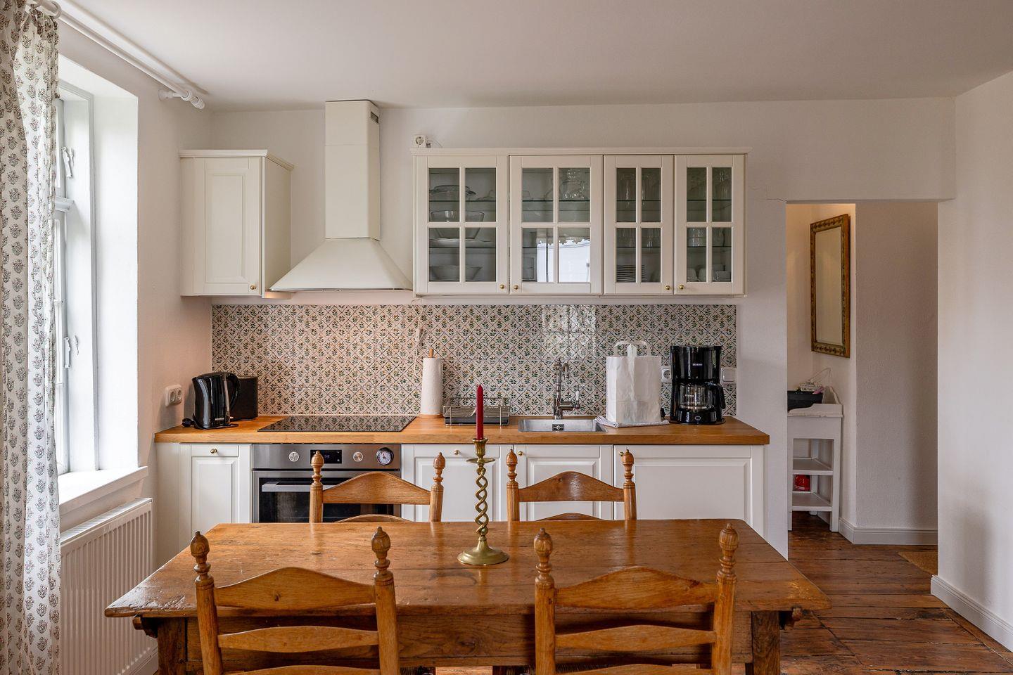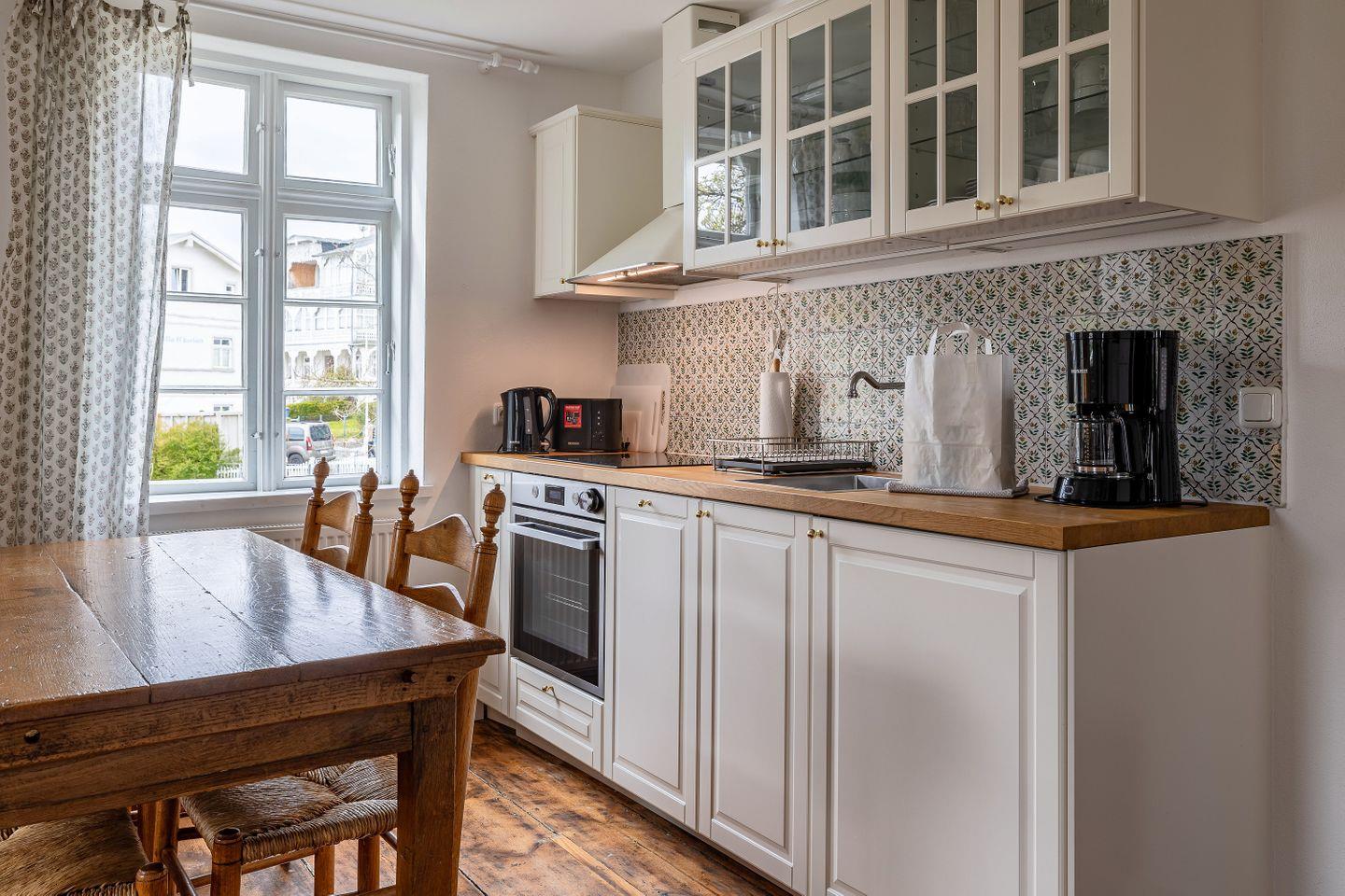 KÜCHE // offene Küche mit Ceranfeld, Spülmaschine, Kühlschrank mit Gefrierfach, Backofen, Toaster, Wasserkocher, Kaffeemaschine, reichlich Besteck, Geschirr und Küchenutensilien ++