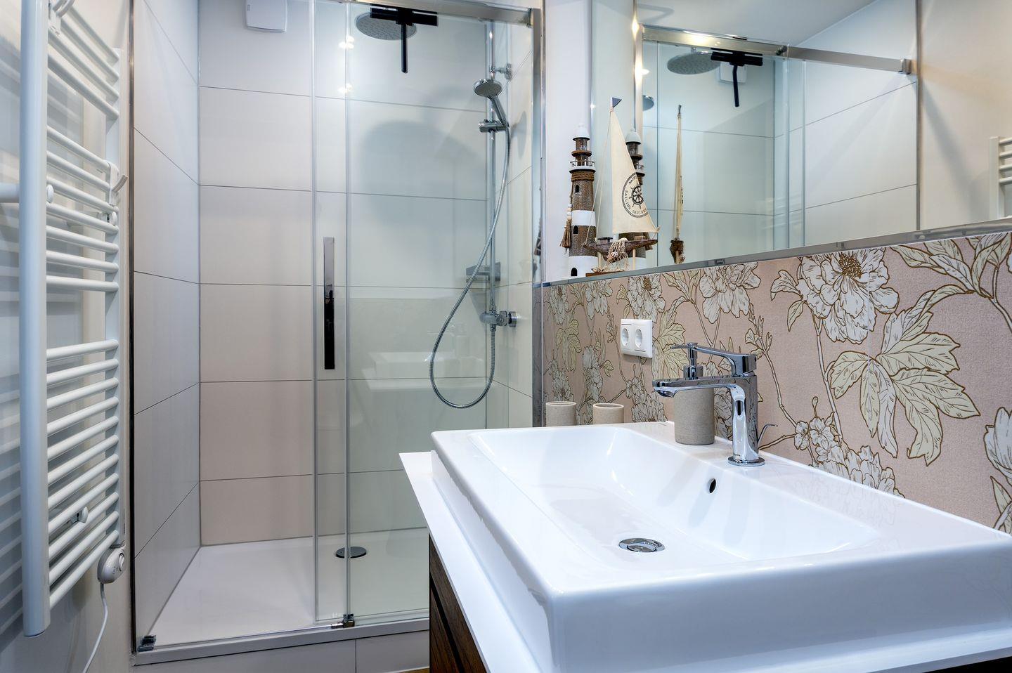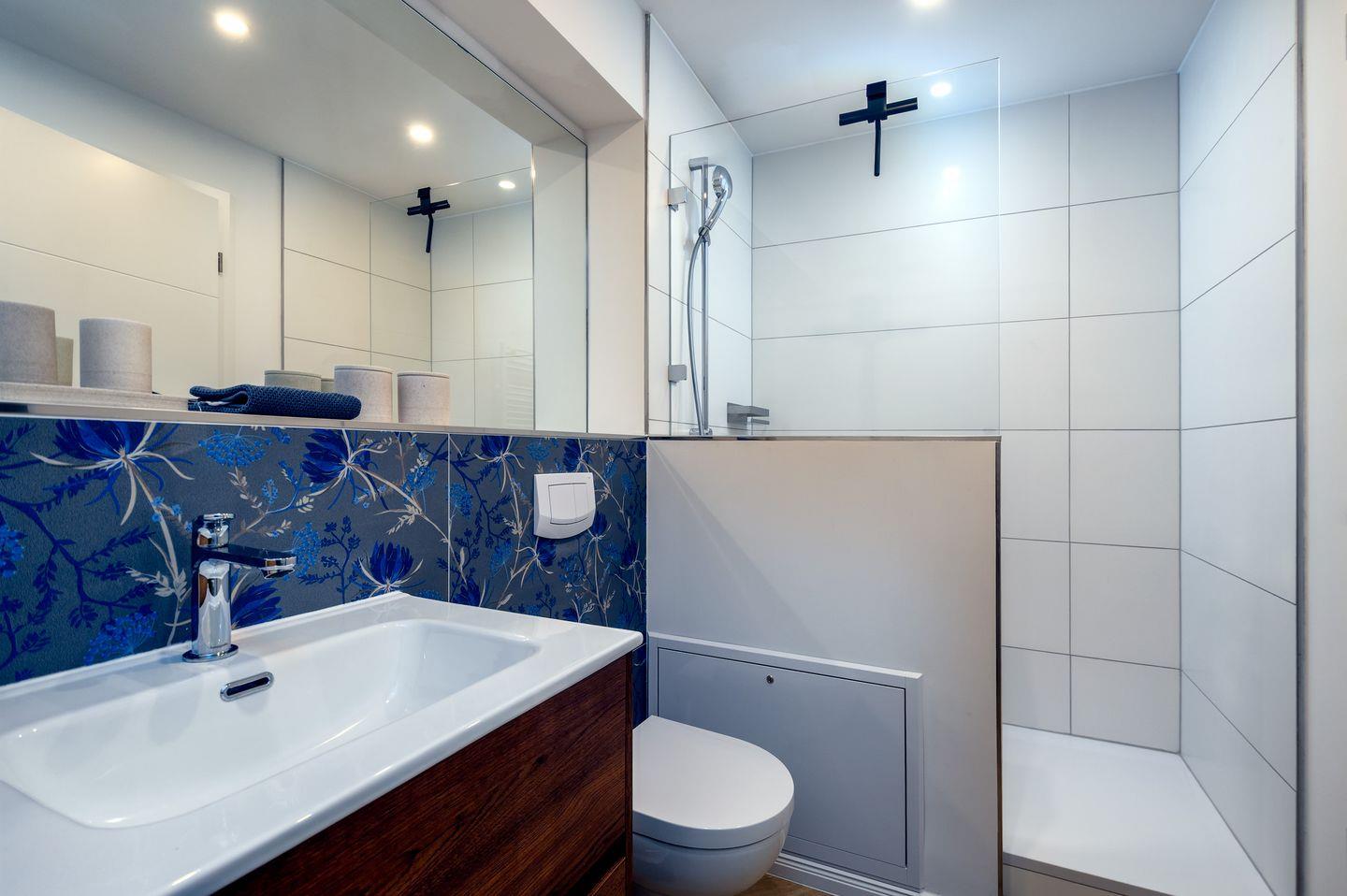 - 2 moderne Badezimmer mit Dusche, Föhn und Handtuchheizkörper