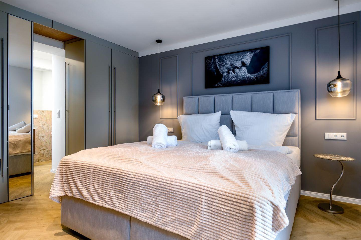 - 2 separate Schlafzimmer, jeweils mit komfortablem Boxspringbett (180×200?cm und 160×200?cm), integrierter Beleuchtung und Flachbild-TV