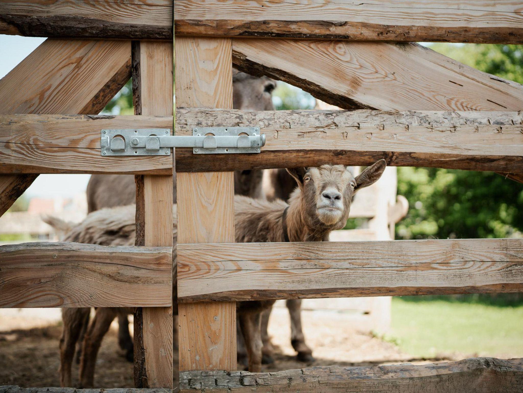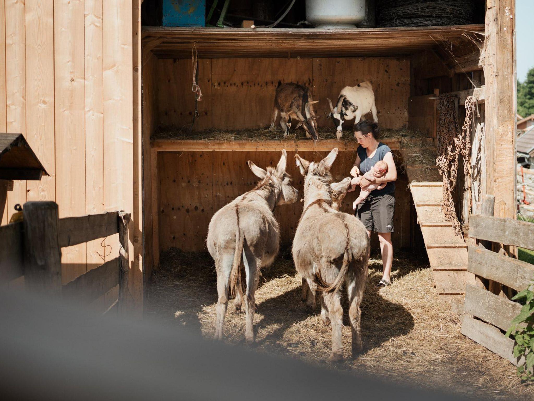 Die Esel und Ziegen stehen jederzeit für einen Spaziergang mit Euch bereit.