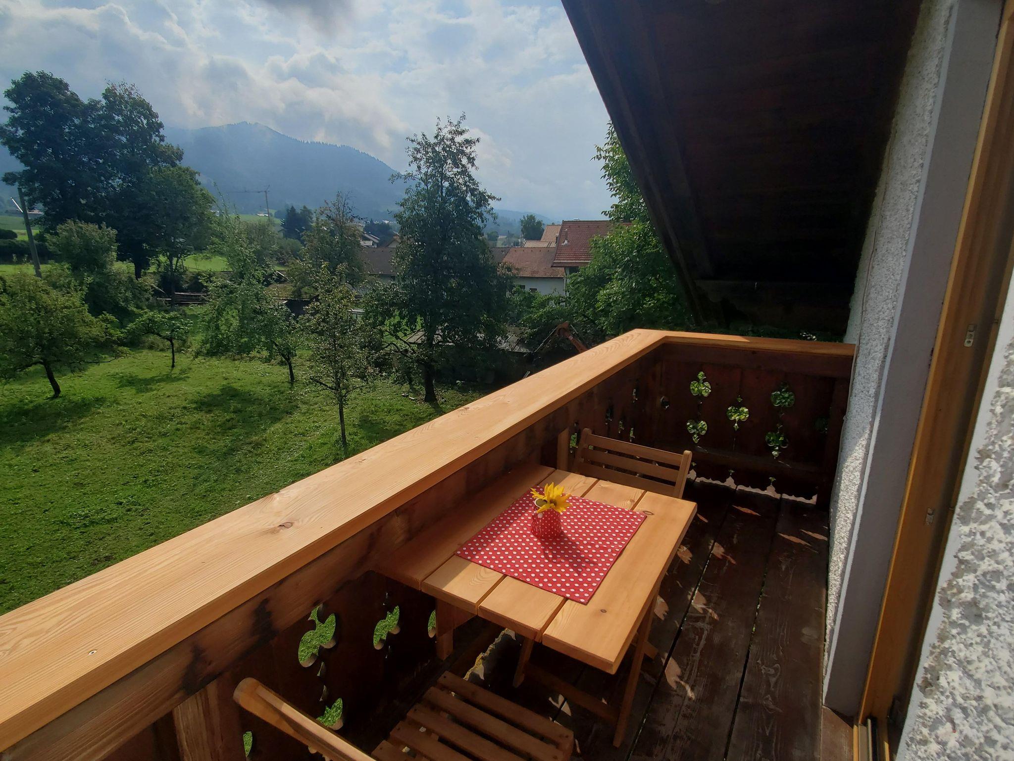 Die Aussicht lässt in die Ammergauer Alpen und über Altenau schweifen.