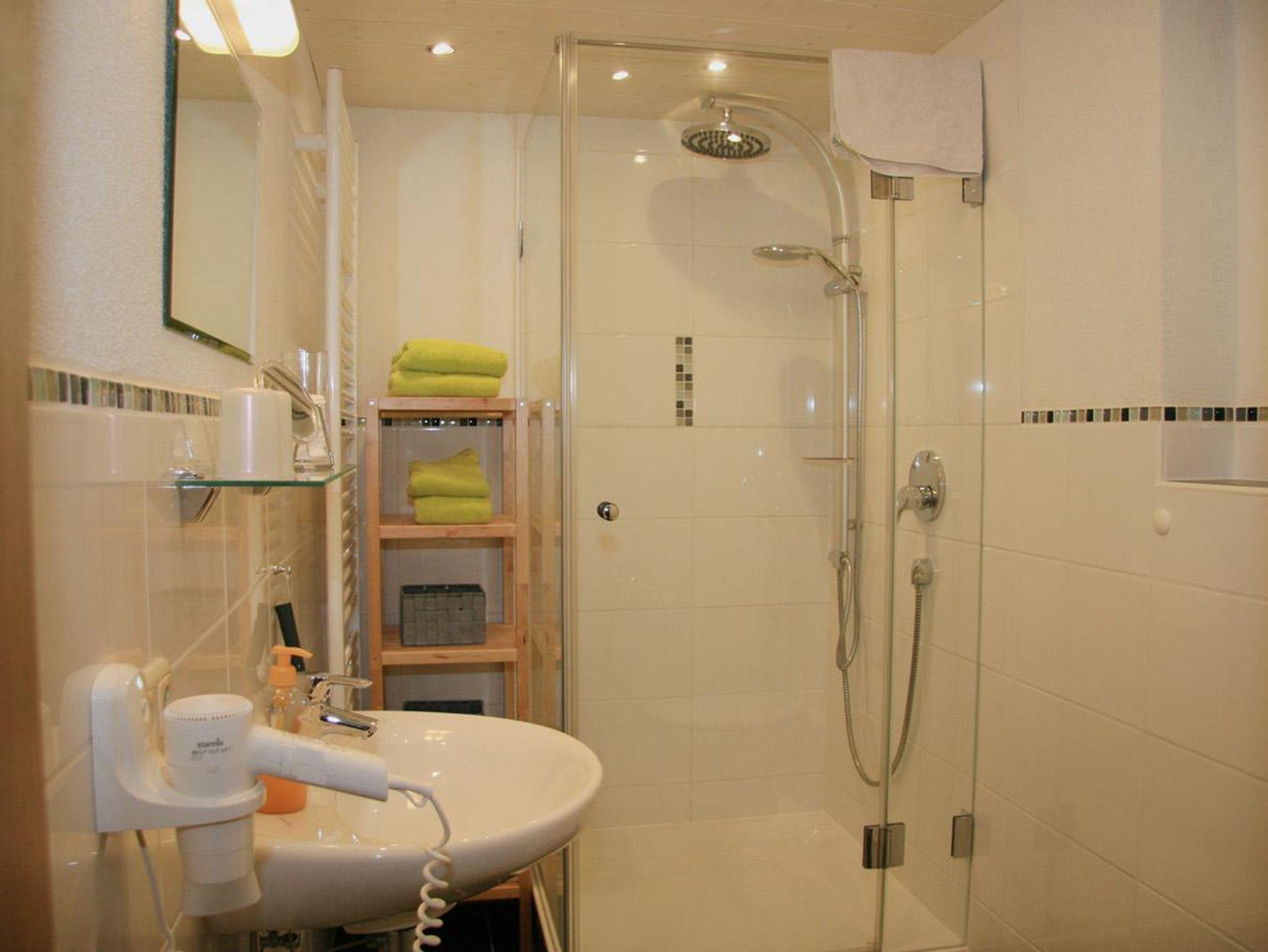 Sie betreten die abgeschlossene Nichtraucherwohnung durch einen kleinen Vorraum mit Schuhregal und Garderobe. Links befindet sich ein 17 qm großes Doppelzimmer mit Dusche und WC. Sie gehen weiter in die helle, komplett mit E-Herd, Ku¨hl-Gefrierkombination und Spüle eingerichtete Miele-Ku¨che. Von der Küche gehen Sie links in das 16 qm große Wohn-Esszimmer mit Boxspringcouch mit zusätzlichen Schlafplatz für 2 Personen, Essecke für 7 Personen, Sat-TV und Digitalradio. Auch von hier aus erreichen Sie das 17qm große Doppelzimmer. Von allen Zimmern aus können Sie den Su¨d oder Ostbalkon betreten.