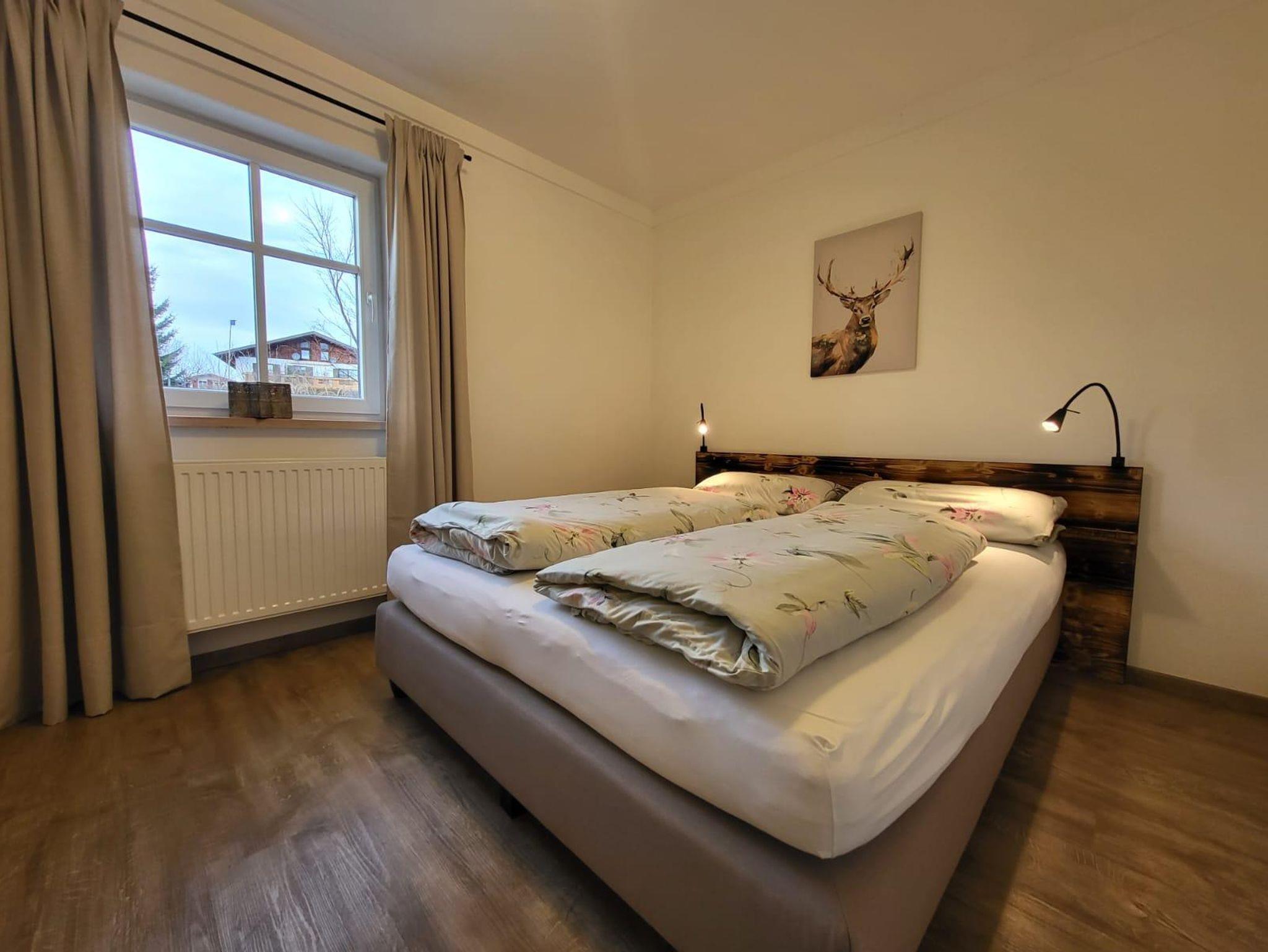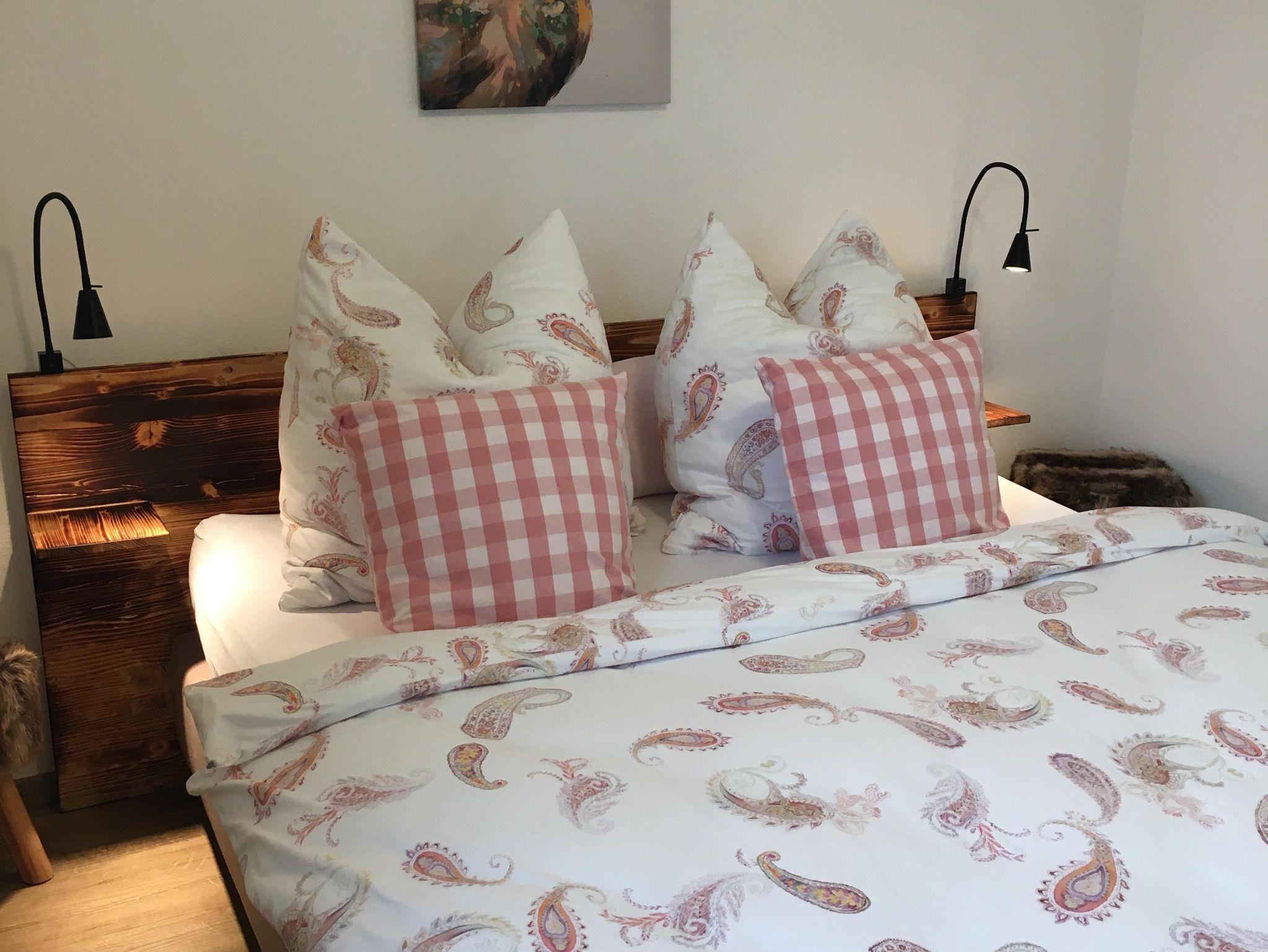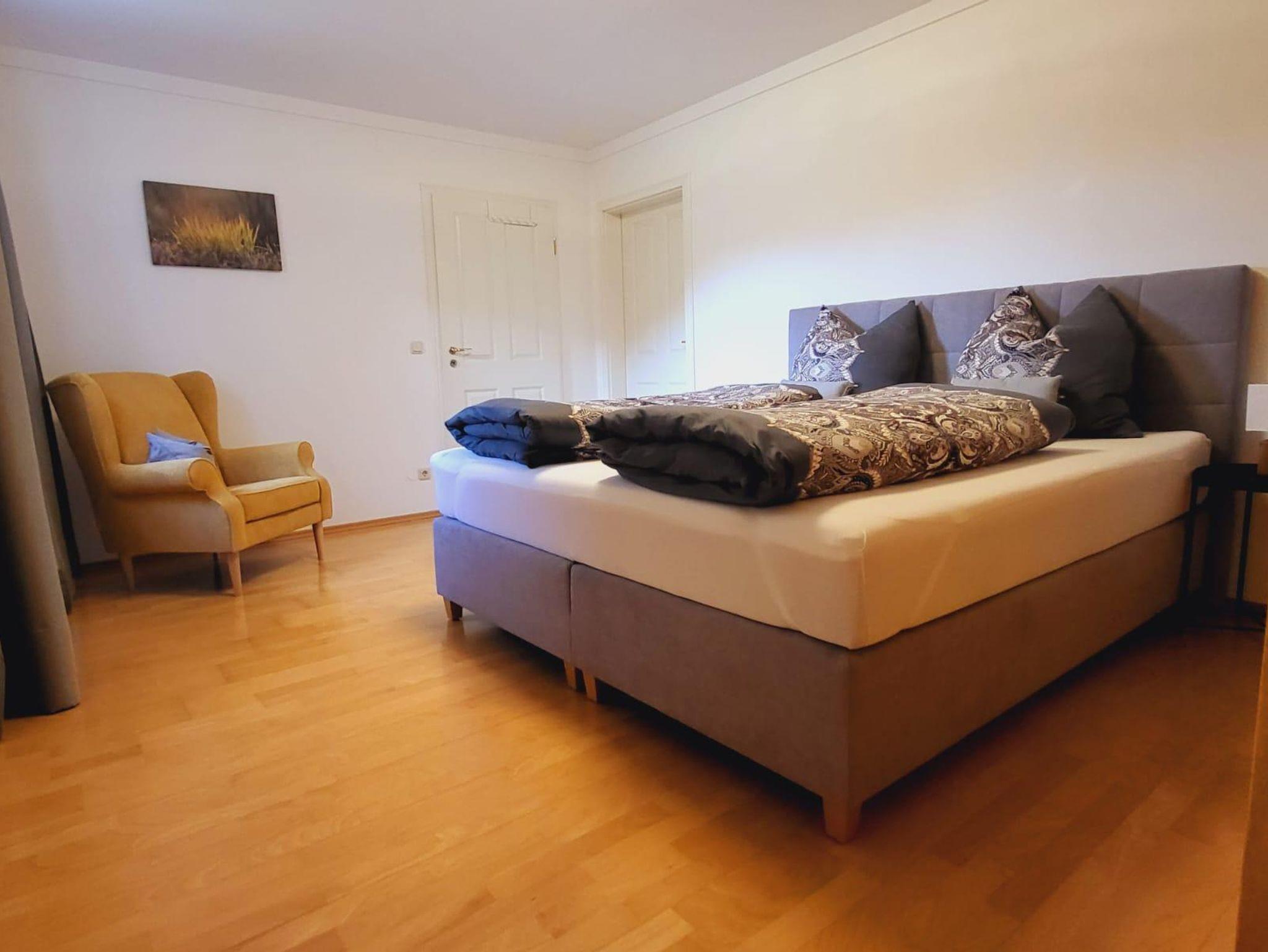 Ihre Ferienwohnung Naturzeit bietet Ihnen zwei getrennte Schlafzimmer für erholsamen Schlaf. Ein Schlafzimmer verfügt über ein Kingsizebett 180x200m und das 2. Schlafzimmer über ein Queensizebett 160x200m. Der 5. Gast kann es sich im großen Wohnzimmer im Obergeschoß gemütlich machen. Hier befindet sich ein vollwertiges Schrankbett 80x200m.