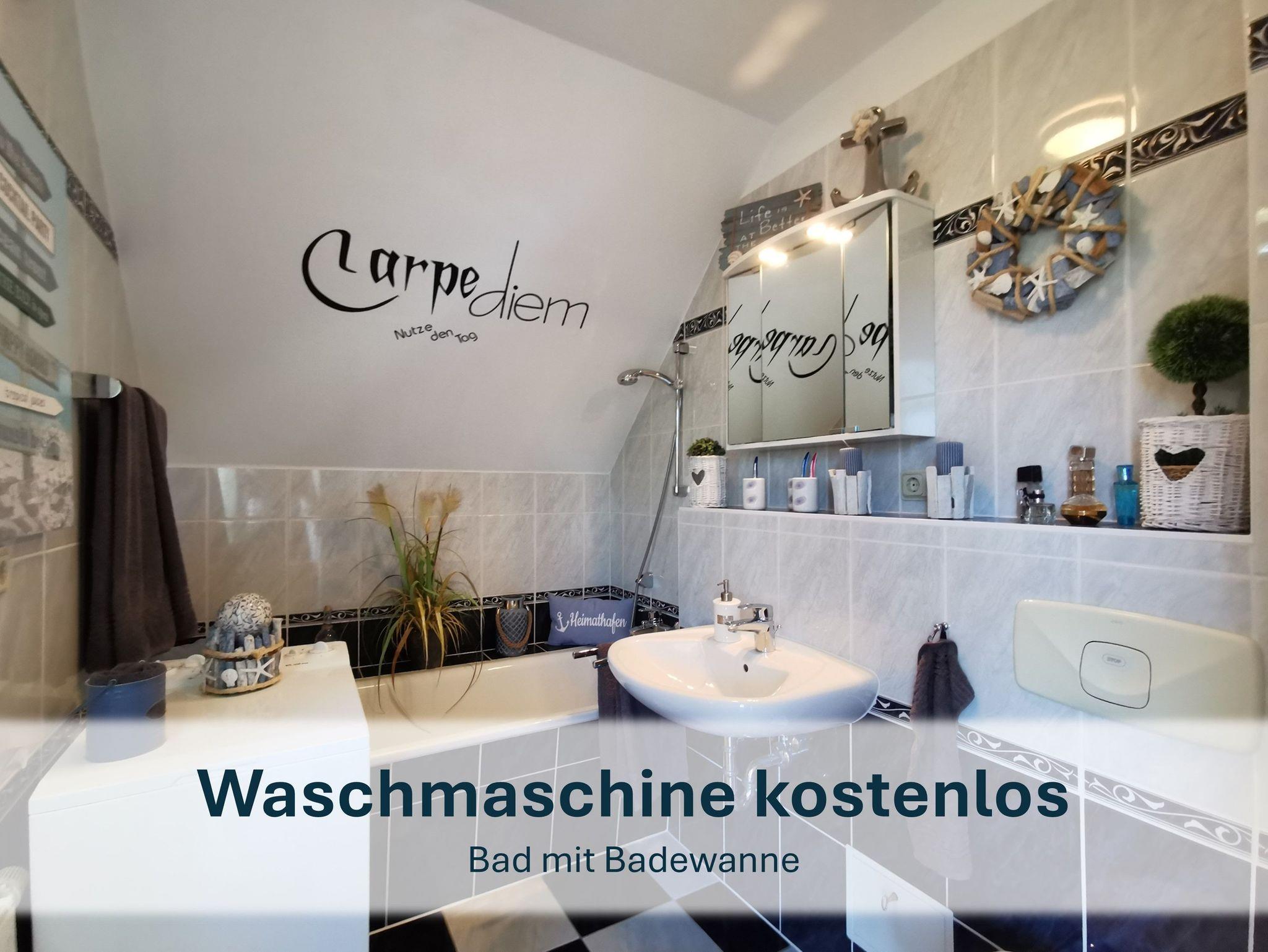 Die hochwertige Maisonette-Wohnung bietet ausreichend Platz für 4 Personen. Zur Wohnung in der 1. und 2. Etage führt eine Außentreppe. In der 1 Etage erwartet Sie ein kleiner Flur mit einem großen Wandschrank mit vielen Verstaumöglichkeiten. Von hier geht zum einen das Badezimmer mit Badewanne, Waschbecken, WC und Waschmaschine ab. Daneben befindet sich das erste Schlafzimmer mit einem breiten Doppelstockbett (unten 1,40m oben 0,90m breit) und einer Kommode mit Flat-TV.