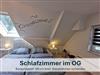 Über eine Holztreppe gelangen Sie in das zweite Obergeschoss, wo sich ein behaglich eingerichtetes Schlafzimmer mit breitem Boxspringbett und ausreichend Stauraum befindet.
