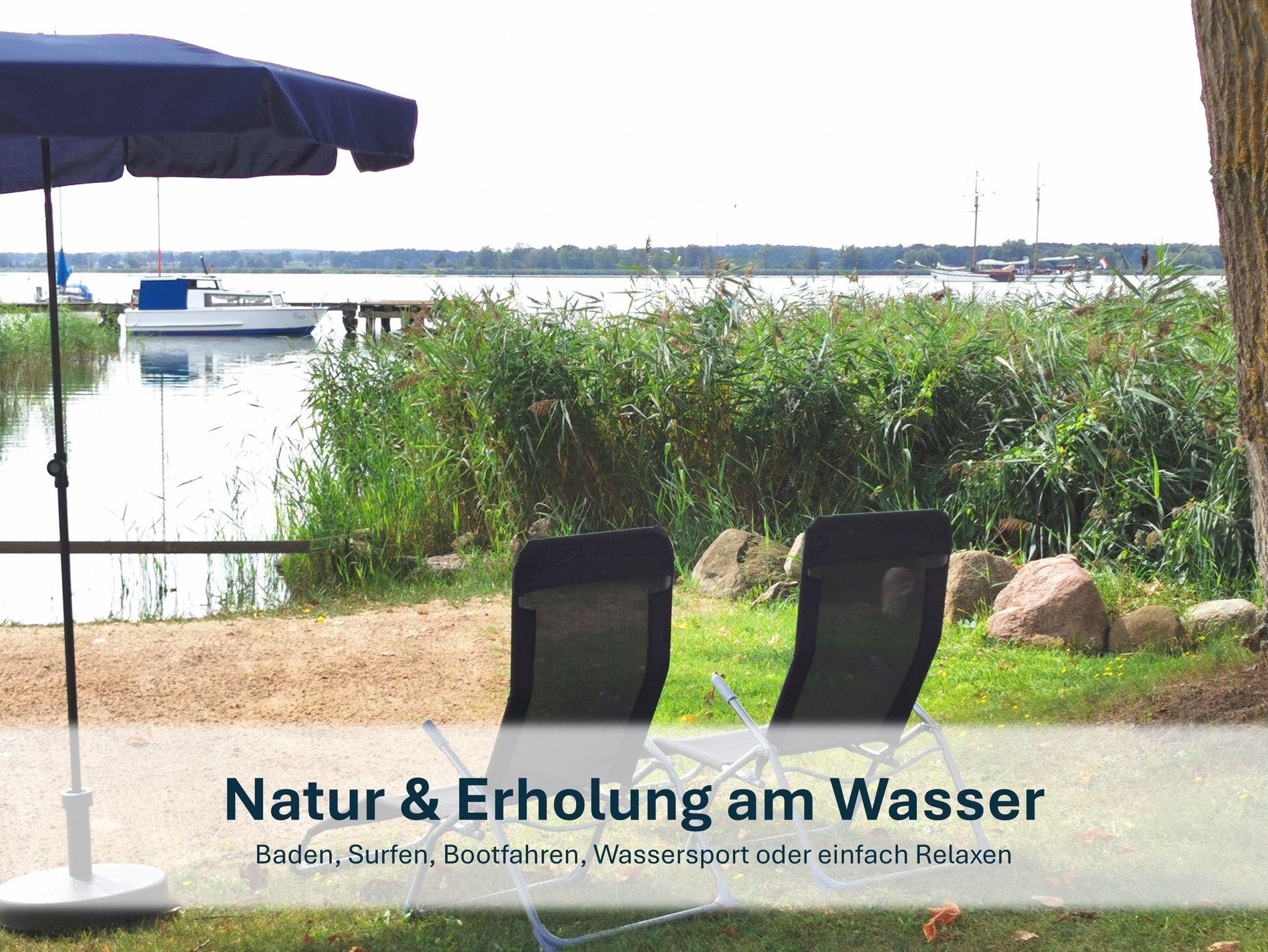 Entfliehen sie dem Alltagsstress und genießen Sie die Ruhe in unserer Anlage! Auf einem fast 5.000m² großen, parkähnlichen Grundstück mit altem Baumbestand und direktem Zugang zum Peenestrom erwartet Sie eine idyllische Umgebung, um dem Alltagsstress zu Entfliehen. Eine große Liegewiese lädt zum Entspannen ein.