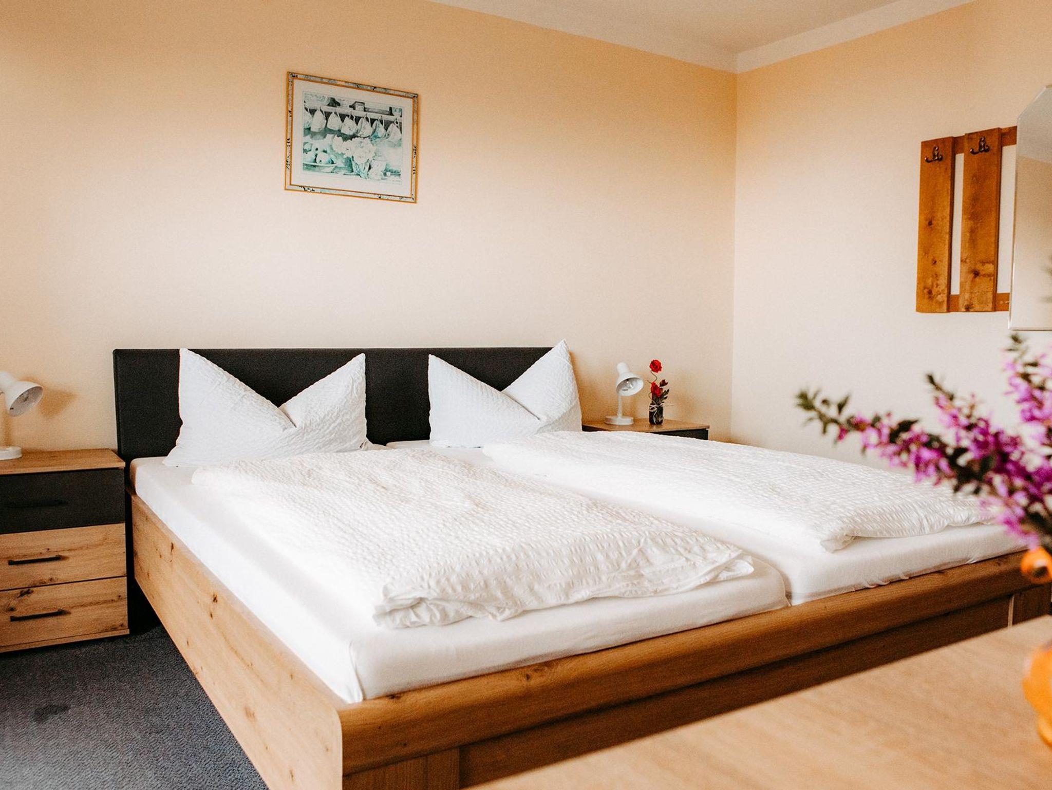 Das Doppelzimmer mit 20qm verfügt über ein Doppelbett und einer Schlafcouch. Auf dem Balkon, zu dem Sie direkten Zugang haben, können Sie die schöne Aussicht genießen. Das Badezimmer ist mit Dusche und WC ausgestattet und rundet das Gesamtbild ab. WLAN ist kostenfrei vorhanden.
