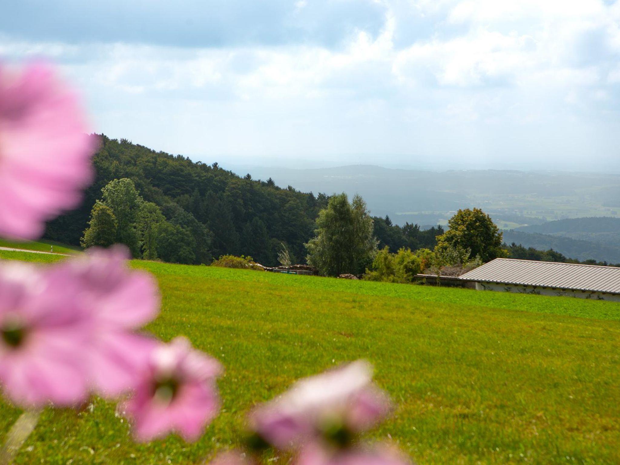 Südhanglage (800 m) mit einzigartigem Panoramablick. Unsere Zimmer sind