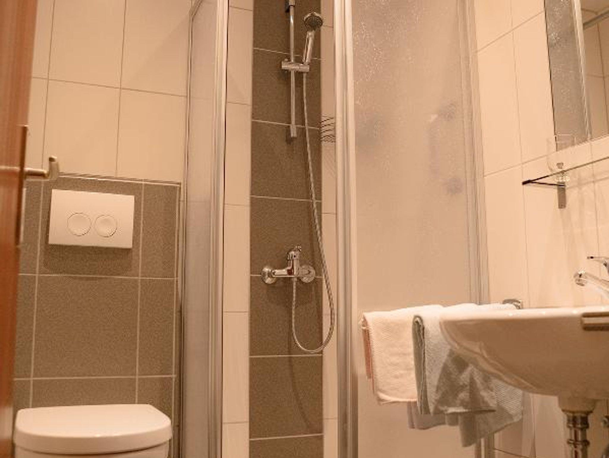 Das Dreibettzimmer mit 25m² verfügt über ein Einzelbett, Doppelbett und einer Schlafcouch. Am Balkon, zu dem Sie diekten Zugang haben, können Sie die schöne Aussicht genießen. Das Badezimmer mit Dusche und WC rundet das Gesamtbild ab.