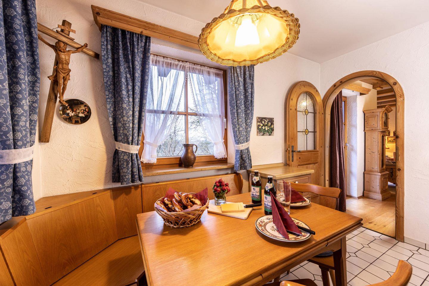 Mit einer Größe von 64 m² bietet das Apartment ausreichend Platz für bis zu zwei Personen. Es ist die perfekte Wahl für zwei Personen, die einen ruhigen Rückzugsort suchen. Der stilvoll eingerichtete Wohnbereich lädt zum Entspannen ein und verfügt über eine bequeme Sofaecke mit TV sowie einen Essbereich. Die vollausgestattete, geschlossene Küche bietet alles, was Sie für Ihre Kochbedürfnisse benötigen: Ein Herd, Backofen, Kühlschrank mit Gefrierfach, Kaffeemaschine, Wasserkocher und eine Spülmaschine stehen Ihnen zur Verfügung. Das urige Schlafzimmer überzeugt mit einem komfortablen Doppelbett und ausreichend Stauraum für Ihr Gepäck, während das Badezimmer mit einer Badewanne und Haartrockner ausgestattet ist. Handtücher und Bettwäsche sind im Preis inbegriffen. Die Ferienwohnung befindet sich im ersten Stock des Hauses und ermöglicht Ihnen von Ihrem eigenen Balkon einen atemberaubenden Blick auf die umliegenden Berge. Parkplatz und WLAN sind vorhanden.