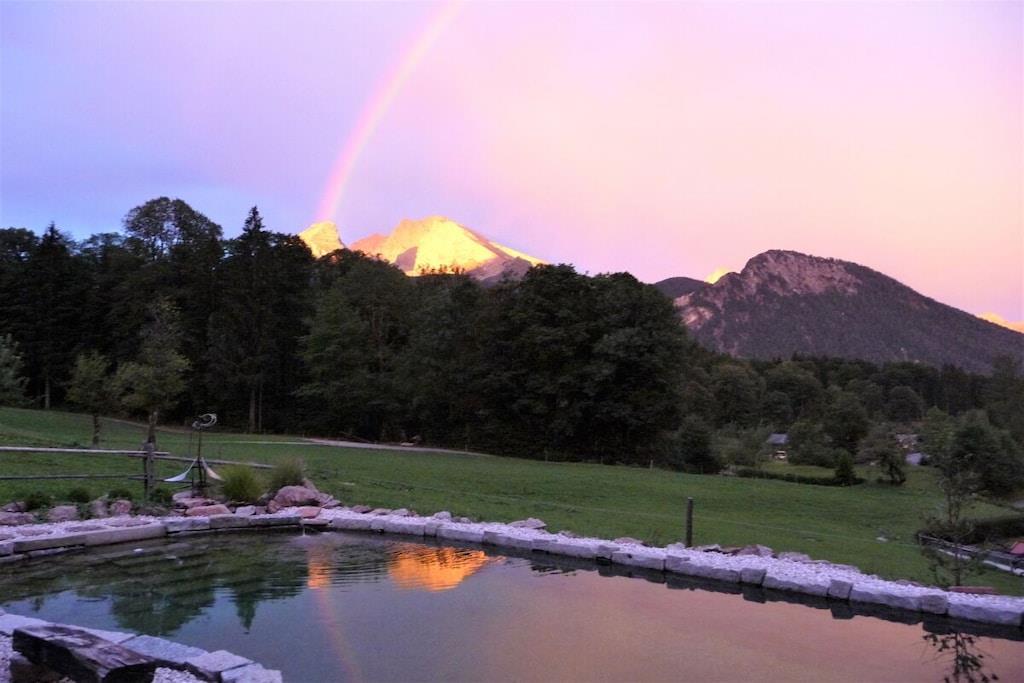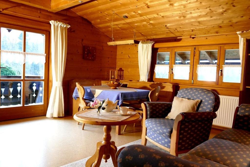 Holiday apartment Malerhäusl on Königssee, wooden log house, sunny and quiet location, wonderful mountain and Watzmann views