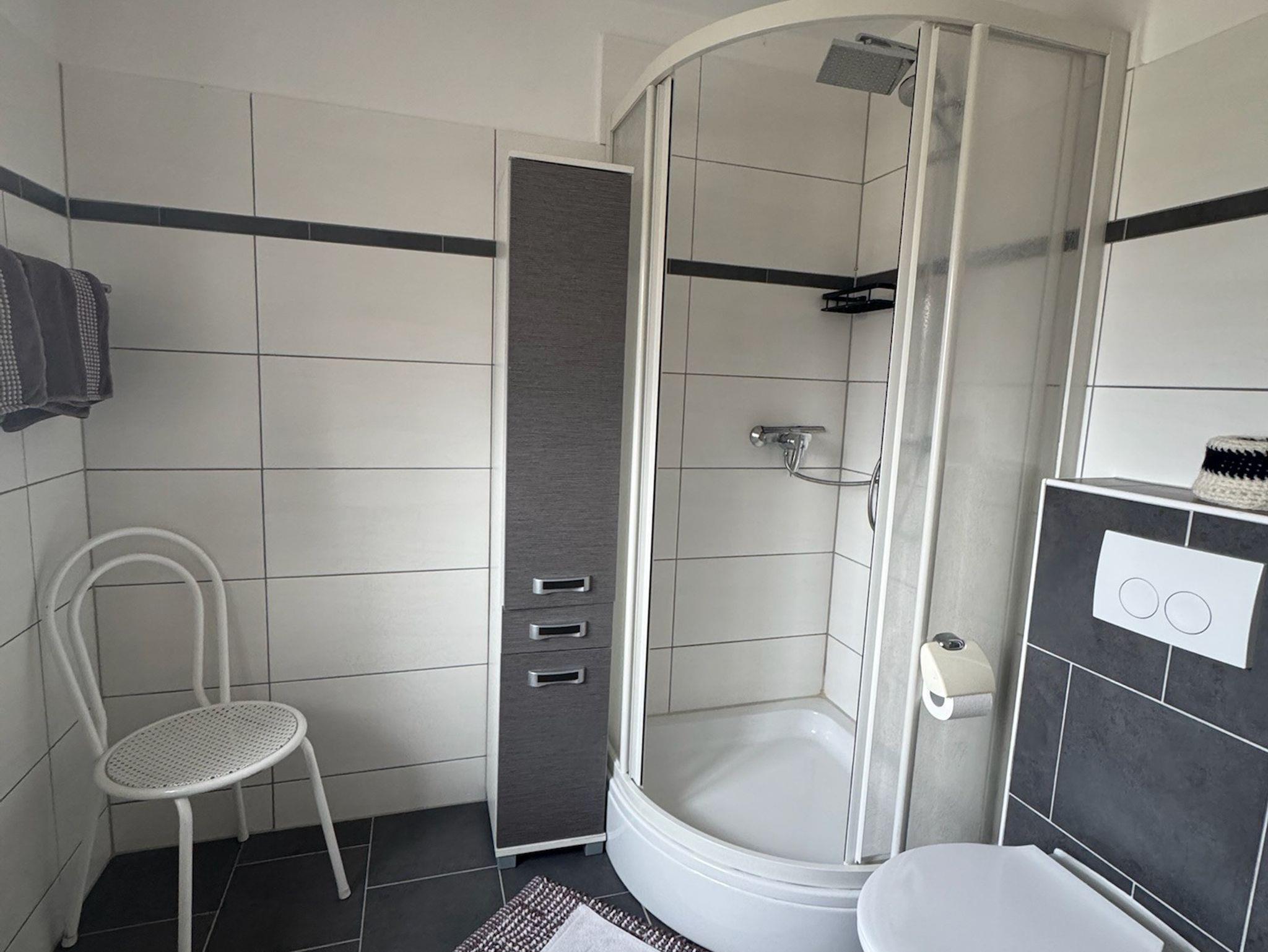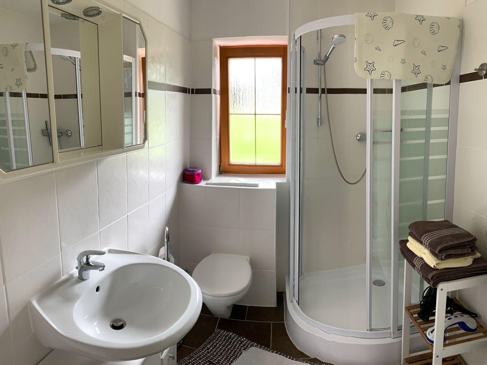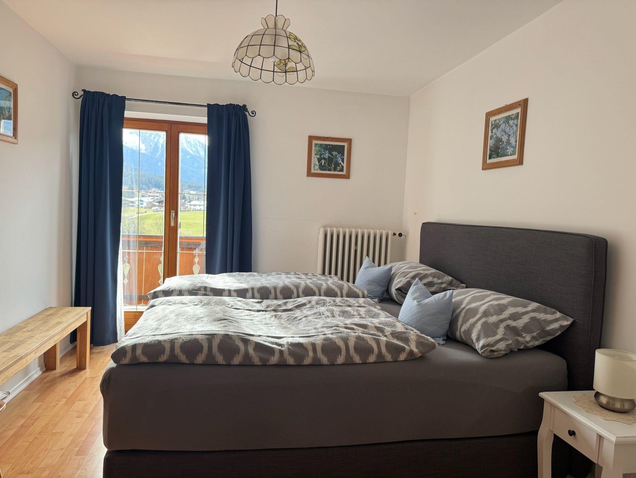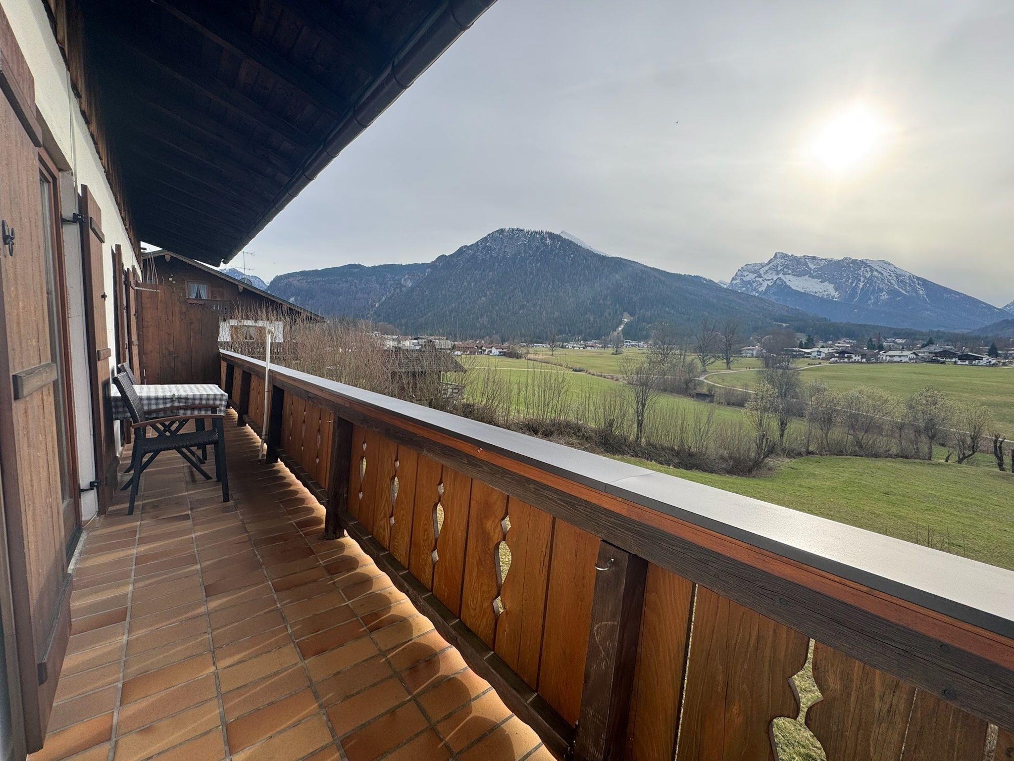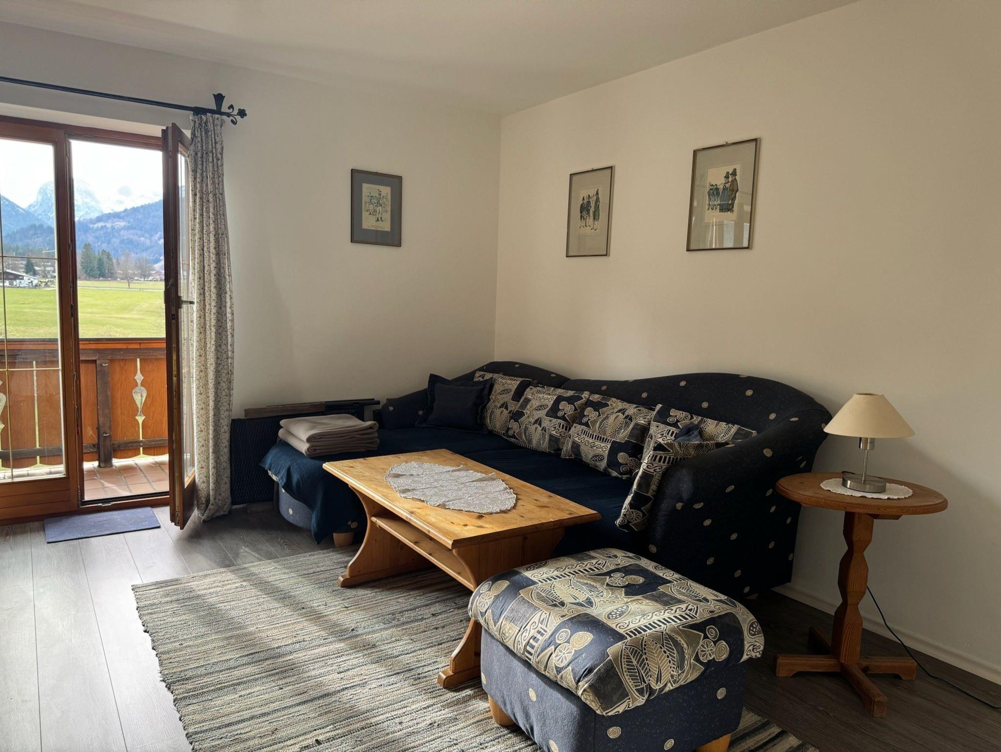 Die gemütliche Ferienwohnung bietet Platz auf 42 qm und liegt im Obergeschoß. Sie ist ausgestattet mit einem separaten Schlafzimmer mit Doppelbett, einem Wohnzimmer mit Sitzgruppe, Essecke und Kochnische (Kühlschrank, Tiefkühlfach, Kaffeemaschine, Wasserkocher, Mikrowelle), Dusche/WC mit Fön und Handtüchern. Auf dem möblierten Balkon genießen Sie den Ausblick auf die Berge.