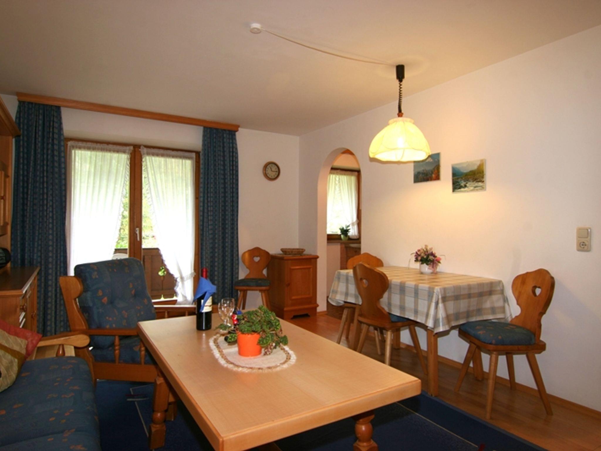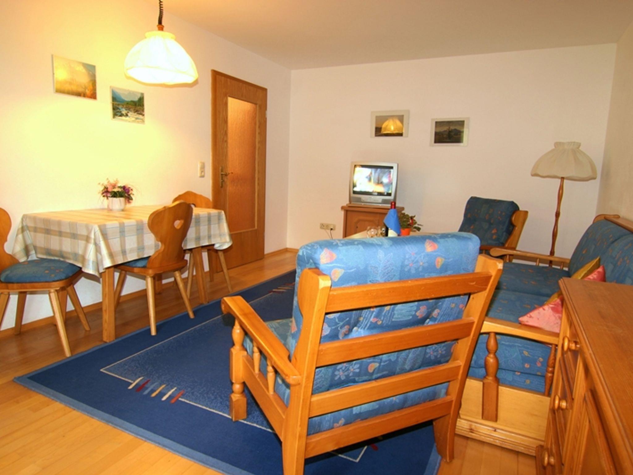Die komfortabel ausgestattete Ferienwohnung bietet ein separates Schlafzimmer sowie eine Schlafcouch im Wohnraum. Die Küche mit rustkaler Essecke ist ausgestattet mit Backofen, Kühlschrank und Tiefkühlfach, im Bad mit Dusche/WC finden sie bereitgestellte Handtücher. Radio, Telefon, Kabel-TV sind ebenfalls verfügbar. Auf der möblierten Terrasse haben sie einen wunderbaren Bergblick.