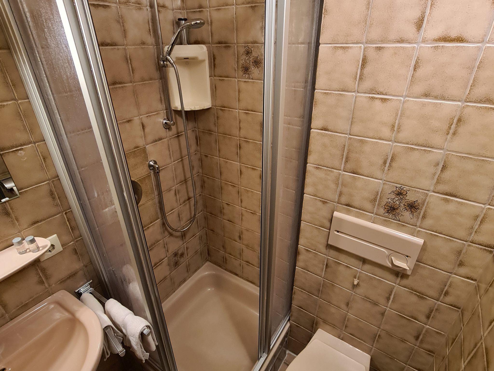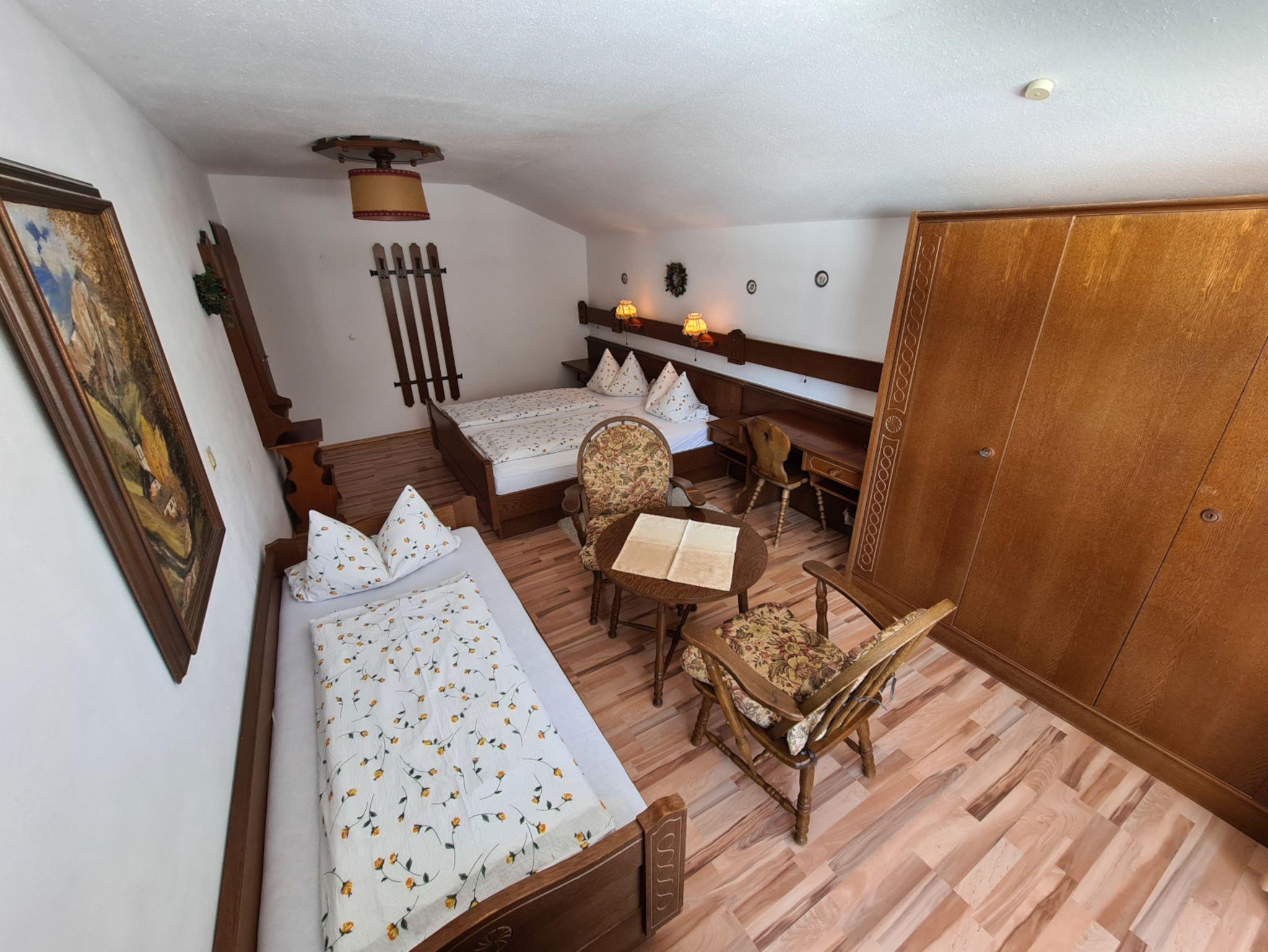 Dreibettzimmer mit Schreibtisch, Sitzecke, Radio, SAT-TV, Wecker, Bad oder Dusche/WC mit Föhn und Toilettenartikel. Das Zimmer verfügt über einen Balkon mit Balkonmöbel.