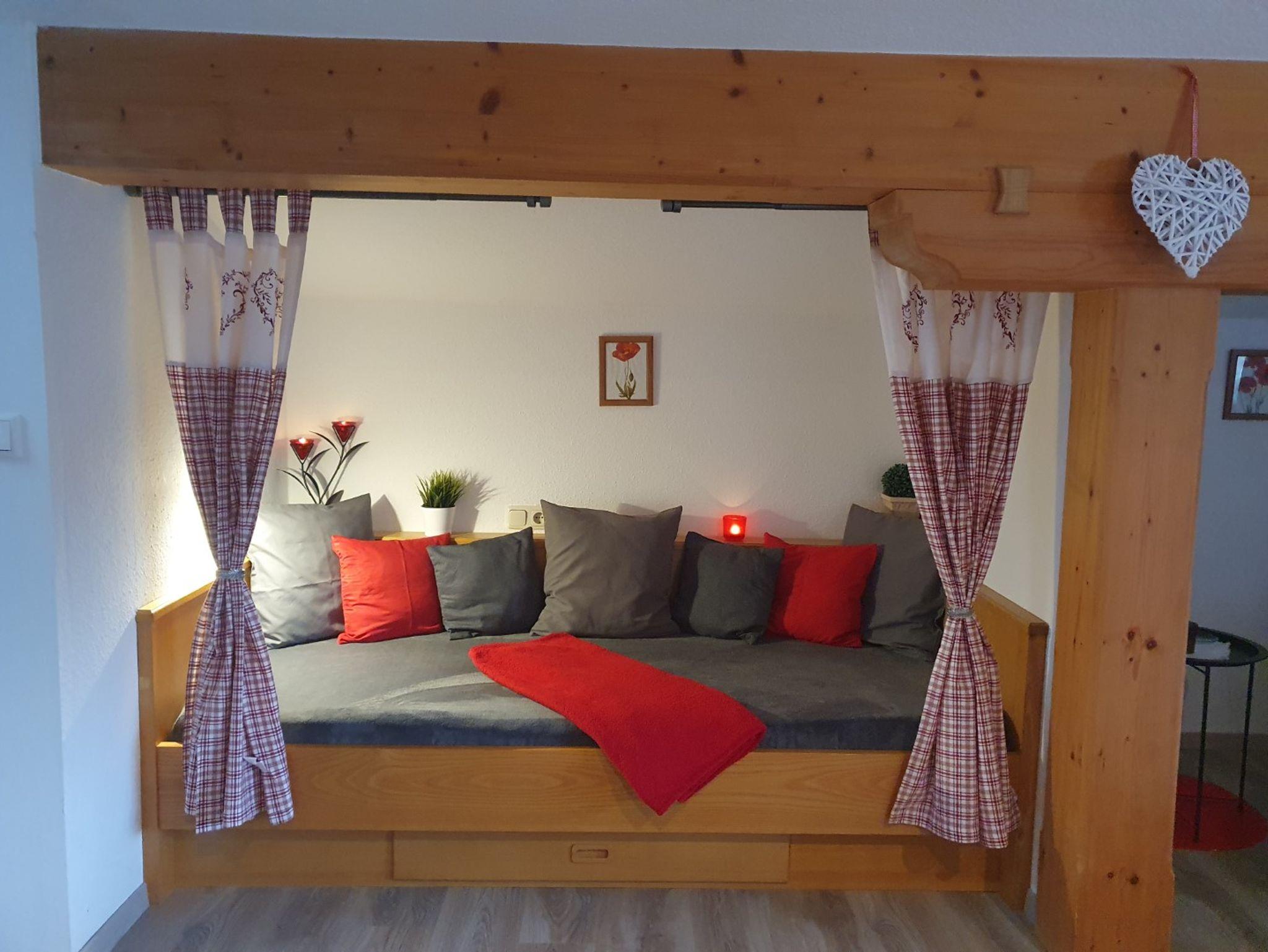 Gästehaus Moderegglehen, Nichtraucher-Ferienwohnung, 65 qm, separates Schlafzimmer, Wohnraum mit offener Küche, 2 WCs, Balkon