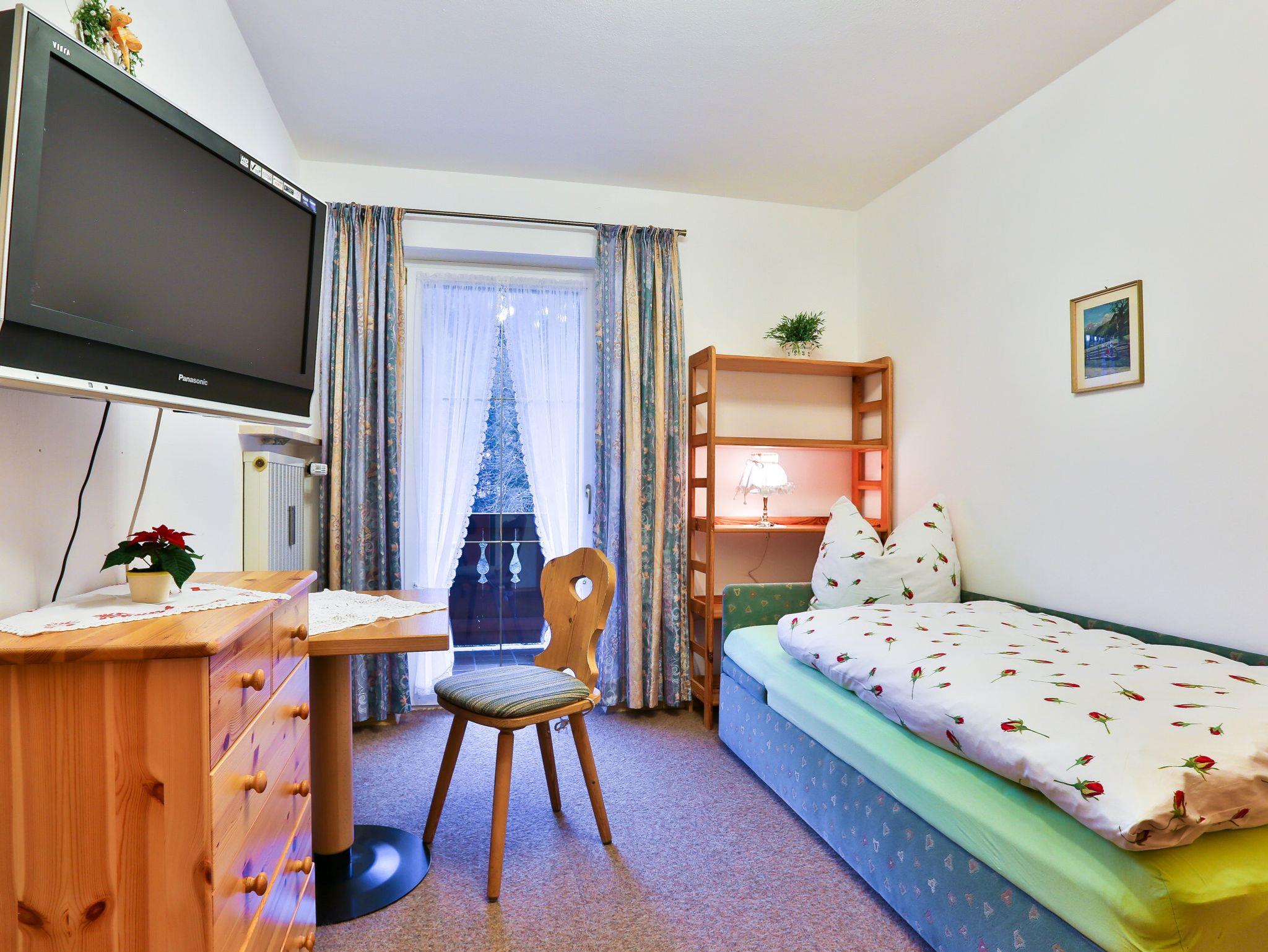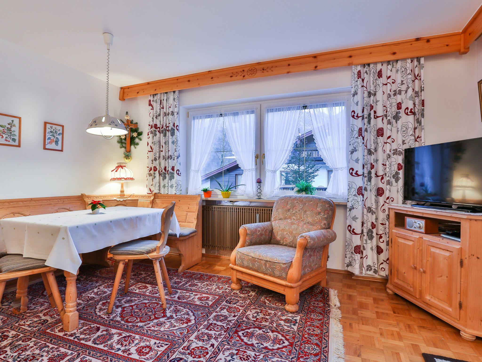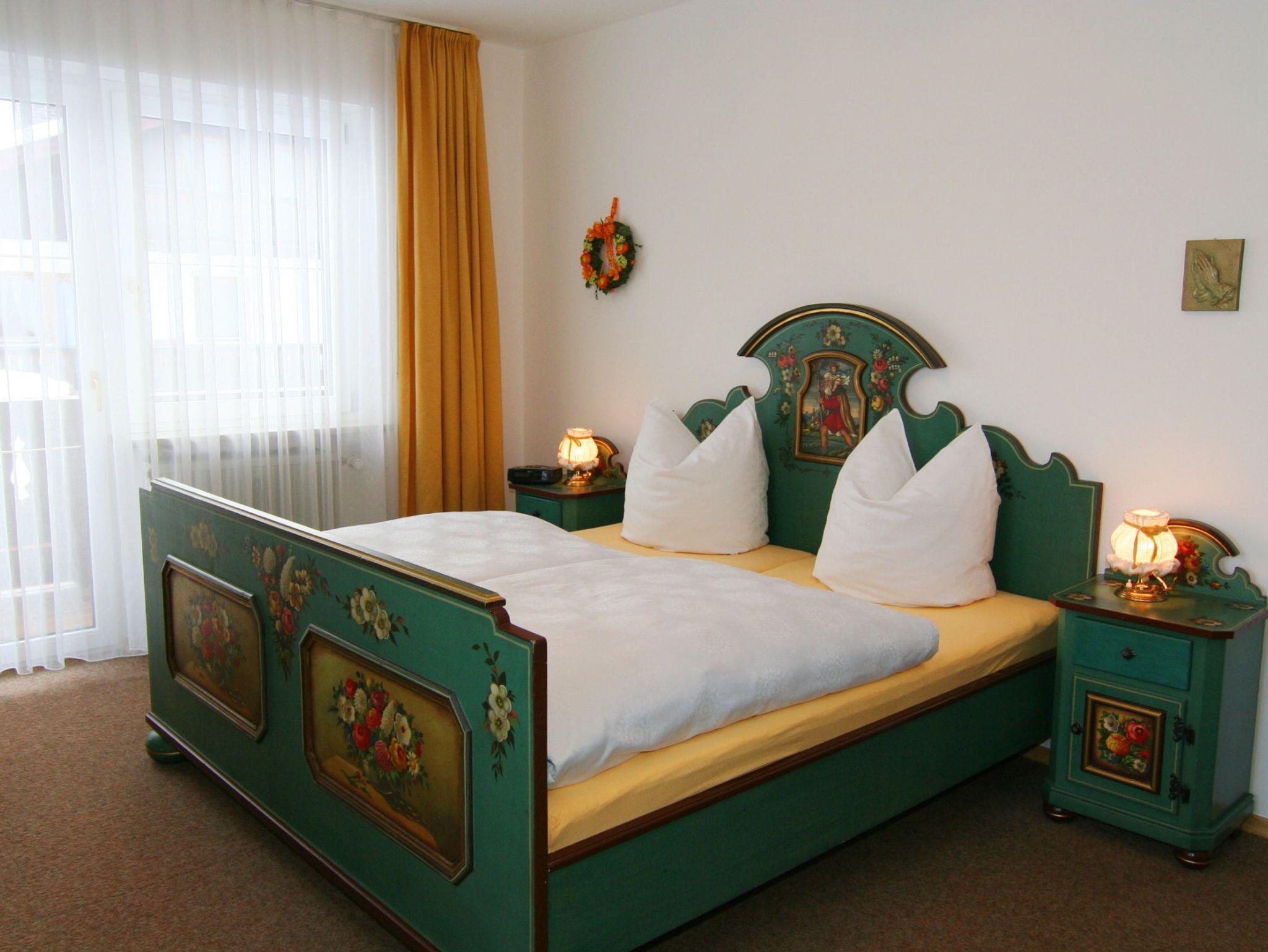 Die gemütlich eingerichtete Ferienwohnung besteht aus zwei Schlafzimmern, einem großen Wohnzimmer, einem neuen Badezimmer mit Dusche/WC, einem weiteren separaten WC, einer komplett ausgestatteten Küche mit Ofen/Backrohr, einer Spülmaschine und allem, was man zum Kochen braucht.Vom geräumigen Balkon, der sich auf der Süd- und Westseite unseres Hauses befindet und mit bequemen Sitz- und Liegemöglichkeiten ausgestattet ist, haben Sie einen wunderbaren Bergblick.Auf Wunsch kann ein weiteres Schlafzimmer mit Dusche/WC und Balkon dazu gemietet werden.In der Wohnung verfügen Sie über einen kostenloser Internetzugang (W-LAN).Einen Hochstuhl und ein Kinderbett stehen zur Verfügung.