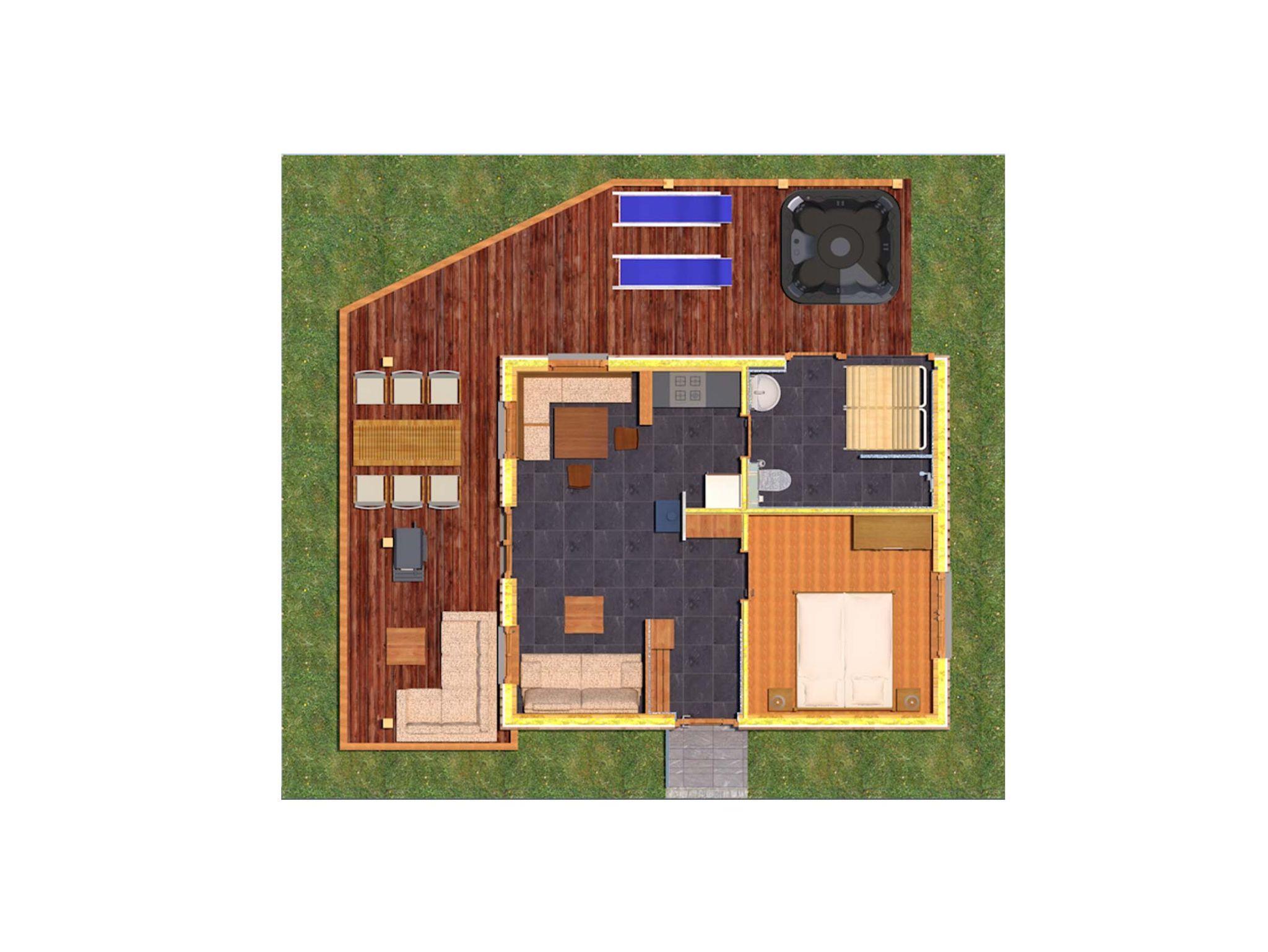 • im Bad befinden sich zwei Infrarotliegen, eine Regendusche und WC