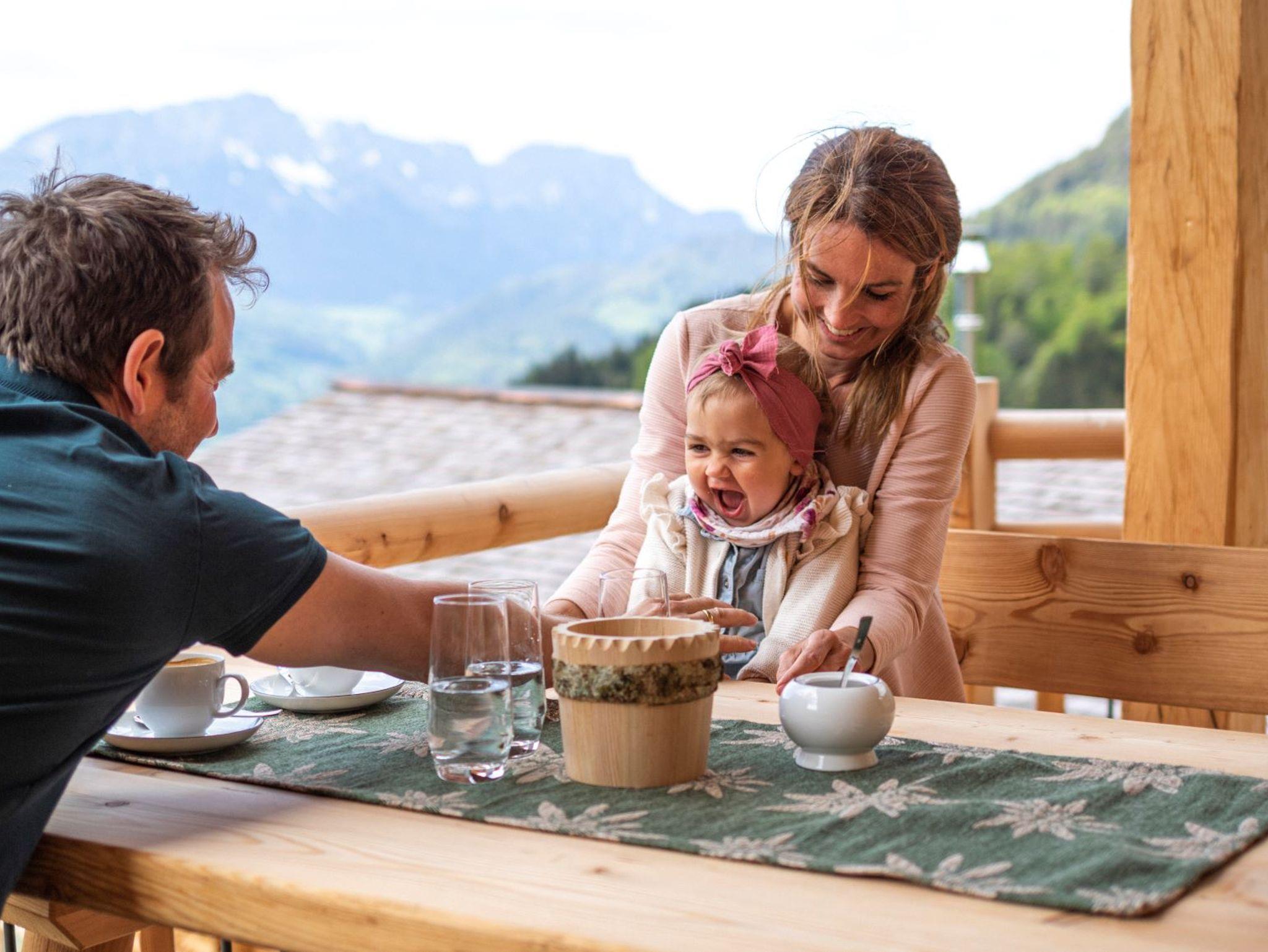 Das Almdorf Vorderbrand befindet sich in Traumlage. Die sechs atemberaubenden Almhütten liegen auf ca. 1078 m.ü.N.N. in Schönau a. Königssee. Nicht ganz oben, aber deutlich drüber. Man hat von jeder Alm-Hütte einen wunderbaren Blick auf den Talkessel von Berchtesgaden, umrahmt von der Bergkulisse. Nur wenige Höhenmeter weiter, kann man auch den Königssee sehen. Es ist ein perfekter Startpunkt für viele Berg- und Wandertouren. Die Mittelstation der Jennerbahn ist mit ca. 1 km Fußmarsch zu erreichen. Das Almdorf Vorderbrand bietet sechs liebevoll und gemütlich eingerichtete Almhütten. Davon zwei kleinere Almhütten mit einem Schlafzimmer und vier größere Almhütten mit zwei Schlafzimmern. Die Almhütten wurden an einem Hang errichtet, so stehen die Hütten erhaben und eine nach der anderen, erhöht im Gelände. Der Weg zu den Hütten ist im Winter beheizt und bei Nacht beleuchtet. Jede Alm hat eine großzügige Terrasse, die mit Grill, verschiedenen Sitzmöglichkeiten, sowie mit einem Whirlpool ausgestattet ist.Außerdem gehört zu jeder Alm eine Stellplatzüberdachung, sowie eine Mini-Garage für Fahrräder, Ski, Schlitten und Co.Steckdosen für E- Bikes und Ladestationen für Elektrofahrzeuge stehen ebenfalls zu Verfügung.Alle Hütten haben Fußboden-Heizung und einen gemütlichen Gas-Kaminofen. Das wird durch ein Block-Heizkraftwerk bewerkstelligt. Das Almdorf Vorderbrand zählt zu den klimafreundlichen Gastgebern der Gemeinde Schönau a. Königssee.