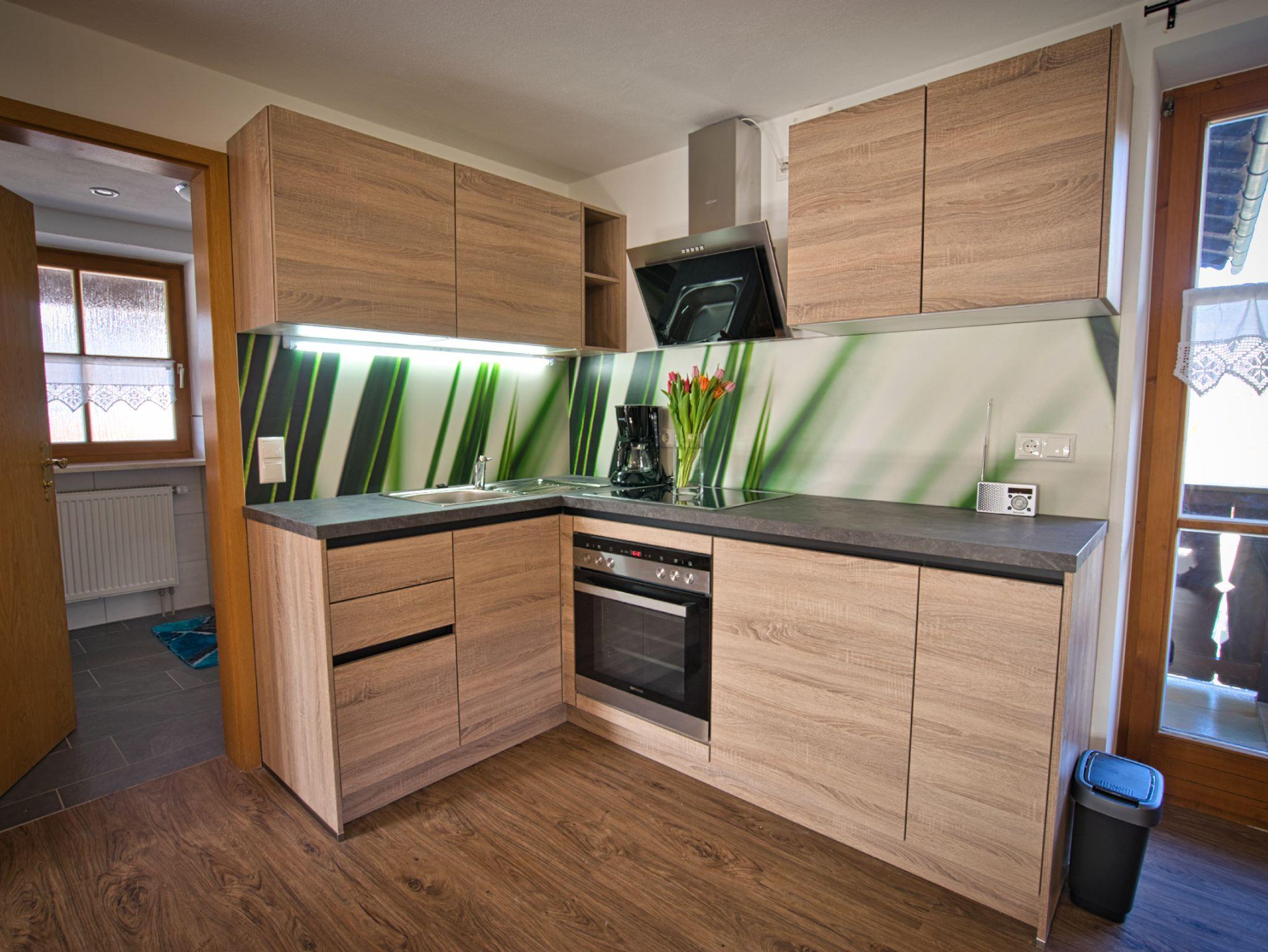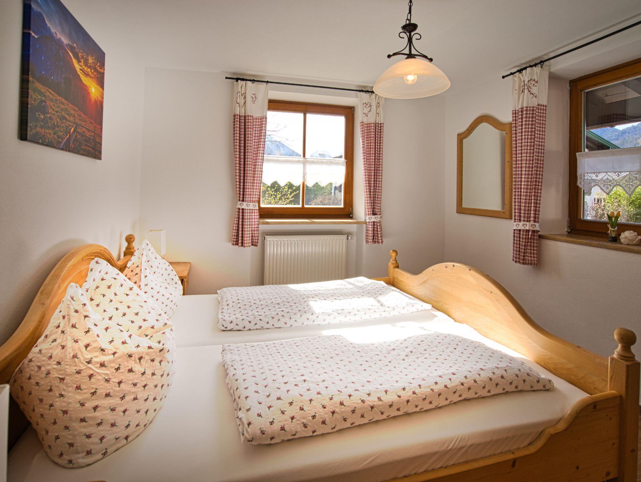 Komfortables Appartement im bayerischen Stil geschmackvoll eingerichtet, separates Schlafzimmer, Bad mit Dusche und WC, Wohnzimmer mit SAT-Farb-TV, CD-Player und Radio. Komplett eingerichtete Küchenzeile mit Dunstabzug und Esstisch, Balkon mit herrlichem Bergblick. Im ersten Stock gelegen. Eigener Eingang.