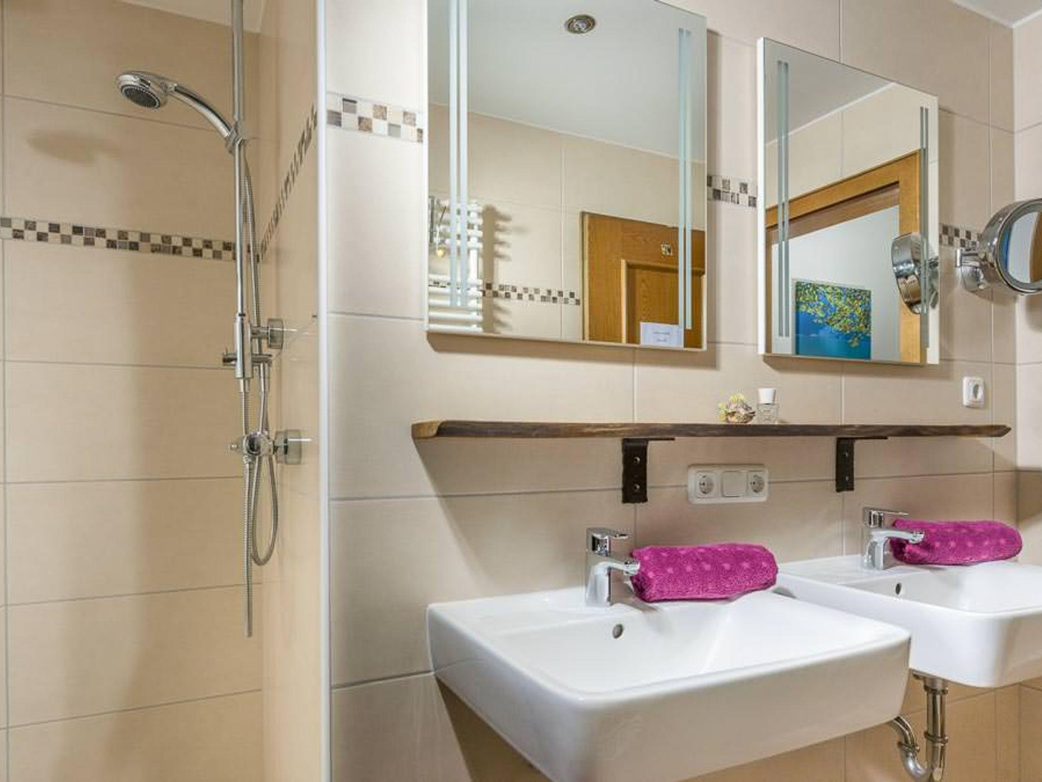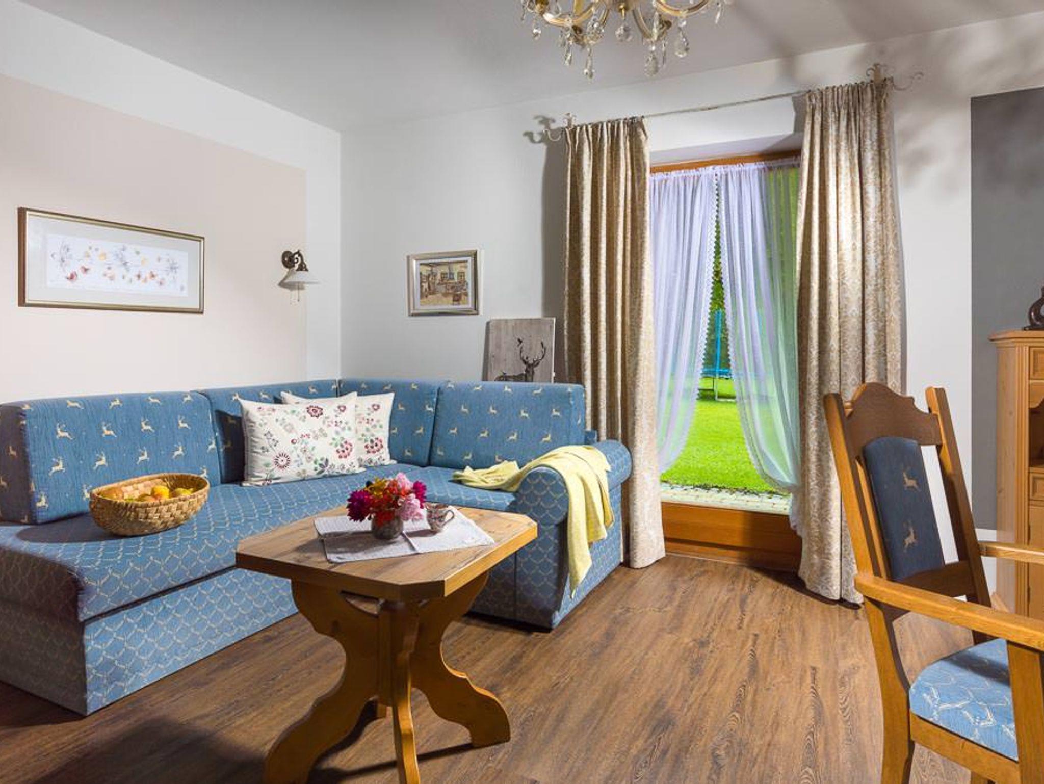 Wohlfühlferienwohnung Hirscherl. Fühlen Sie sich wie zu Hause in unserer 4Sterne Ferienwohnung mit 55 qm Wohnfläche. Sie Urlauben mit Ihrer eigenen, ca. 50 qm großen Terrrasse und direktem Zugang zu unserem gepflegten Garten. Der gemütliche Wohnraum verfügt über eine Ausziehcouch, Sitzecke, Flat-TV, eine offene Küchenzeile und Esstisch - mit schönem Bergblick. Die Küche ist mit Spülmaschine, Backofen, Kühlschrankkombination, Kaffeemaschine und vielem mehr ausgestatte. Alle Möbel sind vom Schreiner gefertigt. Das großzügige Schlafzimmer mit Flat-TV hat direkten Zugang zur Terrasse. Das geräumige Badezimmer mit Regendusche und zwei Waschbecken, Handtuchwärmer, Kosmetikspiegel, Fön und separatem WC, macht den Wohlfühlurlaub komplett. Unser gepflegtes, liebevoll im Landhausstil eingerichtetes Haus ist sehr ruhig am Waldrand gelegen.