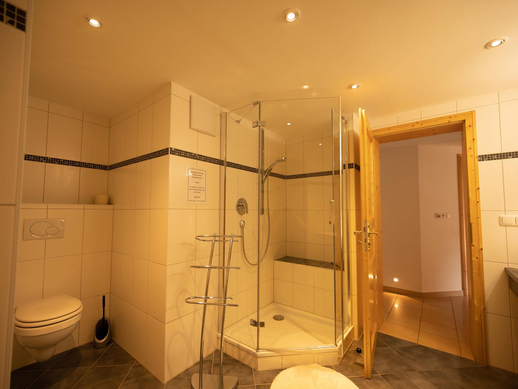 Die Ferienwohnung besitzt zwei separate Schlafzimmer im ländlichen Stil, mit geschmackvollen Wohnaccessoires. Durch die gute Aufteilung ist die Wohnung entweder für eine große Familie oder für zwei Pärchen sehr gut geeignet. Die Wohnung bietet ein geräumiges Bad mit Dusche und Toilette plus eine separate Toilette. Zudem liegt die Wohnung in der 1. Etage, hat aber einen ebenerdigen Eingang mit separatem Parkplatz.Handtücher gehören nicht zur Inclusivleistung, können jedoch beim Gastgeber direkt dazu gebucht werden. Preis pro Handtuchpaket 5.00 €.