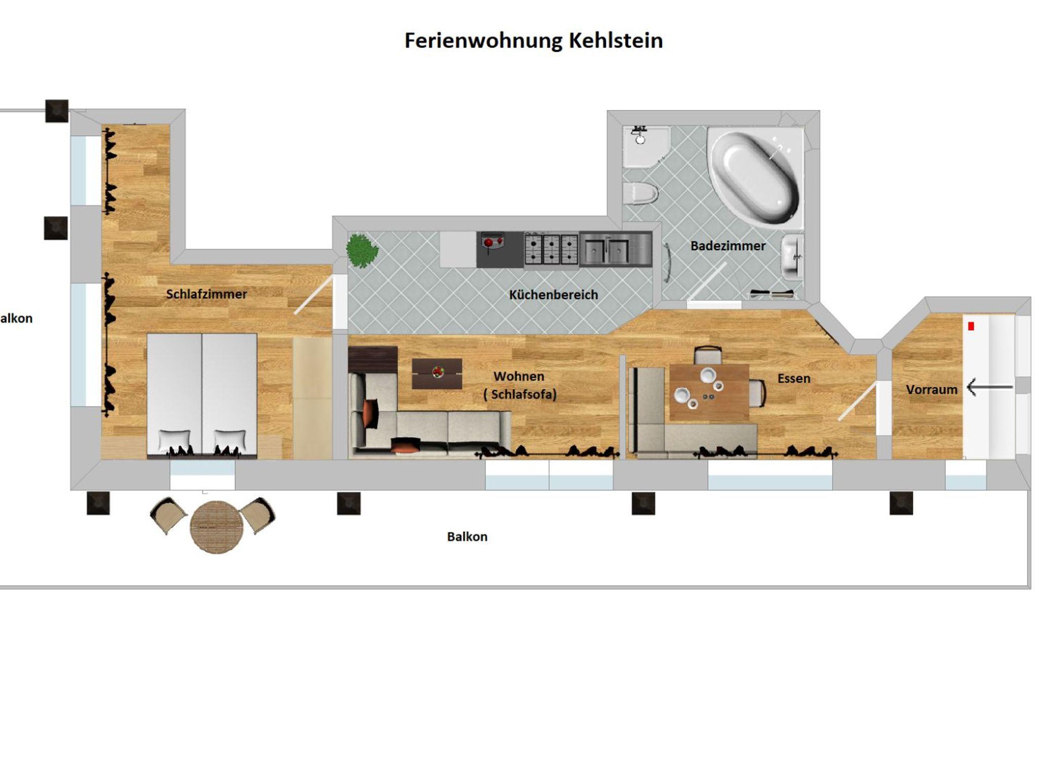 Unsere Ferienwohnung Kehlstein vermittelt durch ihren ländlichen Stil den typischen Berchtesgadener Charme und bietet 1 -2 Personen Platz auf 55 qm. Sie ist ausgestattet mit einem separaten Schlafzimmer mit Doppelbett und Sat-TV, einem Wohnraum mit voll ausgestatteter Küchenzeile, Essecke, ausziehbarer Schlafcouch (für bis zu 2 Kinder geeignet - auf Anfrage), Smart-TV, kostenlosem WLAN und einem Bad mit Dusche, Badewanne, WC. Der großzügige Balkon bietet einen wunderbaren Blick auf die Berchtesgadener Bergkette und lädt für erholsame Stunden zum verweilen ein.Unsere Ferienwohnunganlage/unser Appartement wurde nach dem Klassifizierungssystem des Deutschen TourismusVerbandes als Ferienwohnung/Ferienhaus mit 5 Sternen klassifiziert.