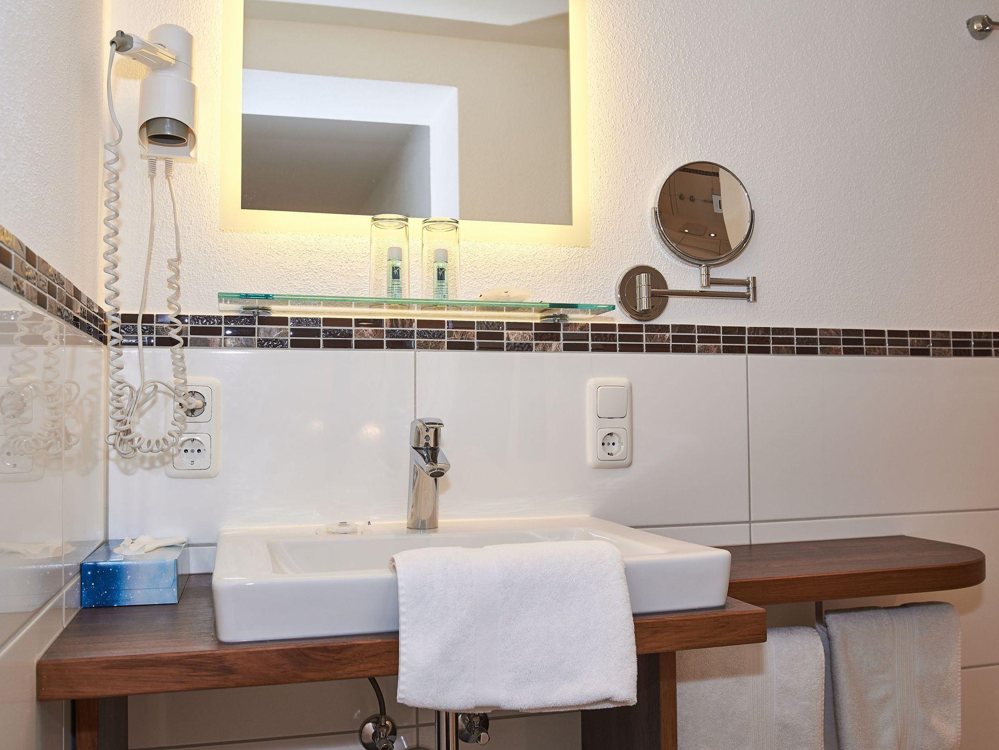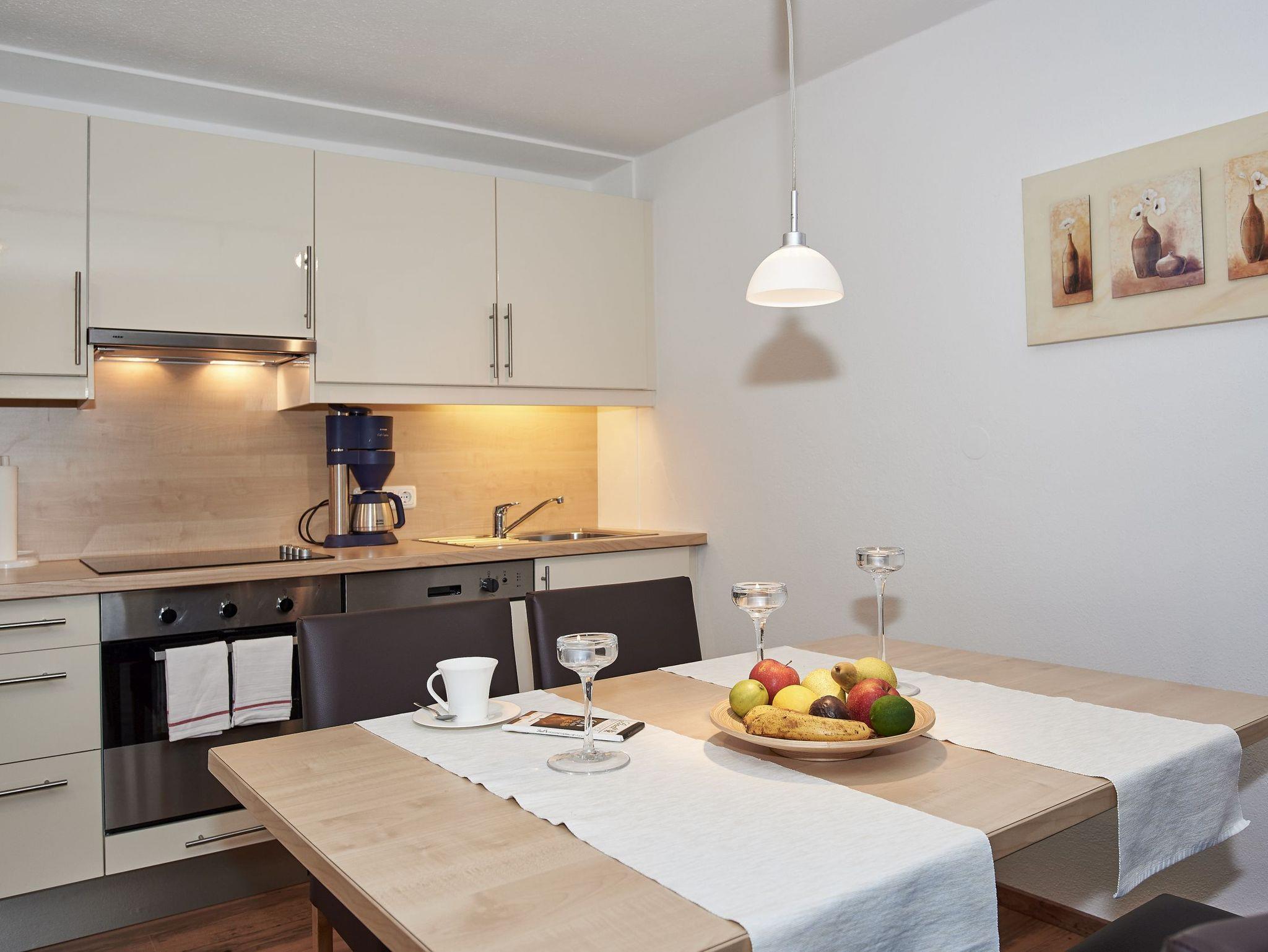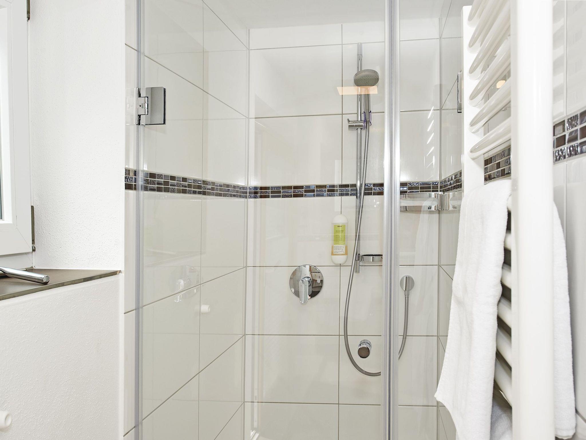 Im Winter 2022 und 2026 (neue Böden) wurde dieses moderne Ferienappartement mit zwei Terrassen neu gestaltet und bietet Platz für 4 Personen. Es eignet sich für Allergiker und ist mit Parkettböden ausgestattet. Unsere Dreizimmerwohnung verfügt über eine vollausgestattete Wohnküche mit großem Kühlschrank/Gefrierfach, Mikrowelle, Backofen, Ceranfeld, Kaffeemaschine, Küchenutensilien, Geschirrspülmaschine und Spüle. Ein Esstisch mit 4 Stühlen und eine gemütliche Ausziehcouch mit Tisch, sowie Elektrokamin (beheizbar) sorgen für Ihr Wohlgefühl. Der Wohnzimmerbereich verfügt über einen LCD Flachbild DVBT -TV und eine Micro Stereoanlage sorgt für gute Unterhaltung. Zwei getrennte Schlafzimmer mit Doppelbetten je 180 x 200 cm, Bettwäsche, je Zimmer LCD-Flachbild, Bettwäsche, Schlummerkissen, Kuscheldecke. Jedes Schlafzimmer verfügt über ein eigenes Badezimmer mit Dusche/WC, Handtücher, Haartrockner, Kosmetikspiegel, Handtuchwärmer, Pflegeprodukte und Schuhlöffel, sowie eine Sitzecke mit Tisch und Stühlen bzw. einen Schreibtisch, Safe und Infomappe. Kostenloses Wlan steht selbstverständlich zur Verfügung. Die Terrassen sind bestuhlt und mit Tisch/ Liegen und Sonnenschirm ausgestattet. Ein Staubsauger befindet sich ebenfalls in der Wohnung. Gerne können Sie auch unseren täglichen Brötchenservice gegen Gebühr in Anspruch nehmen. Das Appartement ist nur wochenweise buchbar, Anreise am Sonntag - kürzere Zeiträume nur auf Anfrage! Babybetten/Hochstühle sind zubuchbar. Bitte beachten Sie, dass wir keine Tiere in unserem Haus aufnehmen. Wir empfehlen Ihnen den Abschluss einer Reiserücktrittsversicherung! Bis dato geleistete Anzahlungen erstatten wir mit einem generellen Abzug von 25,00 € Bearbeitungsgebühr.
