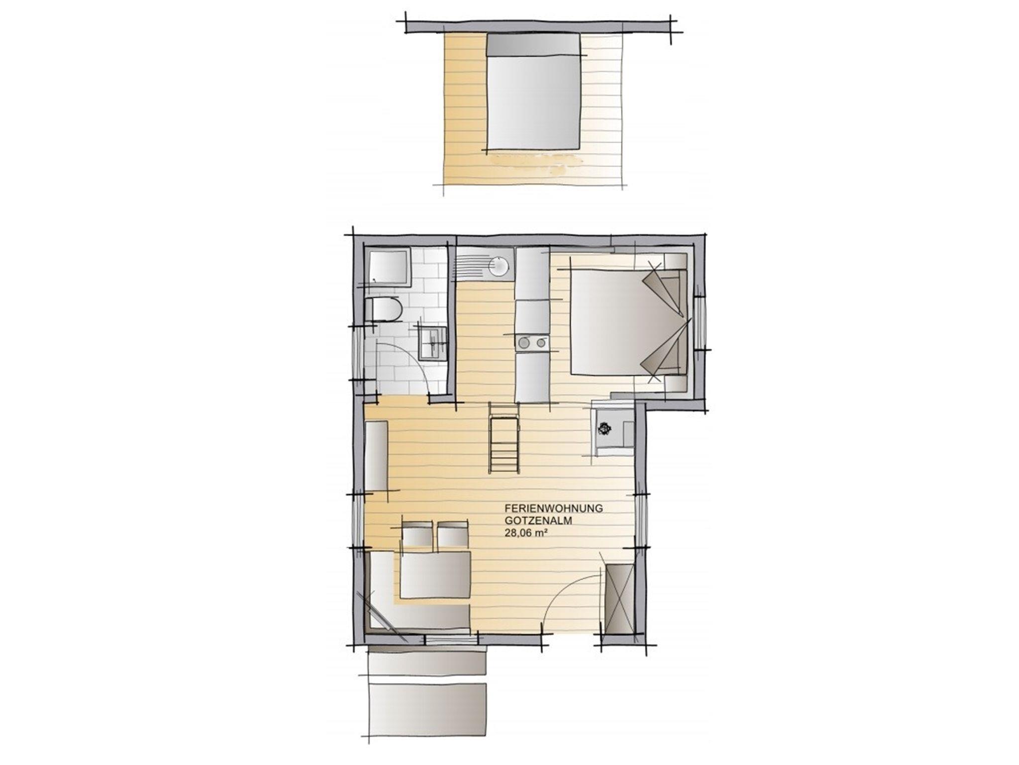 Gästehaus Siegllehen, FeWo Gotzenalm/Almkaser, 2-4 Personen mit Wohn- und Schlafraum