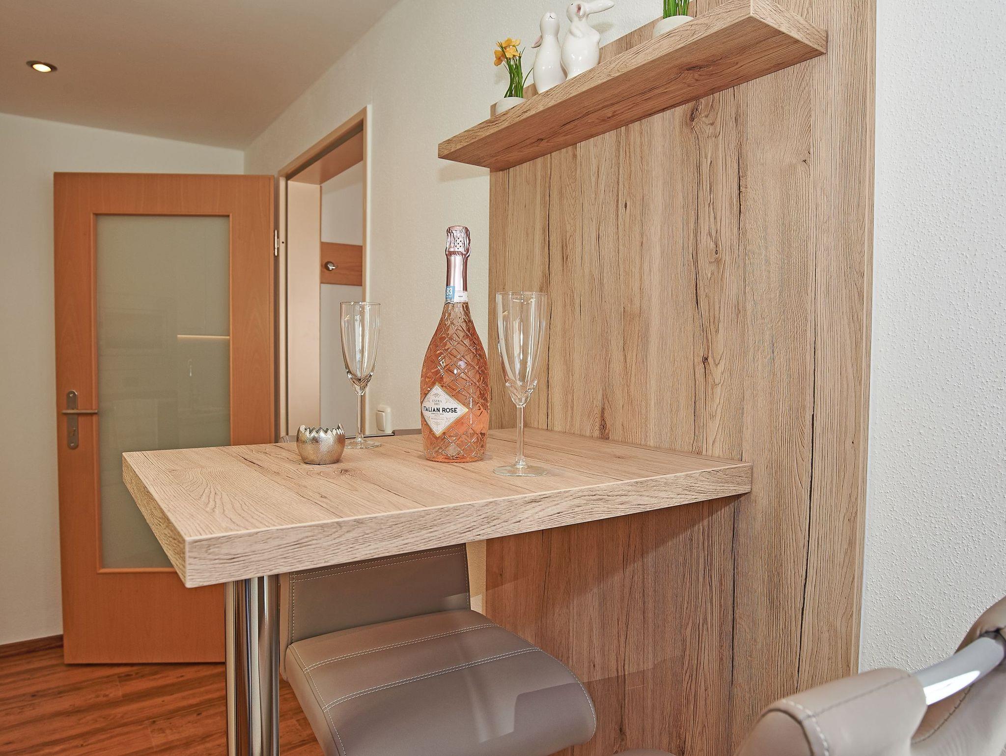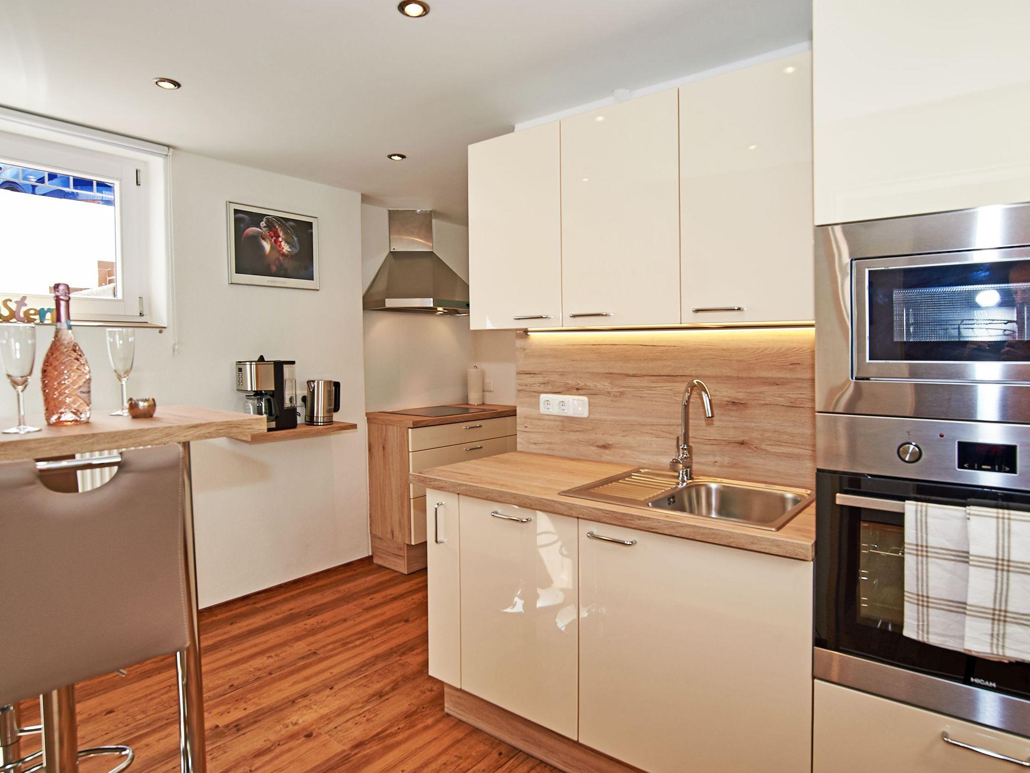 Im Winter 2022 wurde dieses moderne Ferienappartement mit Terrasse neu gestaltetet und bietet Platz für 2 Personen. Es eignet sich für Allergiker und ist mit Parkettböden ausgestattet. Unsere Dreizimmerwohnung verfügt über eine vollausgestattete Küche mit großem Kühlschrank/Gefrierfach, Mikrowelle, Backofen, Ceranfeld, Kaffeemaschine, Küchenutensilien, Geschirrspülmaschine und Spüle. Eine Kaffeebar mit 2 Barstühlen (höhenverstellbar) laden zum Morgenkaffee ein. Ein großzügiges Wohnzimmer mit Esstisch, 4 Stühlen und gemütlicher Ausziehcouch mit Tisch, sowie Elektrokamin (beheizbar) sorgen für Ihr Wohlgefühl. Ein LCD Flachbild DVBT -TV und eine Micro Stereoanlage bieten gute Unterhaltung, Safe und Infomappe stehen zur Verfügung. Das separate Schlafzimmer mit Doppelbett je 180 x 200 cm, Bettwäsche und Kommode und Schrank verfügt ebenfalls über einen LCD-Flachbild, Bettwäsche, Schlummerkissen, Kuscheldecke. Ein großzügiges Badezimmer mit Dusche/WC, Handtücher, Haartrockner, Kosmetikspiegel, Handtuchwärmer, Pflegeprodukte runden diese Wohnung ab. Sie verfügt über einen eigenen Eingang mit großzügiger Garderobe. Kostenloses W-Lan steht selbstverständlich zur Verfügung. Die Terrasse ist bestuhlt und mit Tisch/ Liegen und Sonnenschirm ausgestattet. Ein Staubsauger befindet sich ebenfalls in der Wohnung.Gerne können Sie auch unseren täglichen Brötchenservice gegen Gebühr in Anspruch nehmen. Das Appartement ist nur wochenweise buchbar, Anreise am Sonntag - kürzere Zeiträume nur auf Anfrage! Babybetten/Hochstühle sind zu buchbar.Bitte beachten Sie, dass wir keine Tiere in unserem Haus aufnehmen.Wir empfehlen Ihnen den Abschluss einer Reiserücktrittsversicherung! Bis dato geleistete Anzahlungen erstatten wir mit einem generellen Abzug von 25,00 € Bearbeitungsgebühr.