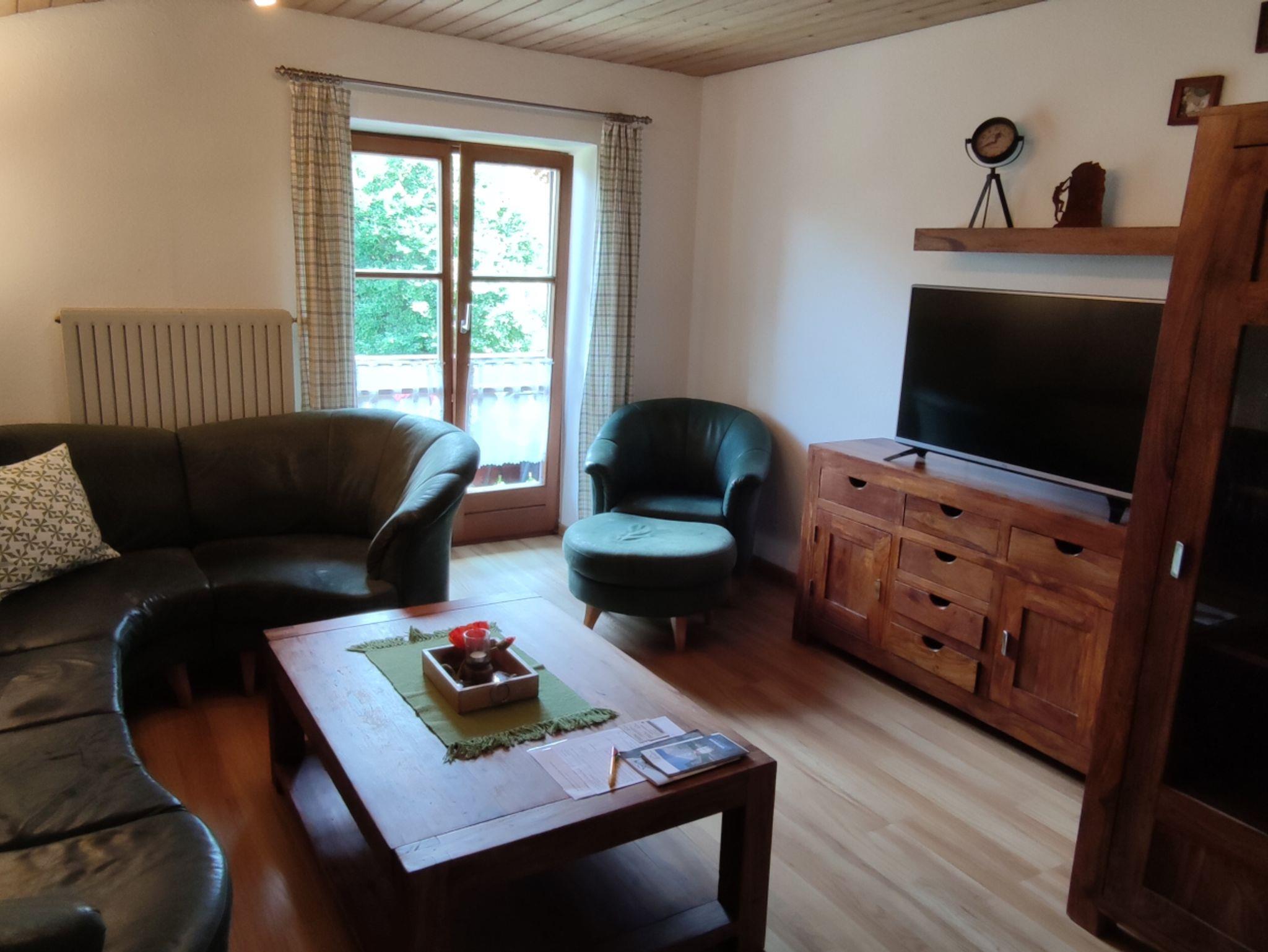 Die Ferienwohnung 1 (Kehlstein) befindet sich im Obergeschoss und bietet Platz auf 40 qm. Sie verfügt über ein Wohnzimmer, eine voll ausgestattete Küche (Herd, Backofen, Kühlschrank, Spülmaschine, Kaffeemaschine, Wasserkocher und Toaster) mit Essecke, , ein Schlafzimmer mit einem Doppelbett (180x200), ein kleines Zimmer mit Schlafsofa und ein Bad mit Dusche/WC. Die Wohnung hat zwei Balkone mit Tisch und Stühlen. So können Sie von morgens bis abends mit Blick auf die Berge die Sonne genießen.