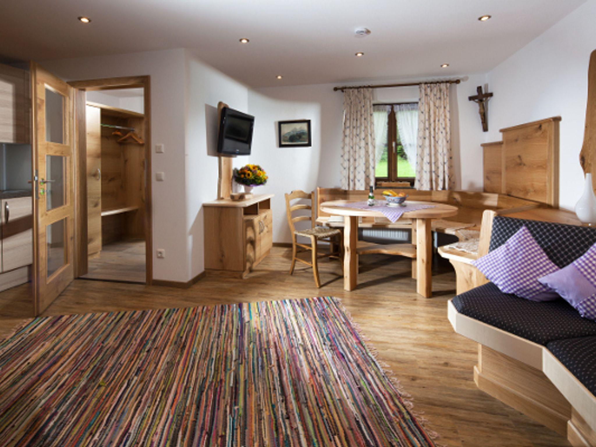 Die Ferienwohnung verfügt über einen eignen Eingang und wurde 2017 neu eingerichtet.Ihre exklusiven Highlights auf einen Blick:- 2017 komplett neu eingerichtete Ferienwohnung mit eigenem Eingang- 65 m² für 2-4 Personen- Barrierefreiheit in der Wohnung- Gratis W-LAN - 2 Flat Screen- geräumiger Koch-,u. Wohnraum (mit Mikrowelle und Geschirrspüler, ohne Backofen)Die Wohnung hat eine eigene Terrasse mit Blick auf den Grünstein und die umliegende Bergwelt des Nationalparks Berchtesgaden.
