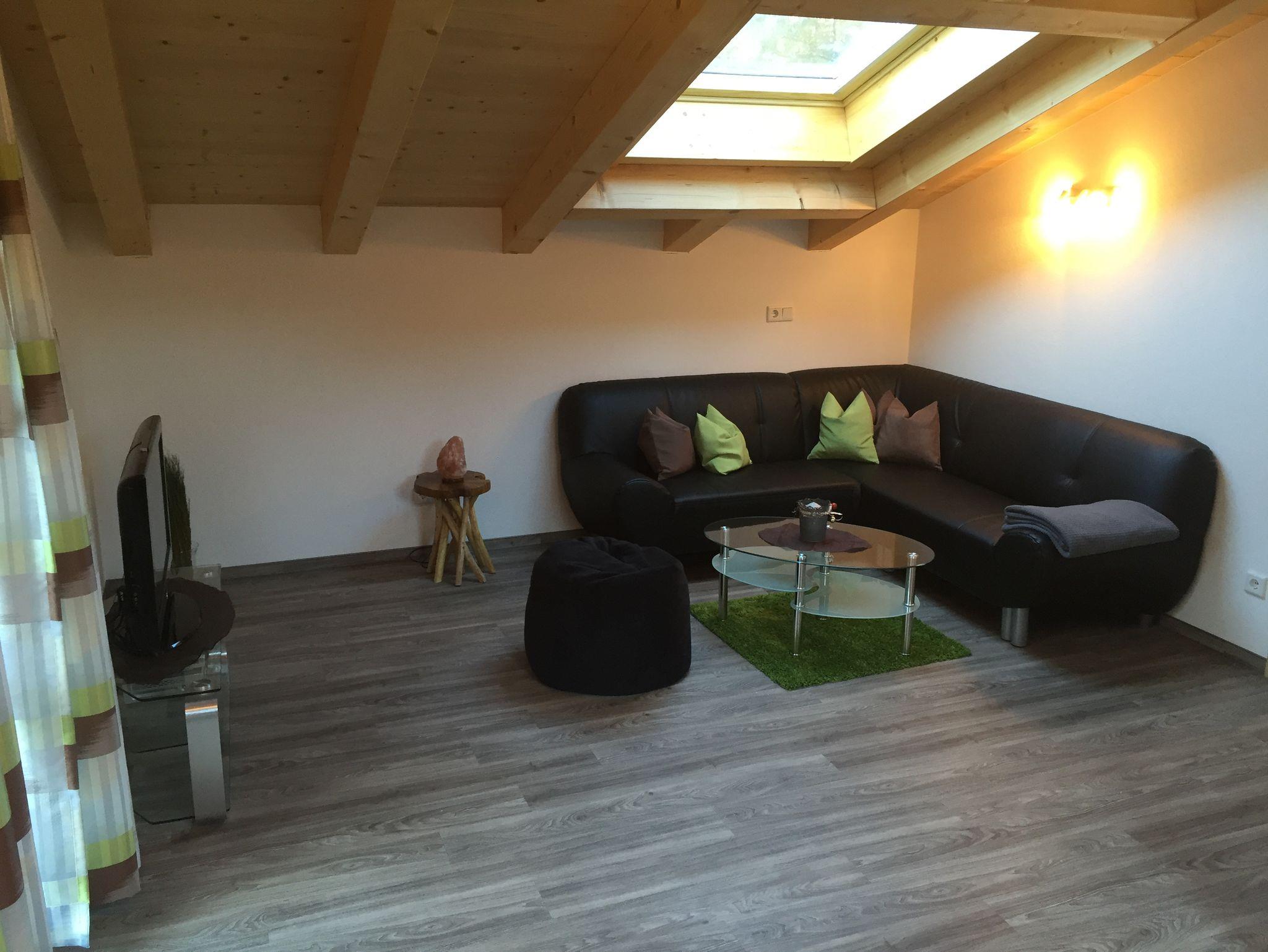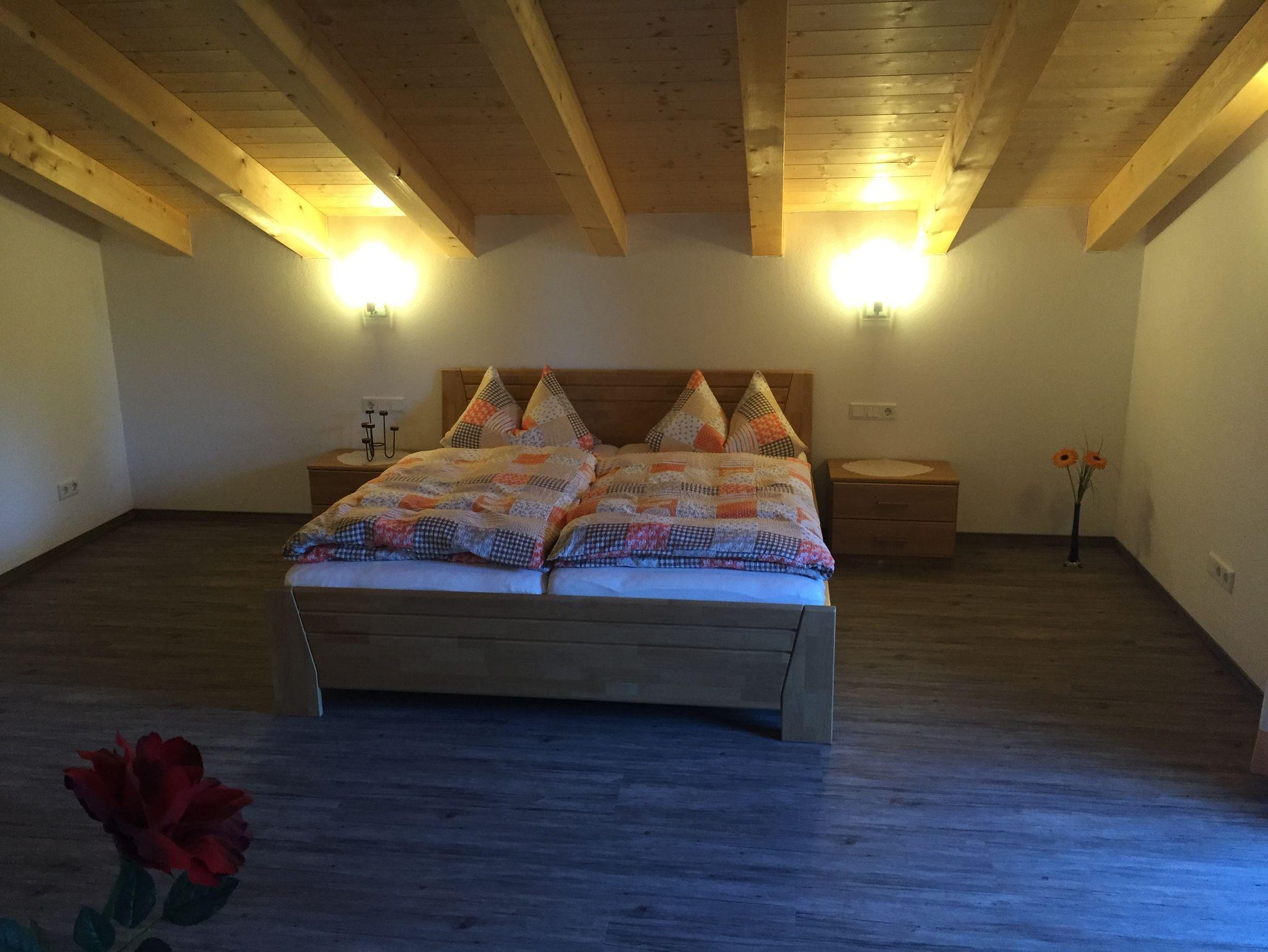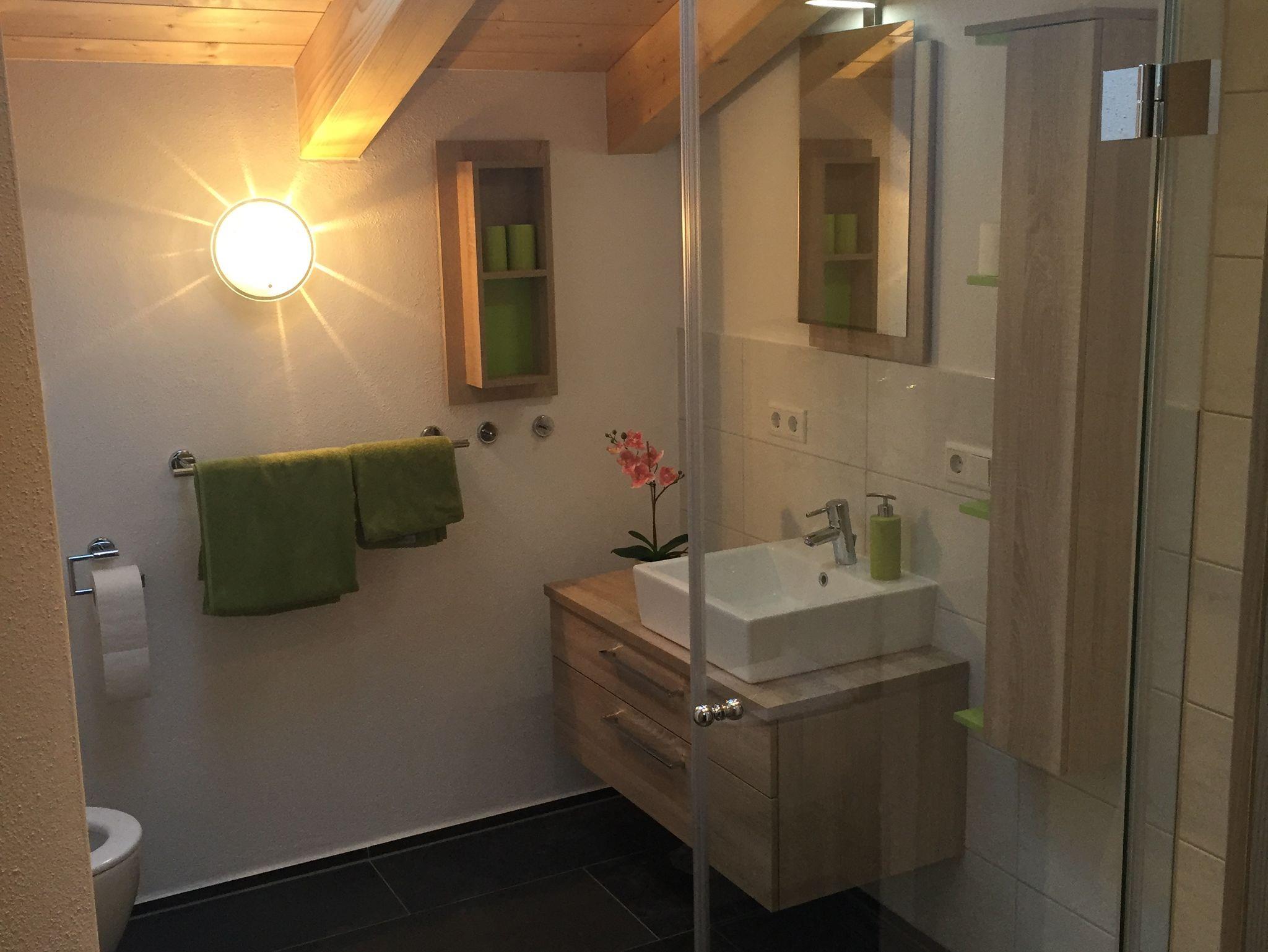 Neubau 2015! In unserem 2015 neu erbauten Haus befindet sich im 1. OG/DG eine Fewo für 2-5 Personen. Unsere Fewo verfügt über zwei getrennte Schlafzimmer, gemütliche Wohnküche mit Essecke, Couch, 2 Balkone, zwei Fernseher und kostenloses W-Lan. Bad mit Dusche/WC. In einem der Schlafzimmer ist eine zusätzliche 3. Schlafgelegenheit möglich. Eine Baby-Ausstattung mit Kinderbett, Badewanne und Toilettensitz stehen zur Verfügung. Unsere Wohnküche ist mit einer Dolce Gusto Kapselmaschine ausgestattet. Wir freuen uns über Ihren Aufenthalt.