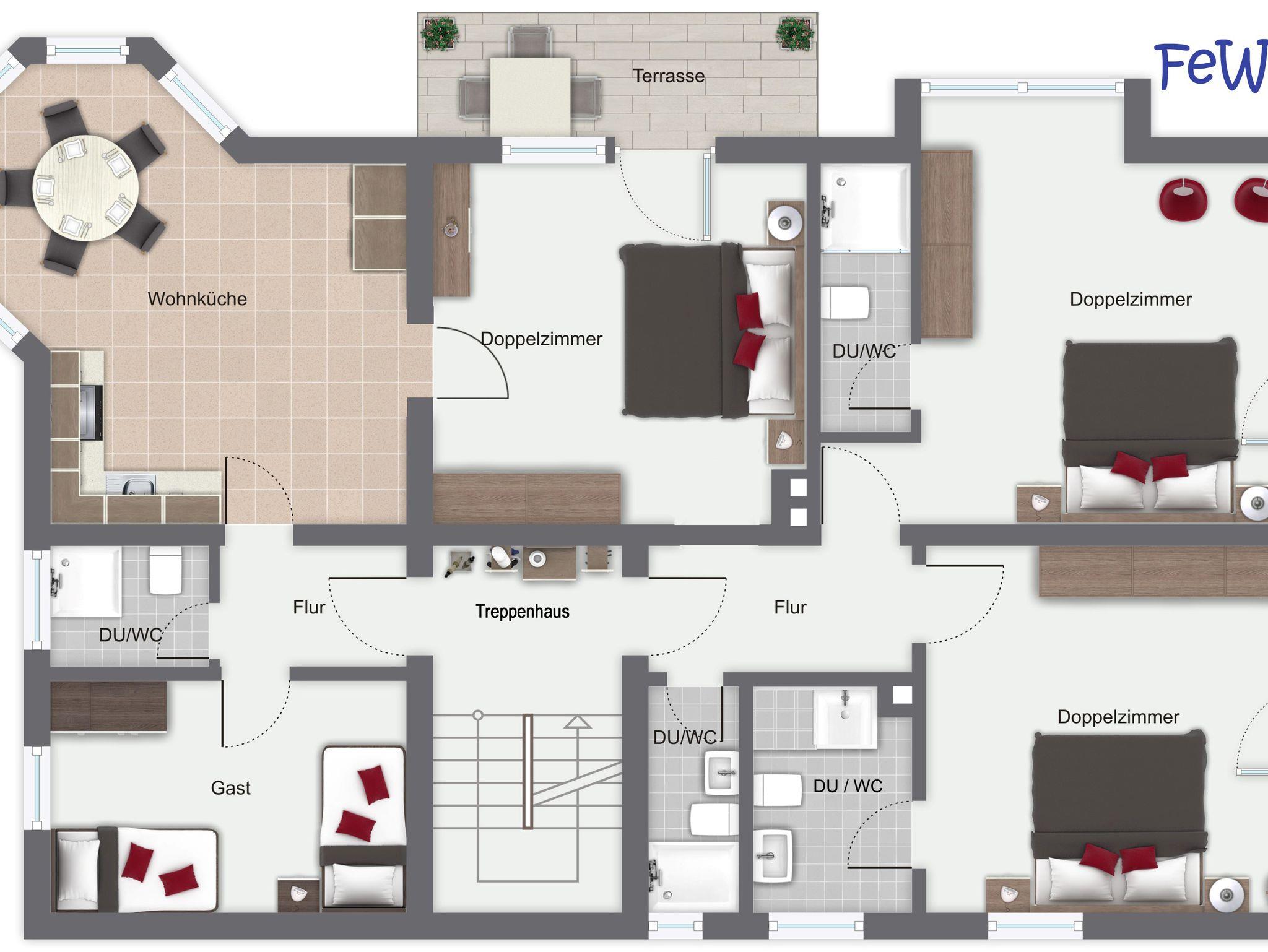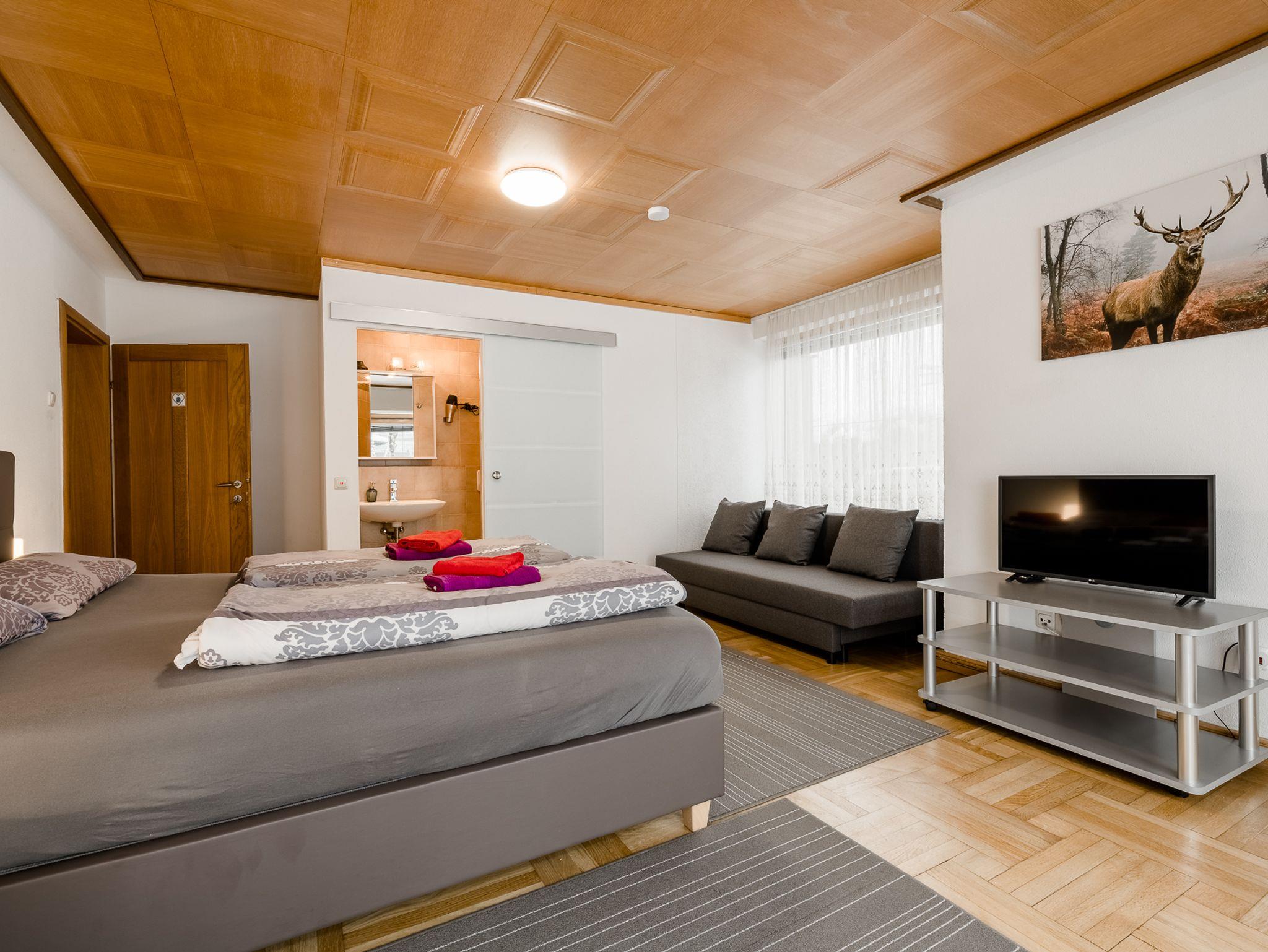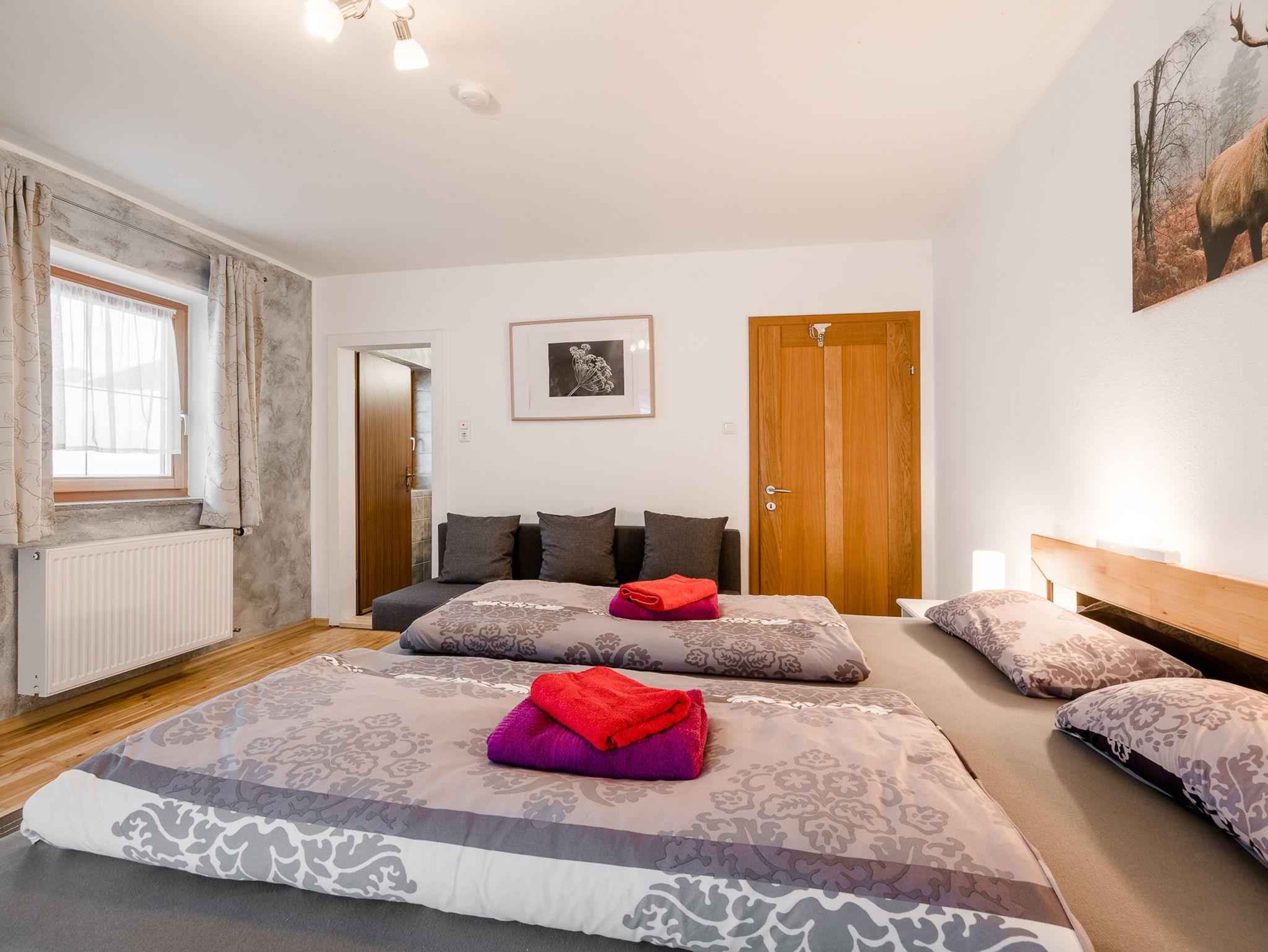Gästehaus Friedlich, Ferienwohnung 1, Kehlstein, 1-8 Personen, 100 qm, 4 Schlafzimmer jeweils mit eigenem Bad, Wohnküche, Terrasse