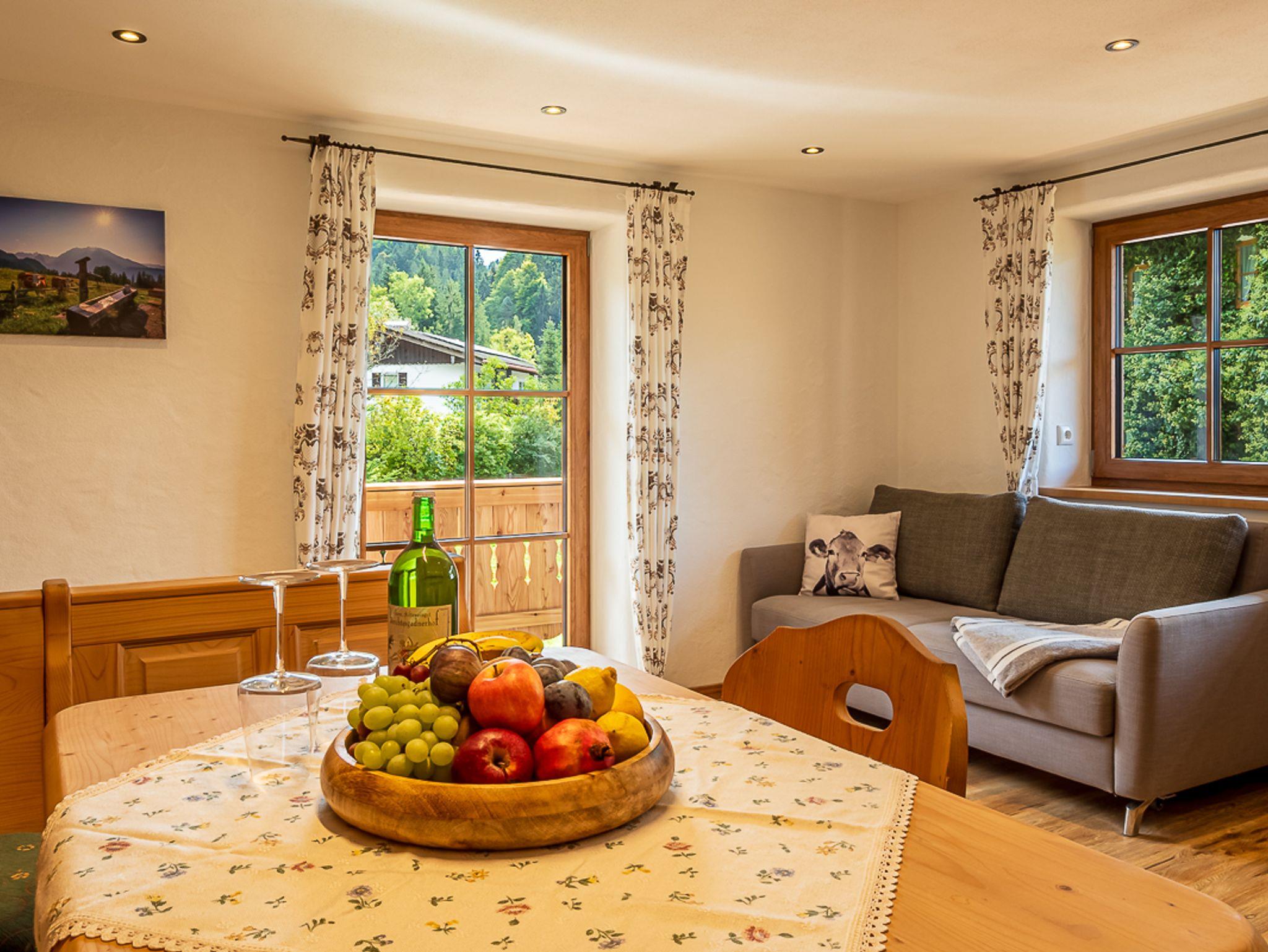 Unsere im Sommer 2023 renovierte Ferienwohnung Jenner umfasst ein Schlafzimmer für 2 Personen, eine gut ausgestattete Wohnküche mit einer gemütlichen Eckbank und einer (Schlaf)couch, ein Badezimmer mit begehbarer Dusche und WC und einen großzügigen, sonnigen Balkon mit einem Rundumblick auf die Berchtesgadener Alpen. Für unsere Gäste steht kostenfreies WLAN, sowie hauseigene Parkplätze zur Verfügung.