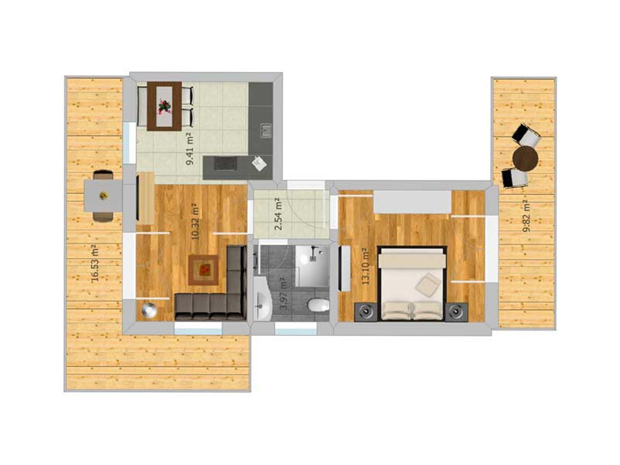 Krennlehen, Ferienwohnung Grünstein, 1-2 Personen, 53 qm, 1 Schlafzimmer, Balkon