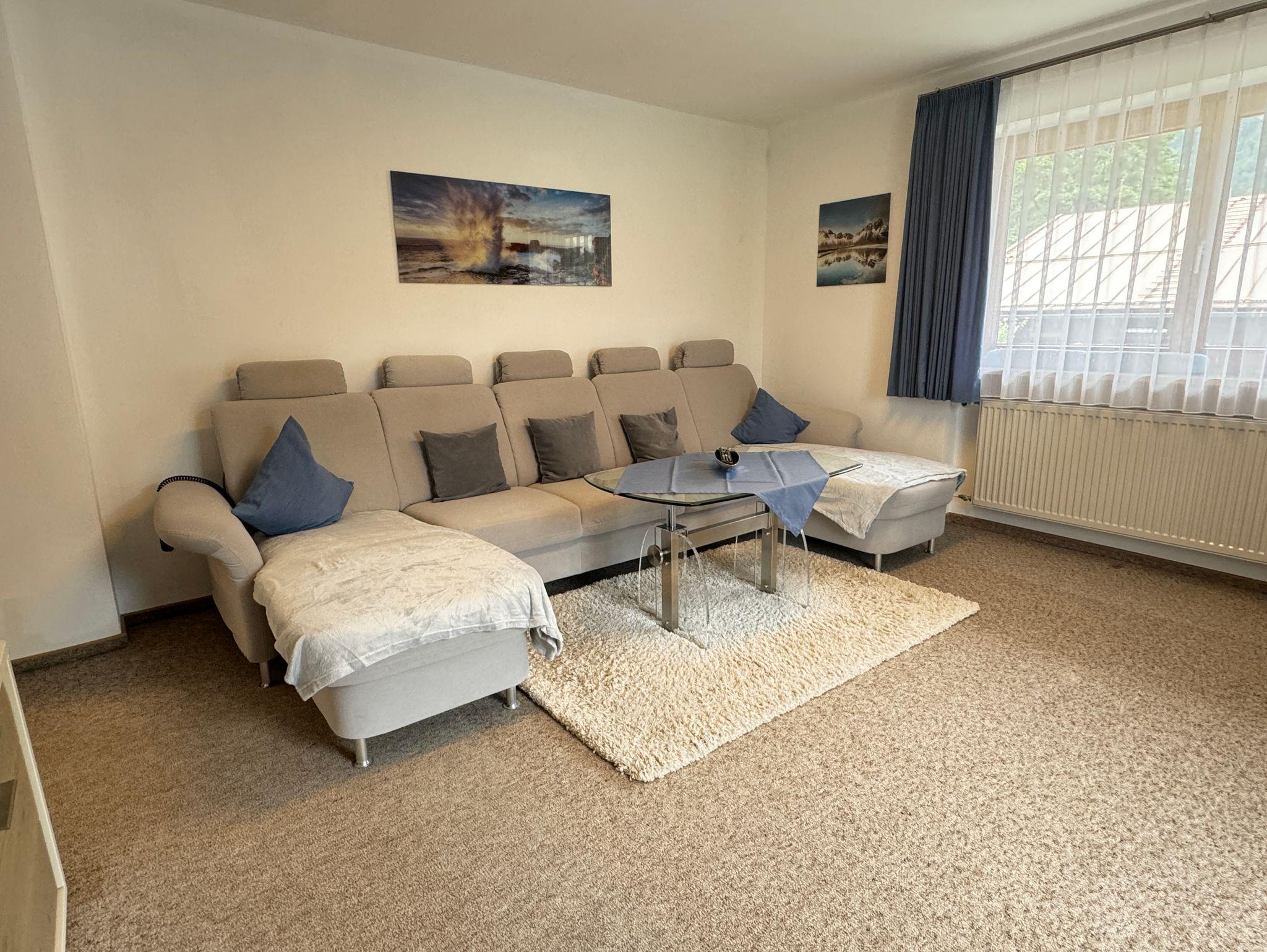 Unsere ruhig gelegene und gut ausgestattete Ferienwohnung besitzt eine Küche mit Kühlschrank, Tiefkühlfach, Kochfeld, Backofen, Kaffeevollautomat, Wasserkocher und Toaster. Die Essecke und das Sofa sowie der Flachbildschirm mit Kabel-TV laden zum Verweilen ein. Das Badezimmer verfügt über eine Dusche, WC, Spiegel. Das Schlafzimmer mit Boxspringbett und Aufbewahrungsmöglichkeiten sorgen für einen erholsamen Aufenthalt. Vom möblierten Balkon genießen Sie den Blick auf das traumhafte Bergpanorama. Freies W-Lan im ganzen Haus.