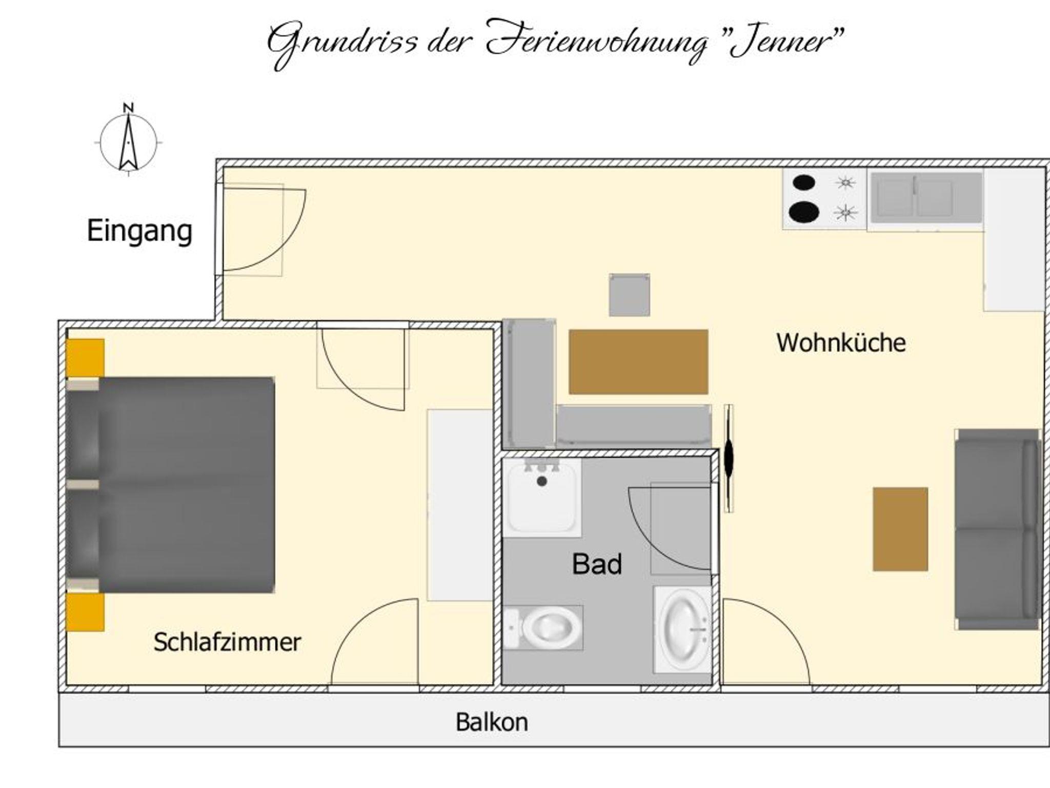 Ferienwohnungen Schwöblehen, Ferienwohnung Jenner 48 qm, für 2 Personen, Balkon, 1 Schlafzimmer
