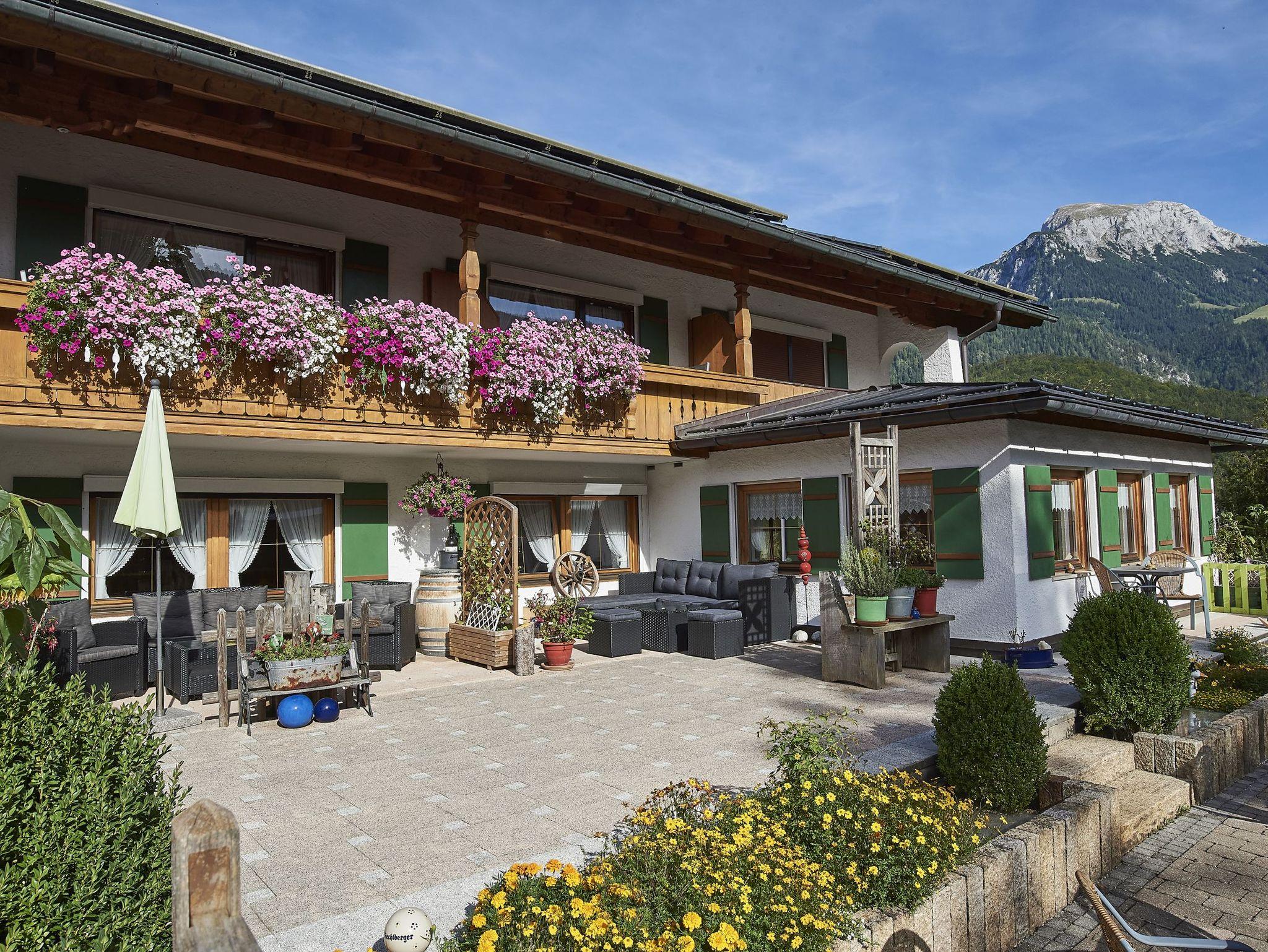 Herzlich Willkommen bei Familie Maier im Landhaus Maltermoos. Unser Haus liegt ruhig, sonnig und doch zentral. Die Zimmer sind mit viel Holz im bayerischen Stil eingerichtet und bieten Platz für 2 Personen. Genießen Sie die ruhige Lage und ein herriches Bergpanorama auf dem Balkon oder unserer Terrasse. Gerne können Sie sich an der Kaffeemaschine oder am Getränkekühlschrank selbst bedienen. Zum Entspannen stehen Ihnen eine Sauna mit Ruheraum, ein Infrarotsessel und Fitnessgeräte zur Verfügung. In wenigen Gehminuten erreichen Sie die Tourist-Information (Haus des Gastes), das Gradierwerk mit Kneippanlage und viele Gaststätten. Nur 1 Minute ist es bis zur Bushaltestelle. Nach einer kurzen Gehzeit von ca. 20 Minuten erreichen Sie den Königssee sowie die Jennerbahn. Im Winter ist auch die Langlaufloipe zu Fuß erreichbar. Gerne stehen wir Ihnen natürlich persönlich mit Ratschlägen für Ihre Aktivitäten zur Verfügung.
