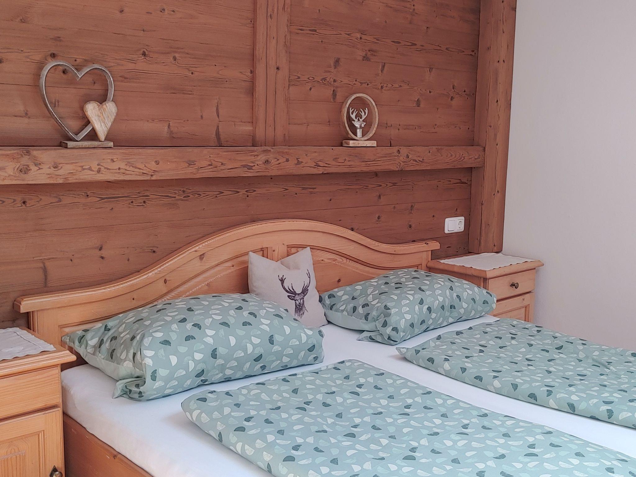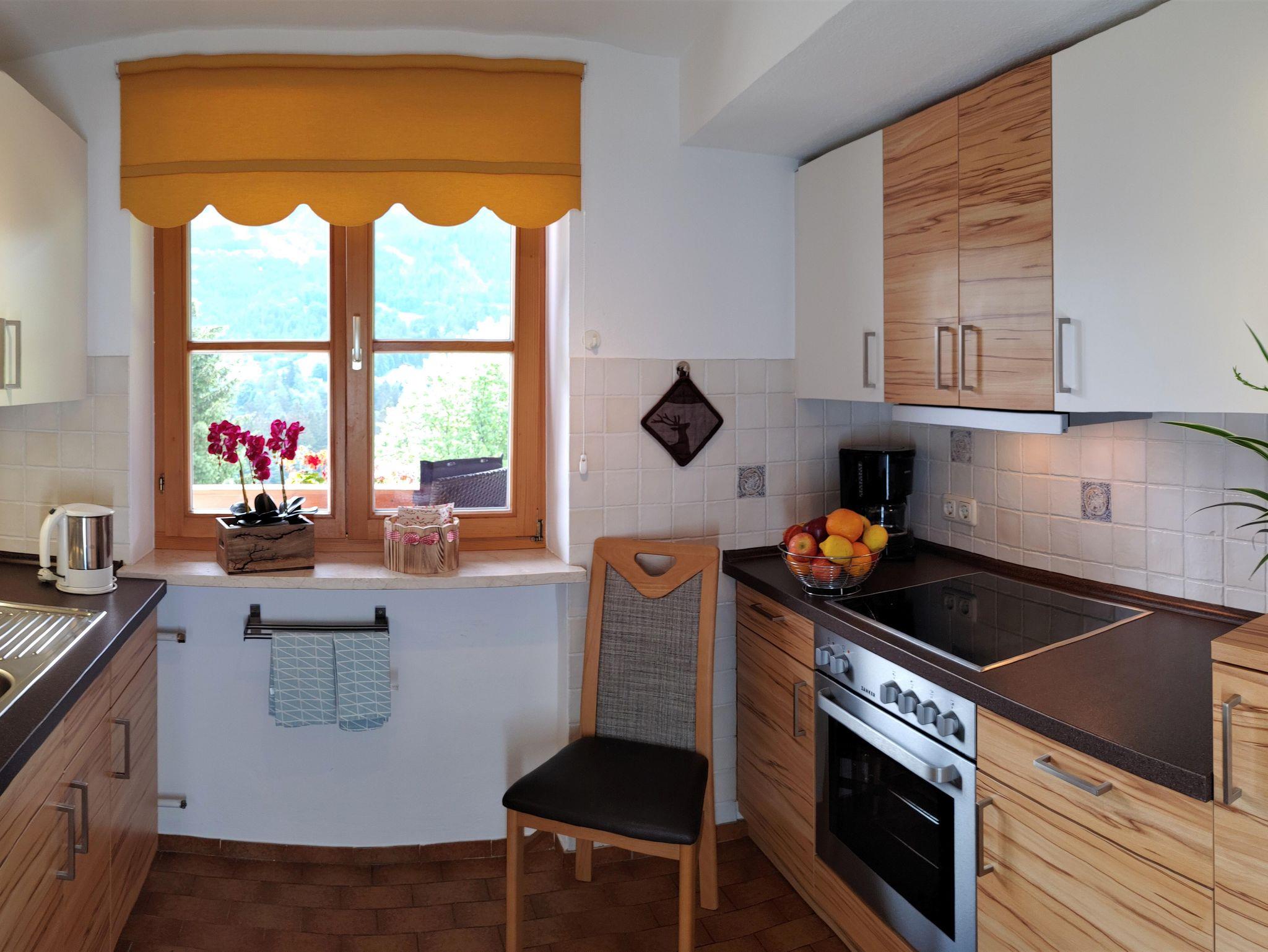 Modern im Landhausstil eingerichtet, bietet diese Ferienwohnung im 2. Stock reichlich Platz für 2-3 Personen auf 60 qm. Der überdachte Balkon bietet Morgensonne zum Frühstück und einen wunderbaren Blick auf das Bergpanorama. Hier lässt es sich in Ruhe Urlauben. Das Schlafzimmer besitzt ein Dachfenster, das zur Lüftung auch bei leichtem Regen geöffnet werden kann.