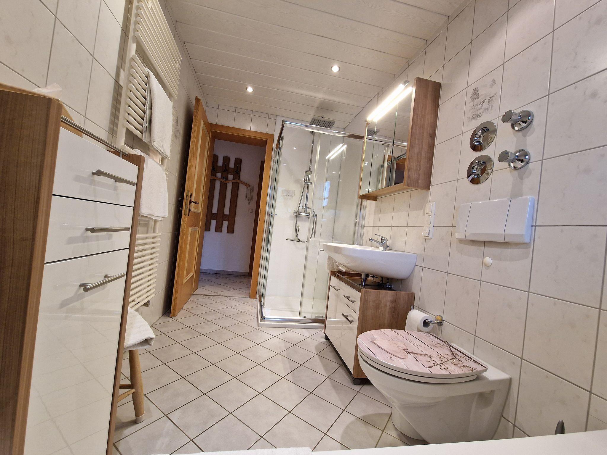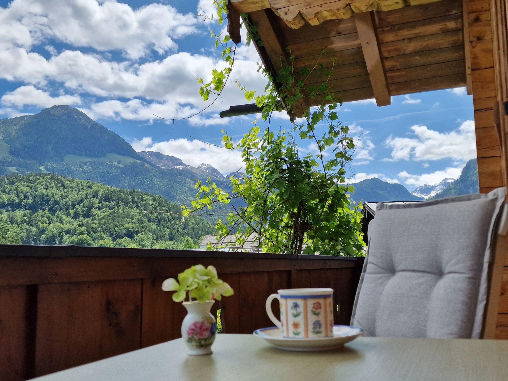 Komfortable und helle Ferienwohnung im Landhausstil (Nichtraucher) mit Fliesen-/Holzböden und Fußbodenheizung, großem Balkon (Ost-Süd-West) und herrlichem Bergblick. Der großzügige Wohnraum mit Essecke und L-förmiger Ausziehcouch (SAT-TV) lädt zum Verweilen ein. Die moderne Küche ist mit Frühstückstisch und Spülmaschine ausgestattet. Im Schlafzimmer findet Ihre Kleidung Platz im großen Schrank und Kommode und das neue Bad verfügt über Dusche und Badewanne. Waschmaschine, Wäschetrockner und Bügeleisen zur Mitbenutzung möglich.