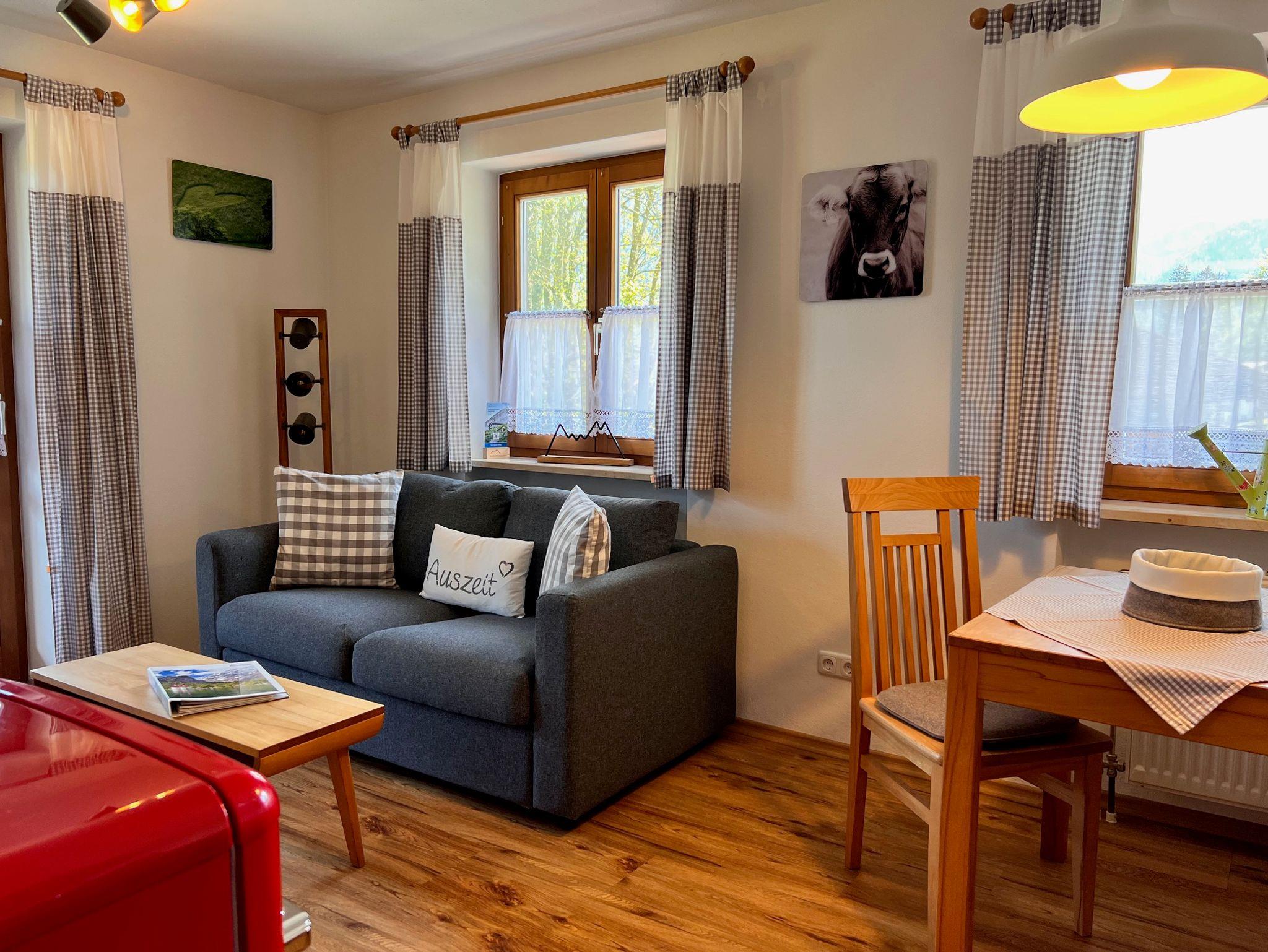 Willkommen in der Ferienwohnung Sonnenglück, Ihrem persönlichen Wohlfühlort für jede Jahreszeit! Diese charmante Wohnung bietet auf 38 m² alles, was Sie für einen erholsamen Aufenthalt im Berchtesgadener Land benötigen.