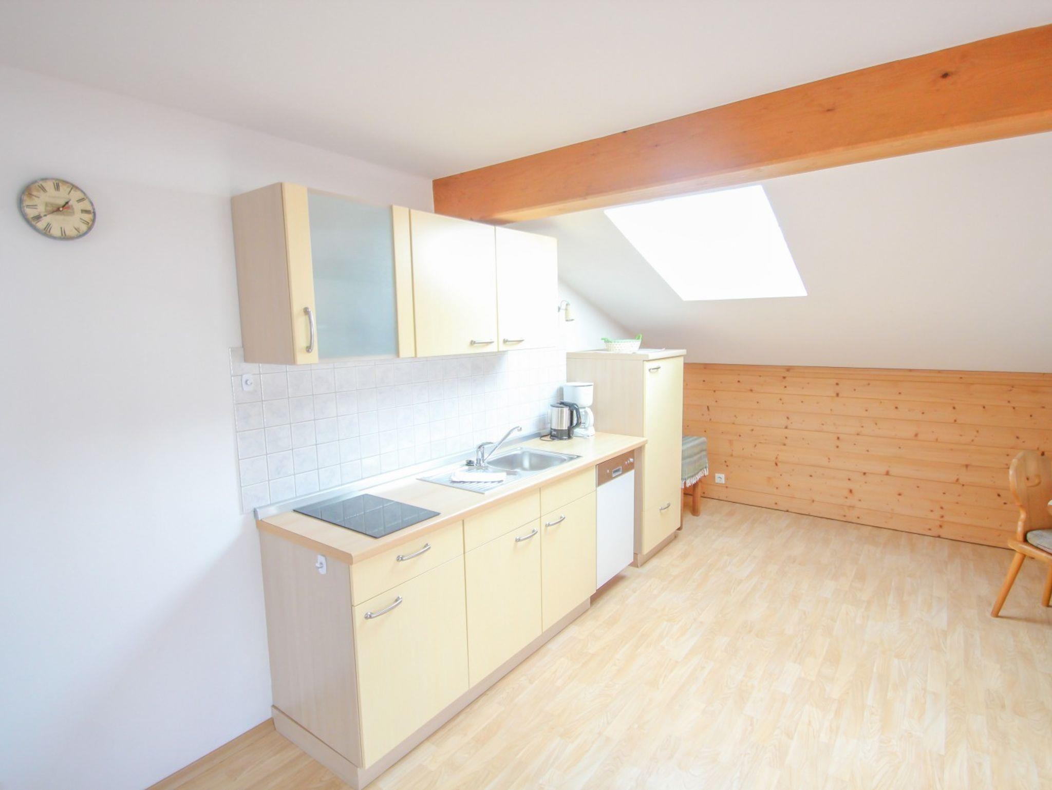 Die Nichtraucher-Ferienwohnung liegt im Dachgeschoß und bietet Platz auf 56 qm. Sie ist ausgestattet mit einem separaten Schlafzimmer mit Doppelbett, einem gemütlichen Wohnzimmer mit Sitzgruppe, TV, Essecke und Kochnische (Kühlschrank, Geschirrspüler, Mikrowelle) sowie einem Bad mit Dusche/WC mit Fön und Handtüchern. Auf dem möbelierten Balkon genießen Sie den Aussicht.