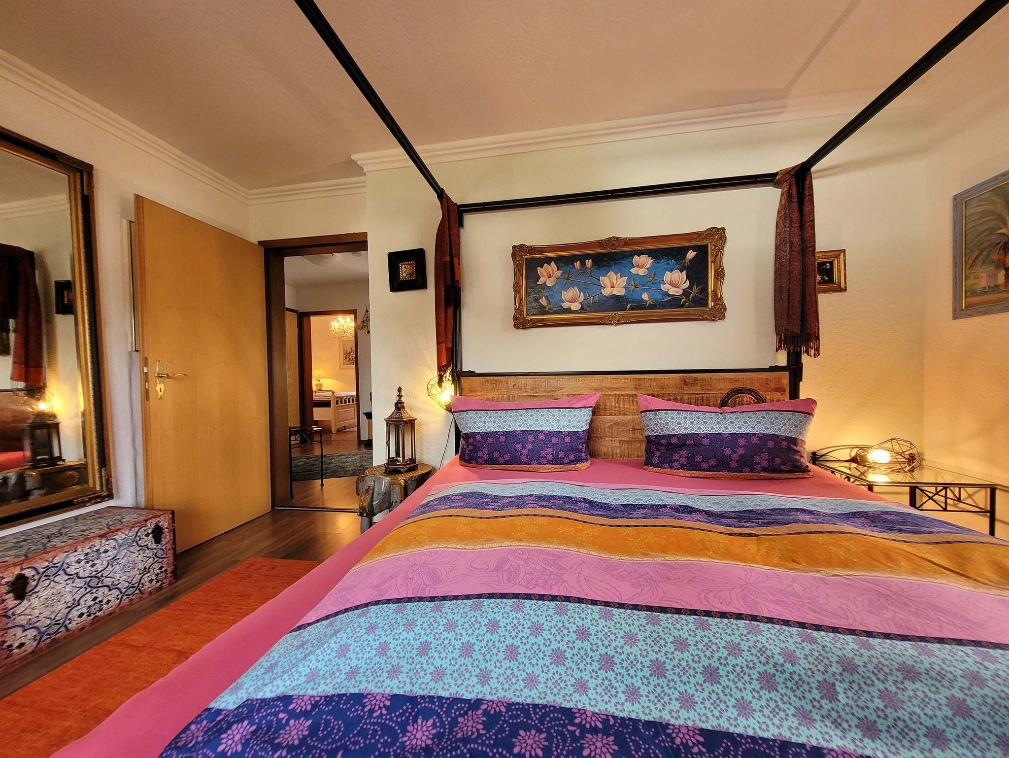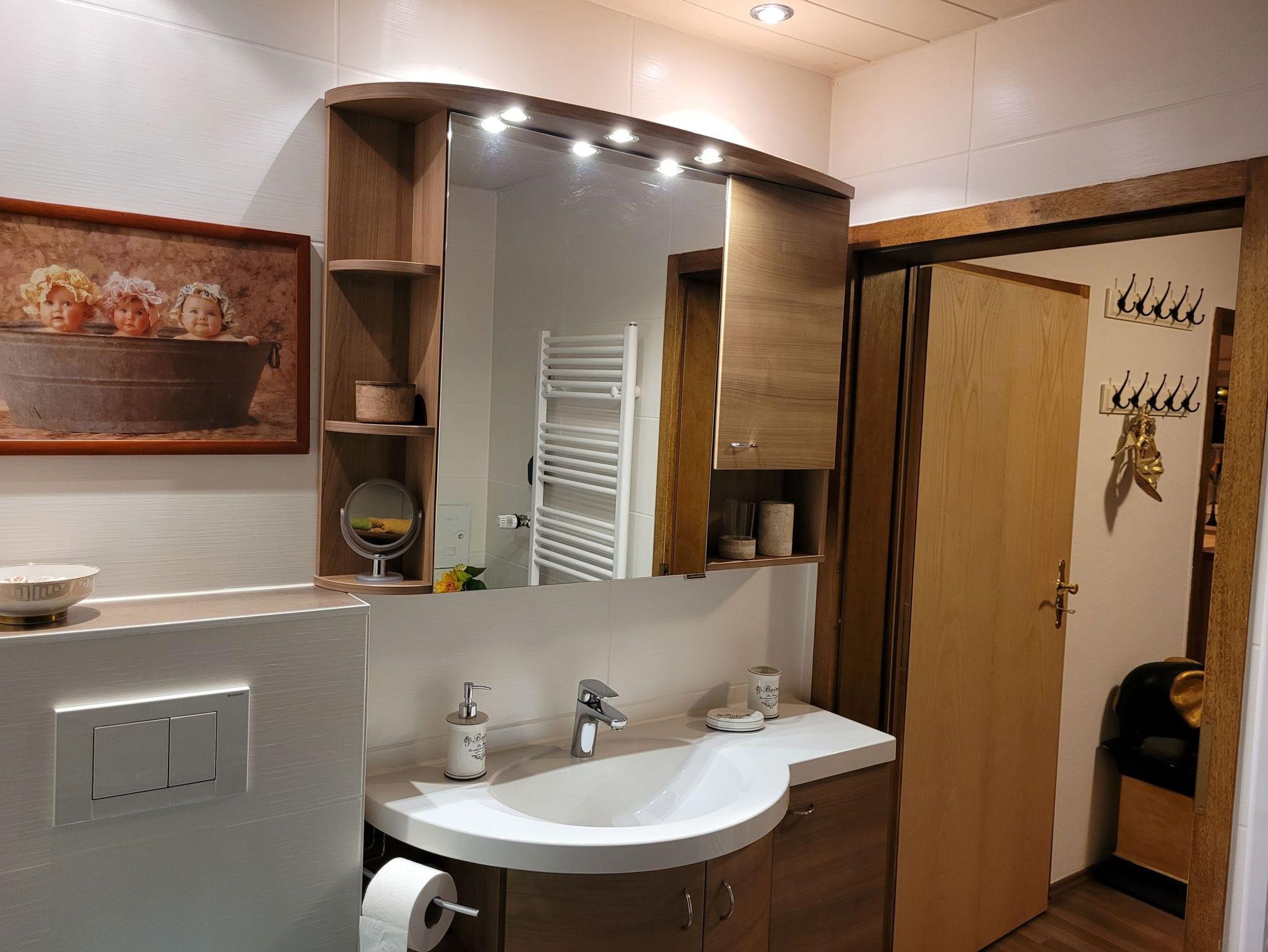 Die moderne, liebevoll eingerichtete Ferienwohnung mit 114 qm Wohnfläche im Erdgeschoss bietet 3 separate Schlafzimmer, eine geräumige Wohnküche mit 4-Platten-Ceranfeld, Backofen, Mikrowelle, Kühlschrank, separates Eis-/Kühlfach, Geschirrspülmaschine, Kaffeemaschine, Wasserkocher, Toaster, genügend hochwertiges Geschirr, Besteck und Gläser. Eine Grundausstattung an verschiedenen Gewürzen, sowie Salz + Pfeffer sind vorhanden. Das Bad ist ausgestattet mit Badewanne inklusive Dusche, WC, Waschbecken, Föhn, Kosmetikspiegel, Toiletten-Papier, Bade- und Handtüchern.