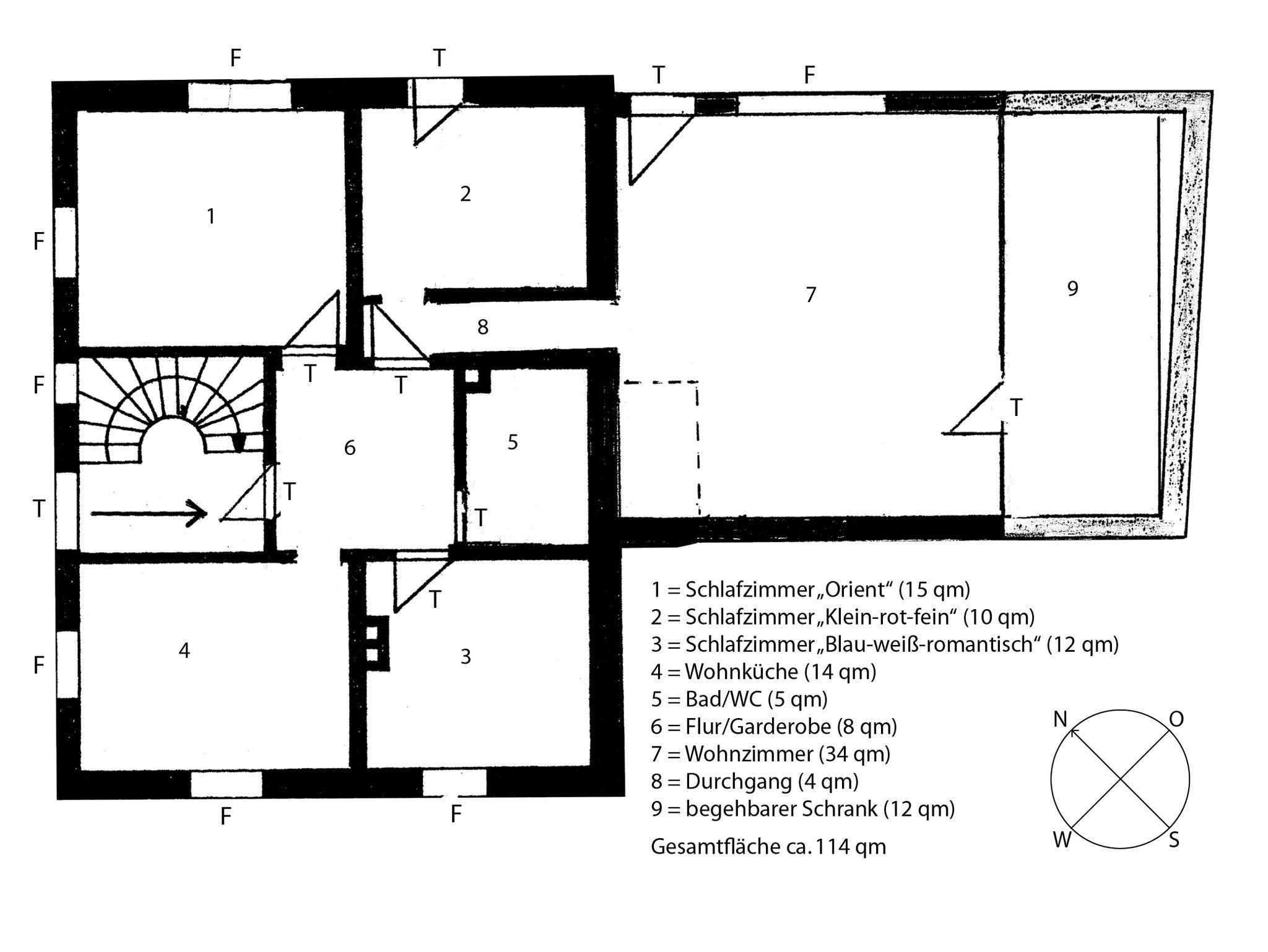 Fewo Georg Klausner, Ferienwohnung für 2 - 6 Personen, 114 m², 3 sep. Schlafzimmer und Terrasse