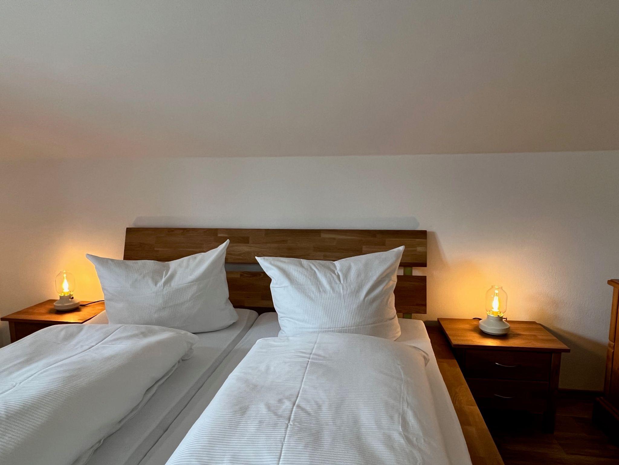 Die Nichtraucher-Ferienwohnung liegt im 2. Obergeschoß und bietet Platz auf 85 qm. Sie ist ausgestattet mit 3 separaten Schlafzimmern (2x mit Doppelbett und 1x mit zwei Einzelbetten), einem Wohnzimmer mit Sitzgruppe/Sofa, TV, WLAN, einer Essecke, einer separaten Küche, Bad mit Badewanne/WC und einem zusätzlichen Bad mit Dusche/WC, sowie einem Balkon. Auch Ihre Haustiere sind bei uns herzlich willkommen.