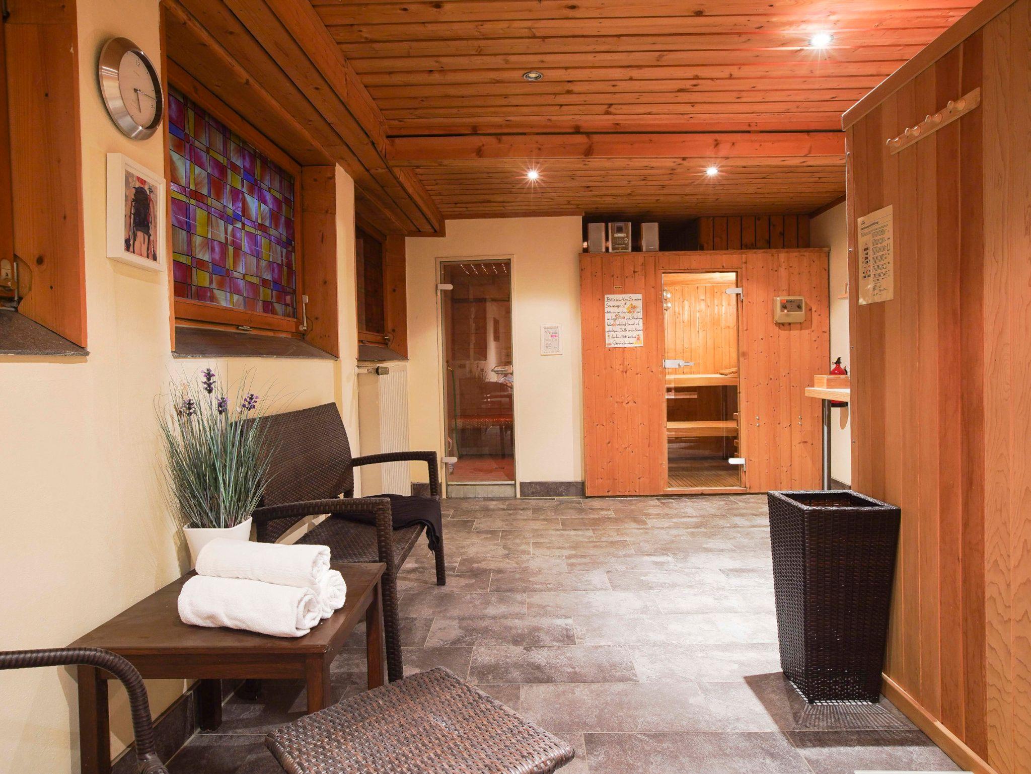 Nutzung Wellnessbereich gegen Gebühr (15 € pro Person und Nutzung). Die genannten Preise sind zzgl. Kurbeitrag in Höhe von 3,10 Euro für Erwachsene, 1,55 Euro für Kinder/Jugendliche vom 7. bis zum vollendeten 16. Lebensjahr und 0,00 Euro für Kinder von 0 - 6 Jahren pro Person und Aufenthaltstag.(änderungen vorbehalten)