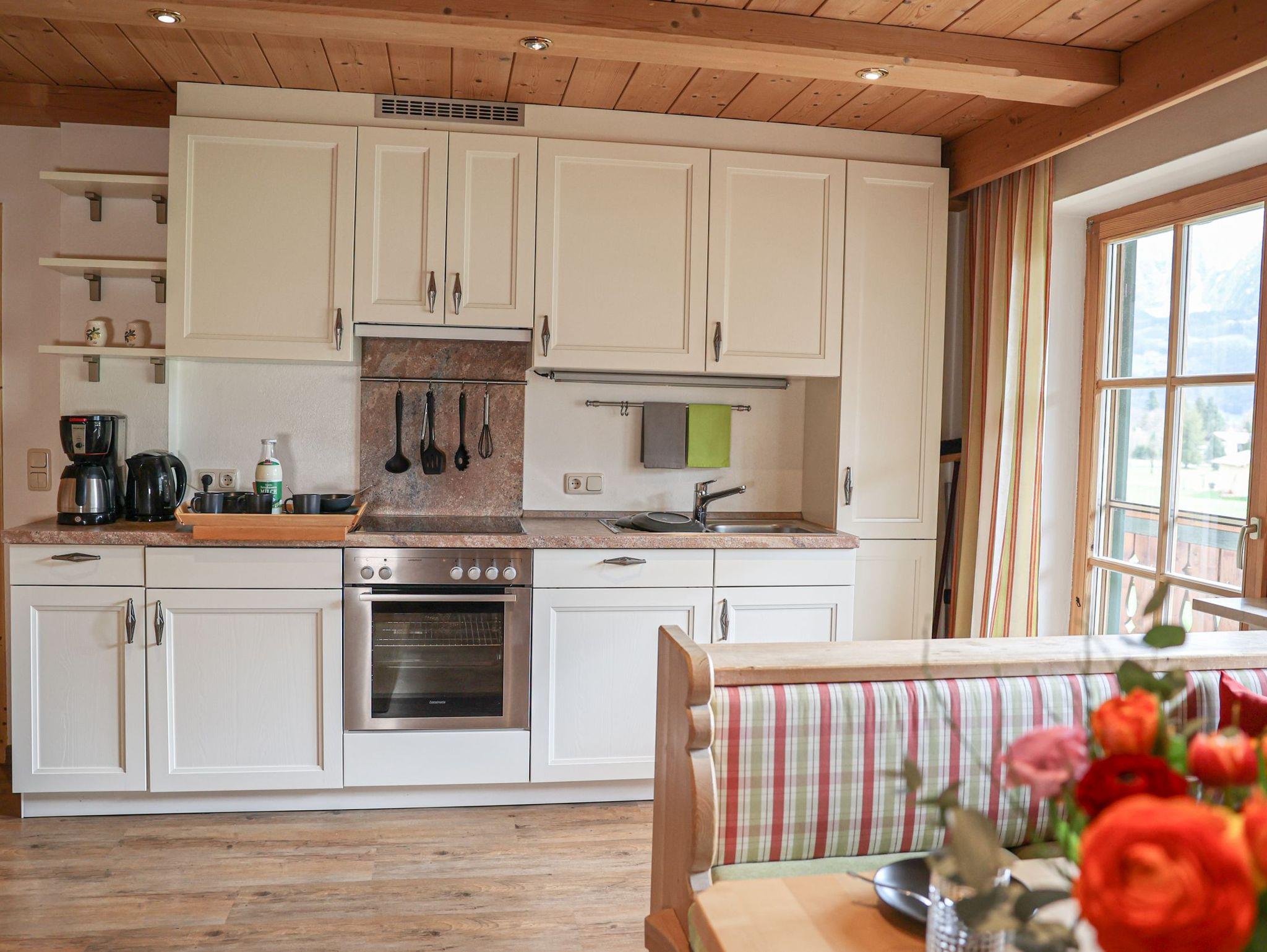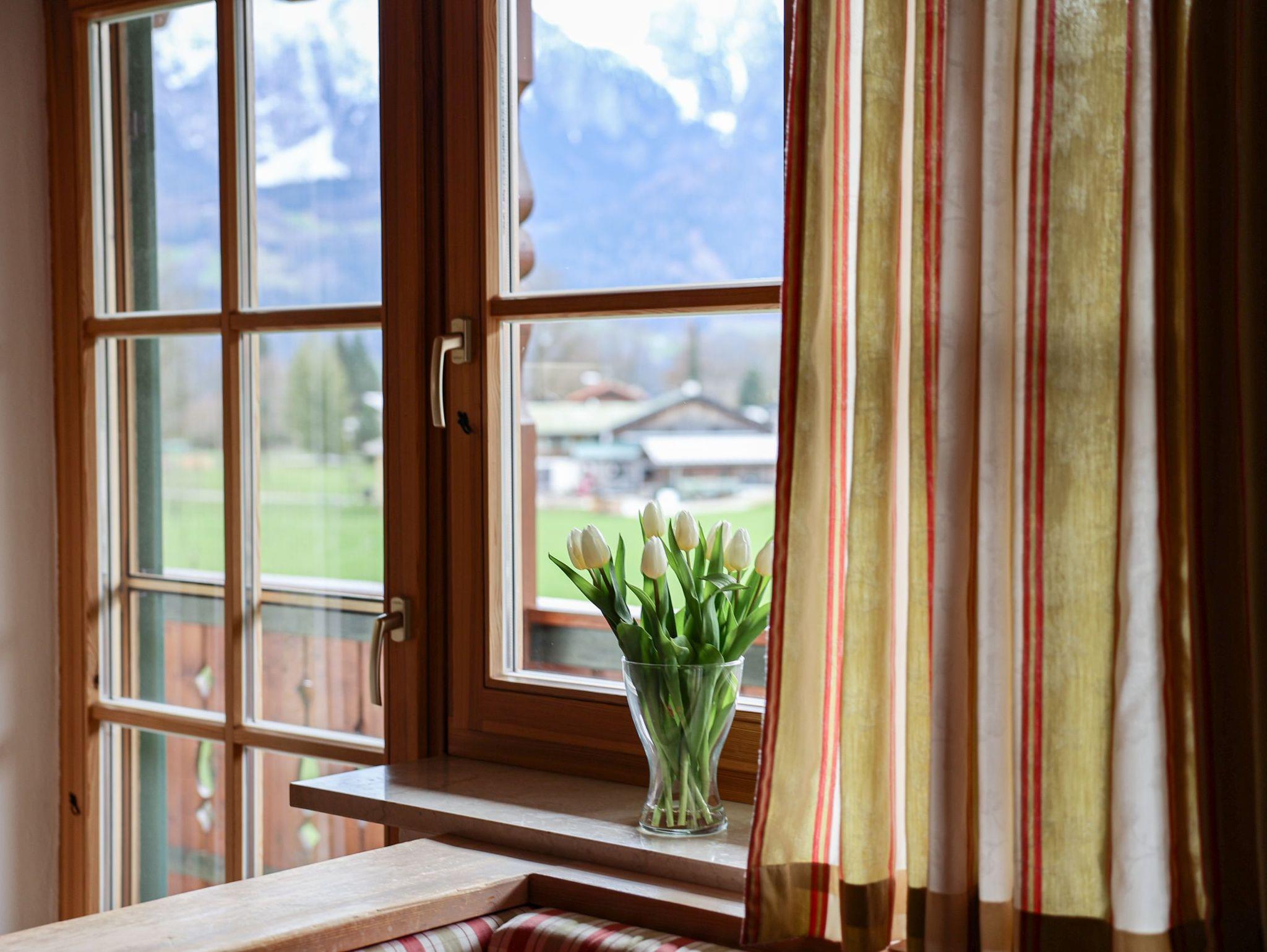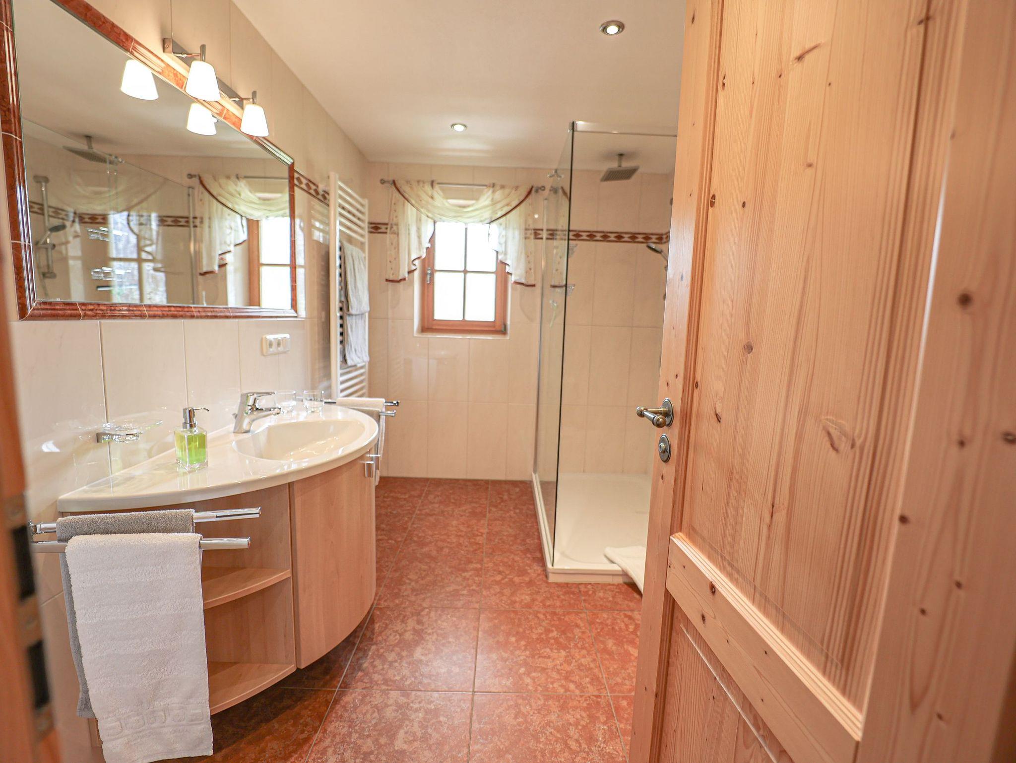Die Wohnung ist vom Deutschen Tourismusverband (DTV) mit F**** ausgezeichnet!Die mit viel naturbelassenem Holz eingerichtete Wohnung teilt sich auf in einen Eingangsraum; ein separates Schlafzimmer; ein Bad mit Dusche und WC, Waschtisch; einen geräumigen Wohnraum mit Essecke, einer ausziehbaren Couch mit einem Schlafkomfort wie ein Bett und eine Küchenzeile.Die Ferienwohnung Nr. 1 befindet sich im 1. Stock und besitzt einen Süd- und Ost-Balkon mit zauberhaften Blick auf die Berchtesgadener Alpen.