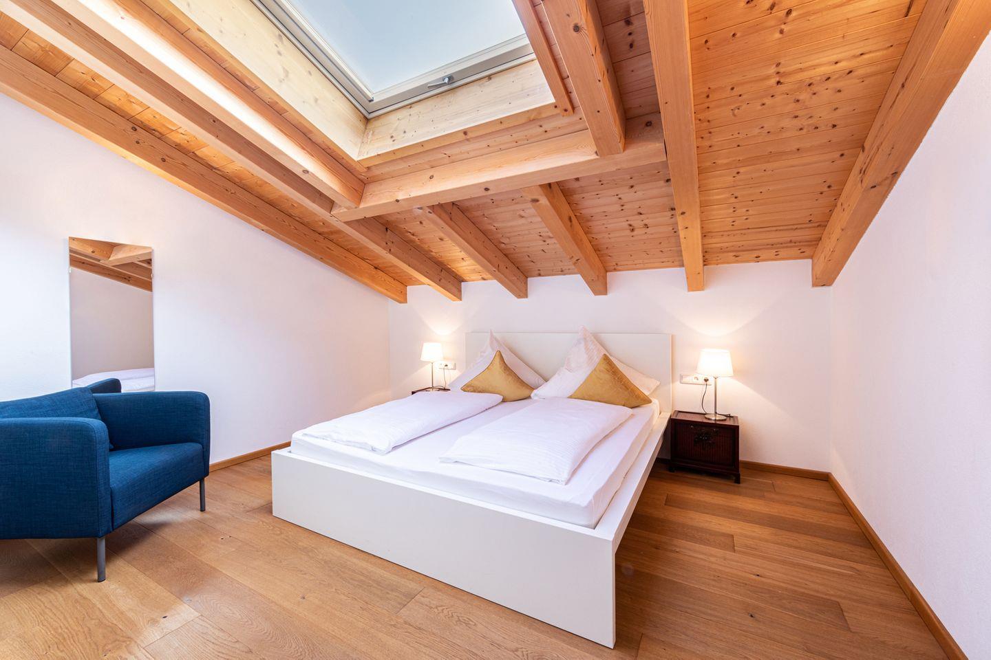 Die Fewo mit Panoramafenster zum Öffnen bietet einen herrlichen Bergblick (Südseite). Es gibt zwei getrennte Schlafzimmer mit jeweils einem Doppelbett und Kleiderschrank. Der Wohn- und Essbereich mit Küche und gemütlichen Sitzmöglichkeiten mit TV lädt zum Verweilen ein. Bad mit Whirlwanne und Dusche, WC und separates WC mit Waschmaschine. WLAN kostenfrei.