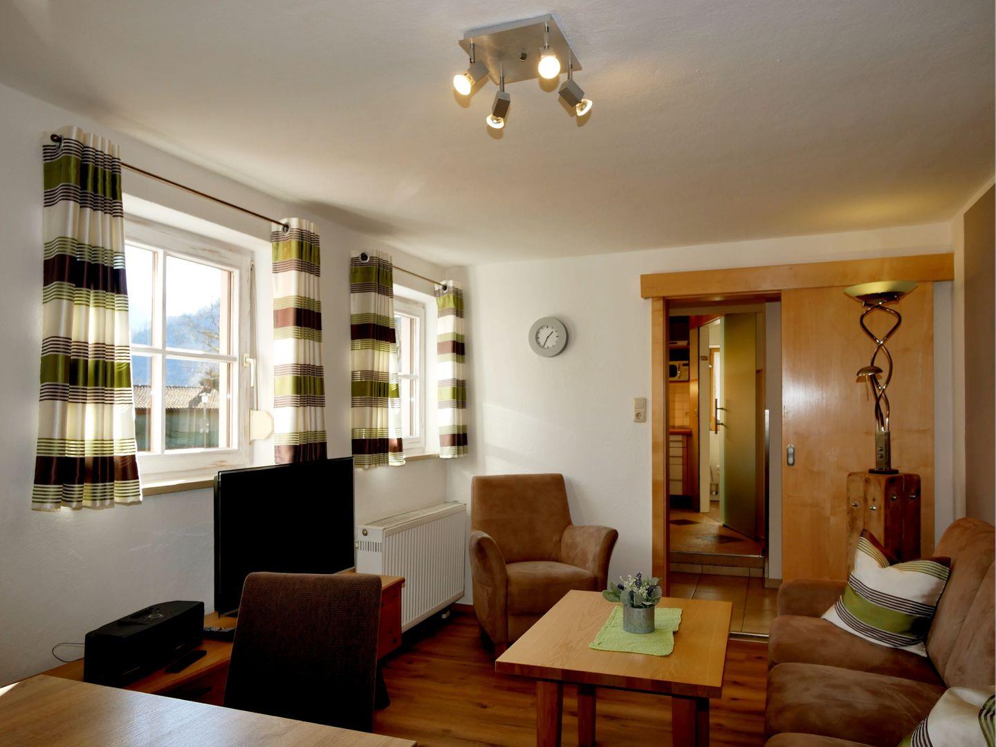 Willkommen im Turmhaus – Ihrem gemütlichen Rückzugsort nahe dem Königssee! Auf 60 qm bietet das charmante Häuschen ein Wohnzimmer mit Sofaecke, Essbereich und voll ausgestatteter Küche sowie ein modernes Bad. Im Obergeschoss befinden sich zwei Schlafzimmer mit Boxspringbetten. Eine möblierte Terrasse mit Blick auf den Hohen Göll und den Jenner lädt zum Entspannen ein. Die Jennerbahn liegt vor der Tür, der Bootsanleger nach St. Bartholomä ist in 12 Minuten zu Fuß erreichbar!