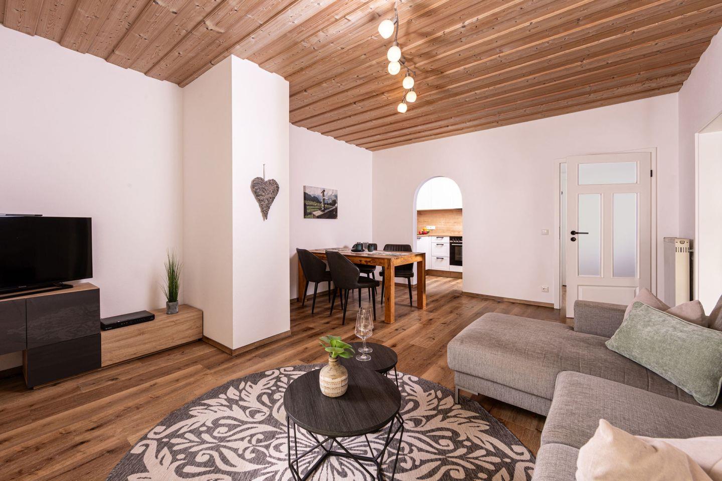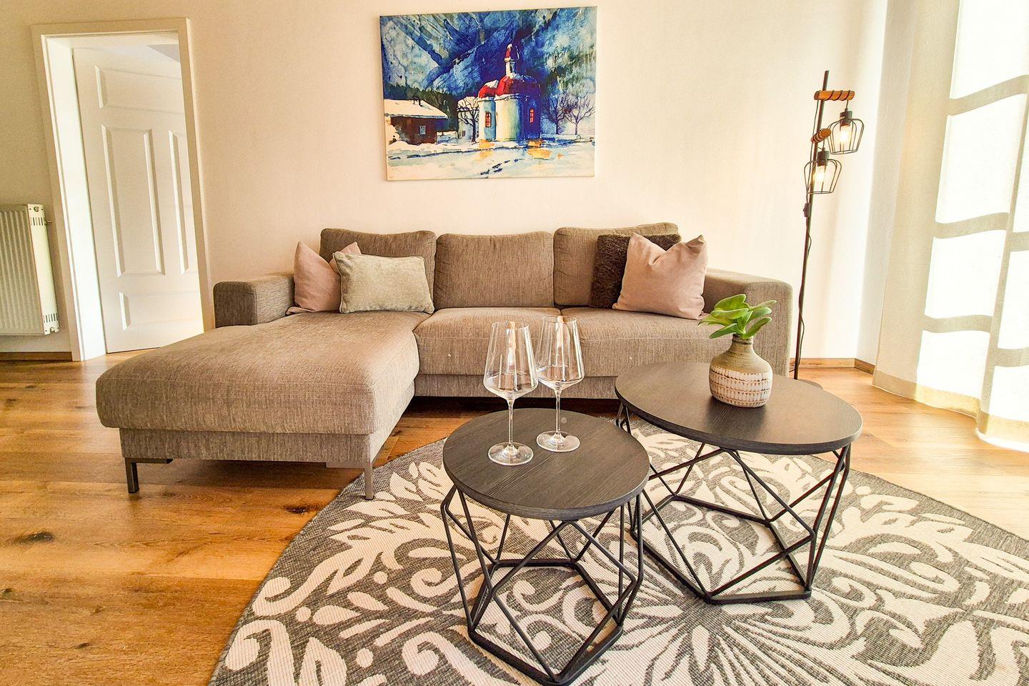 Die sonnige 2-Zimmer- Ferienwohnung wurde im März 2018 renoviert und neu möbliert. Sie bietet auf knapp 60m² großzügig Platz für 2 Personen. Ein weiteres Highlight ist die vom Wohnzimmer aus begehbare Terrasse mit eigenem Gartenanteil, auf der Sie entspannen und das herrliche Bergpanorama in vollen Zügen genießen können.
